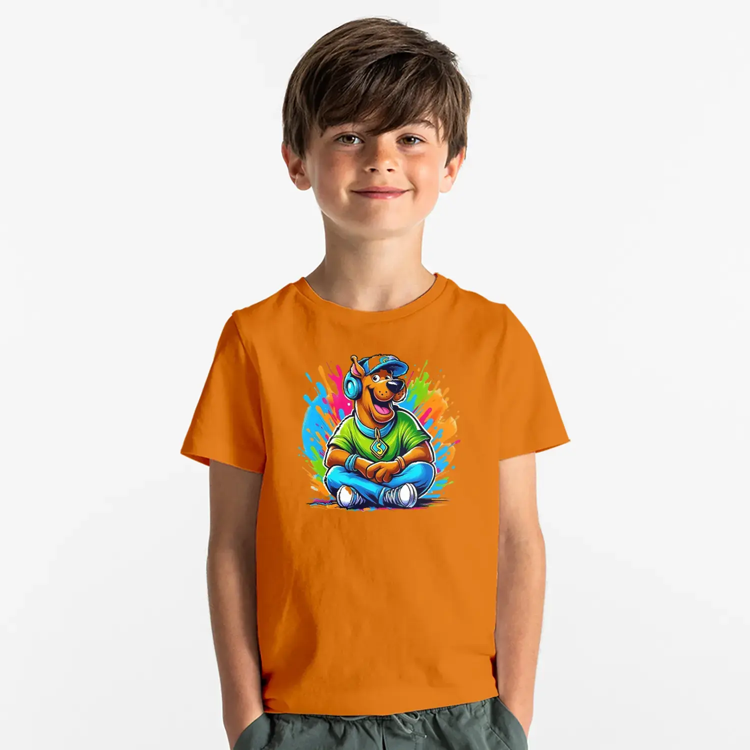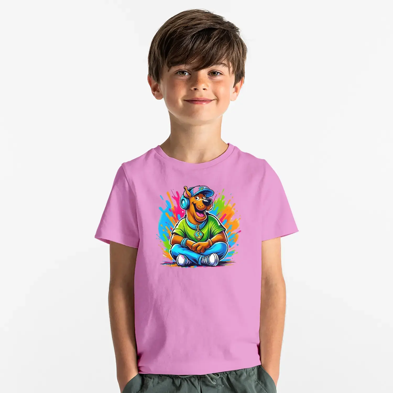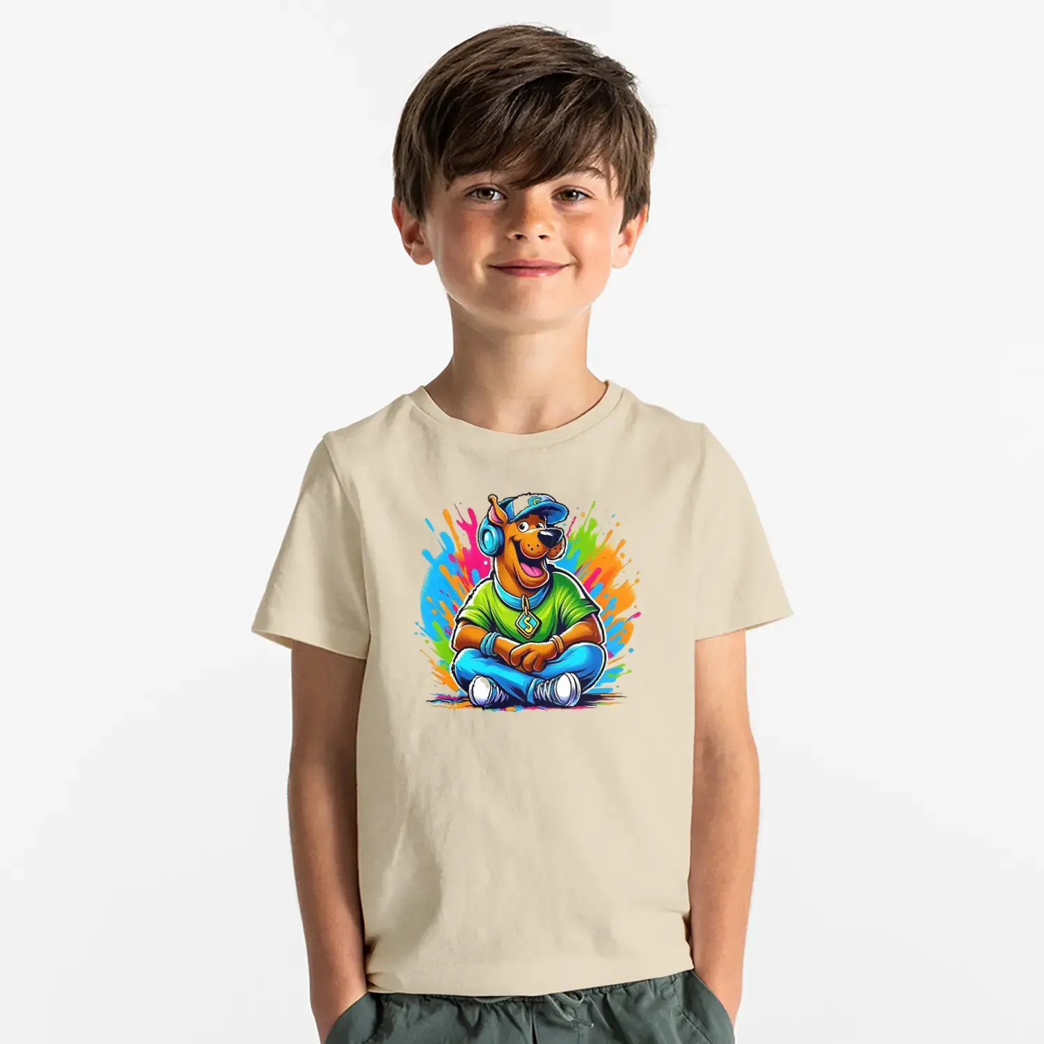 Kulaklıklı Karizmatik Köpek Baskılı Erkek Çocuk Tişört