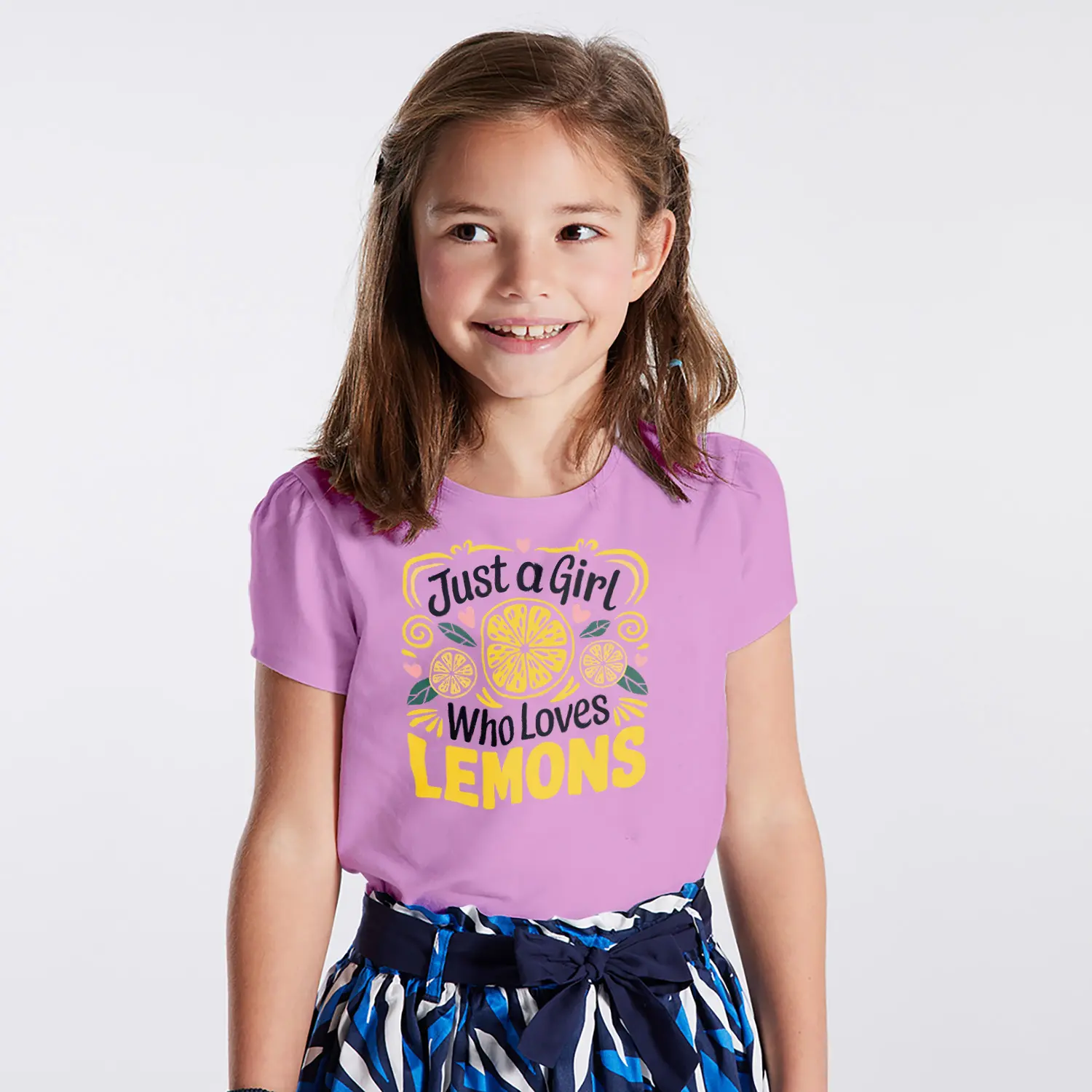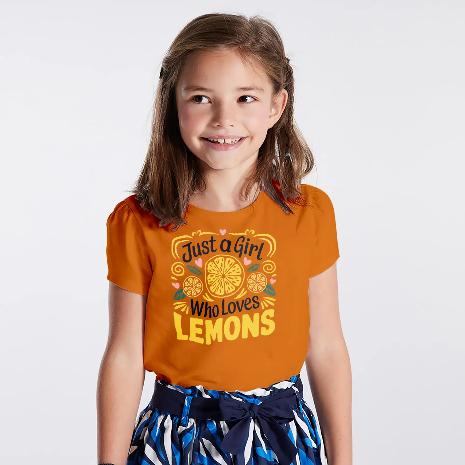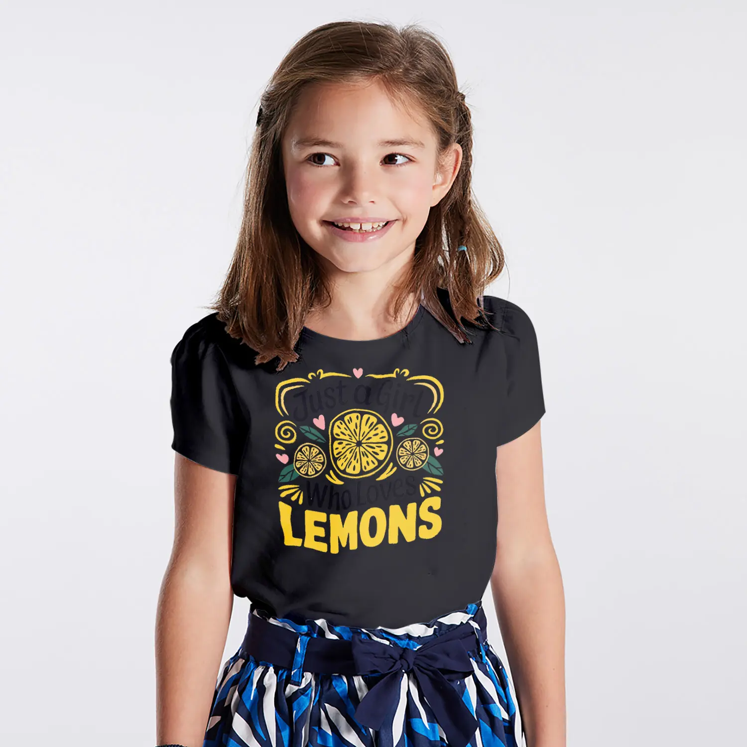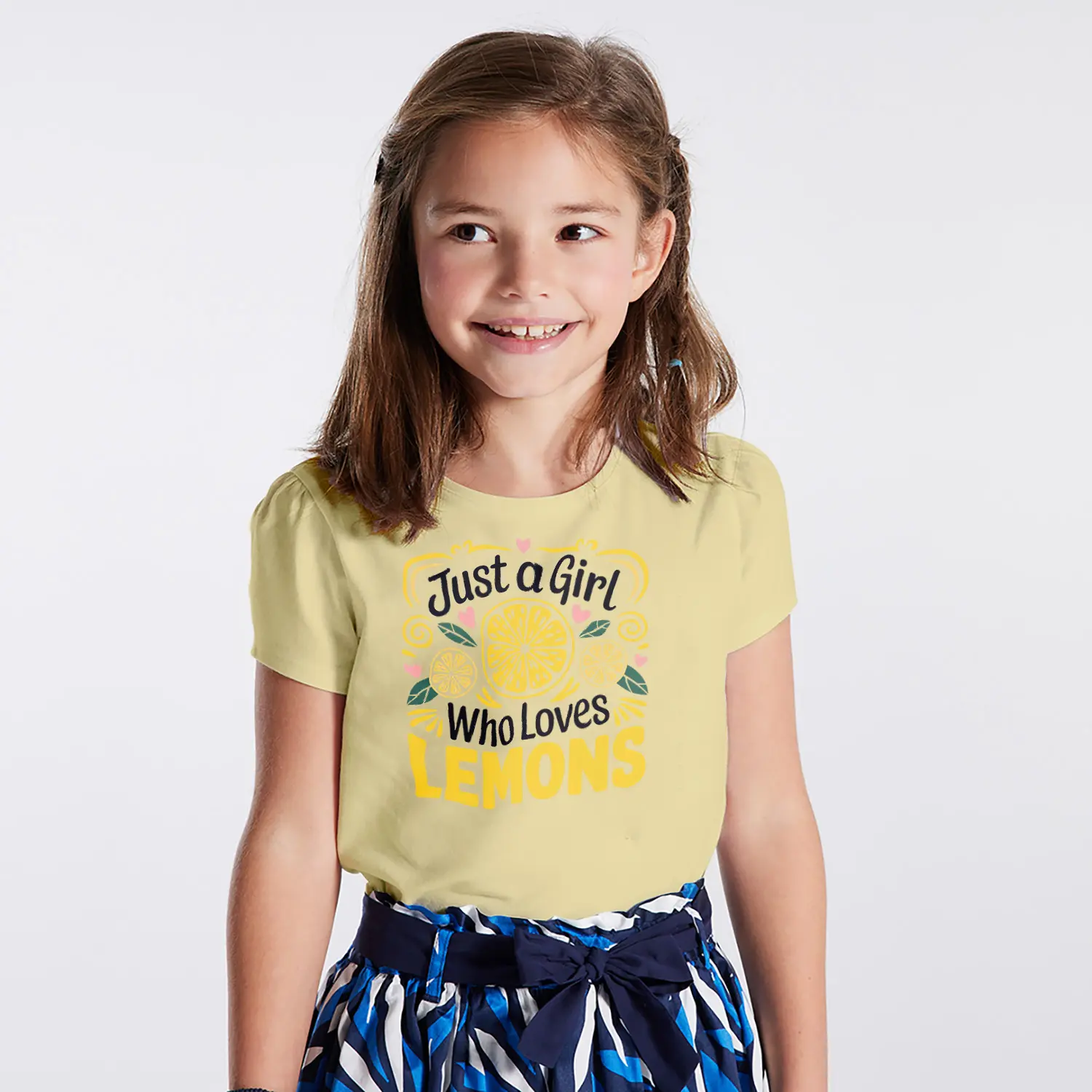 Limon Ve Kalpli Just A Girl Who Loves Lemons Yazılı Baskılı Kiz Çocuk Tisortu Tişörtü