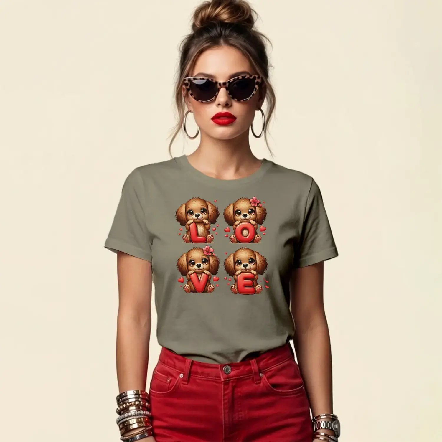 Love Baskılı Köpek Motifli Kadın Tişört için 10 değerlendirme