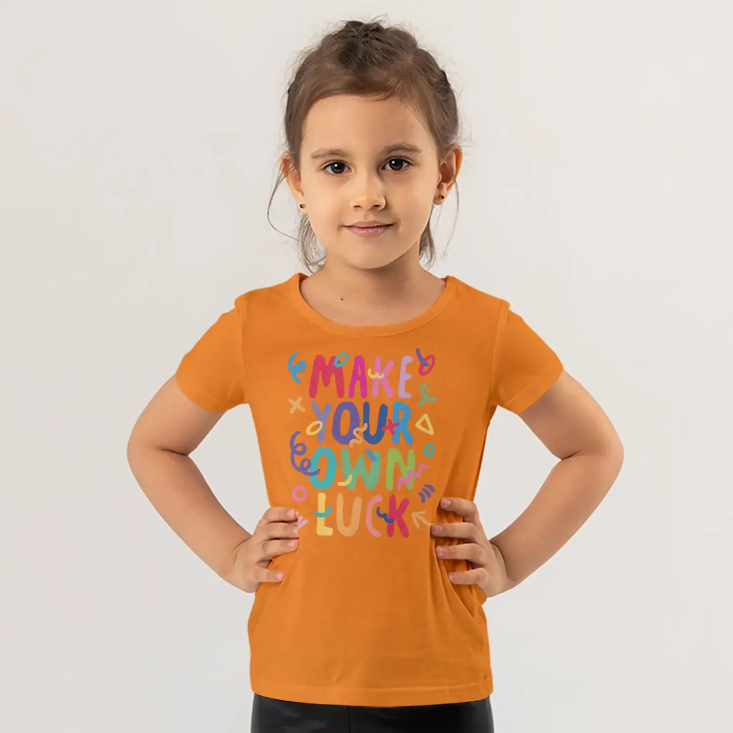 Make Your Own Luck Renkli Motivasyon Yazı Baskılı Kiz Çocuk Tisortu Tişörtü