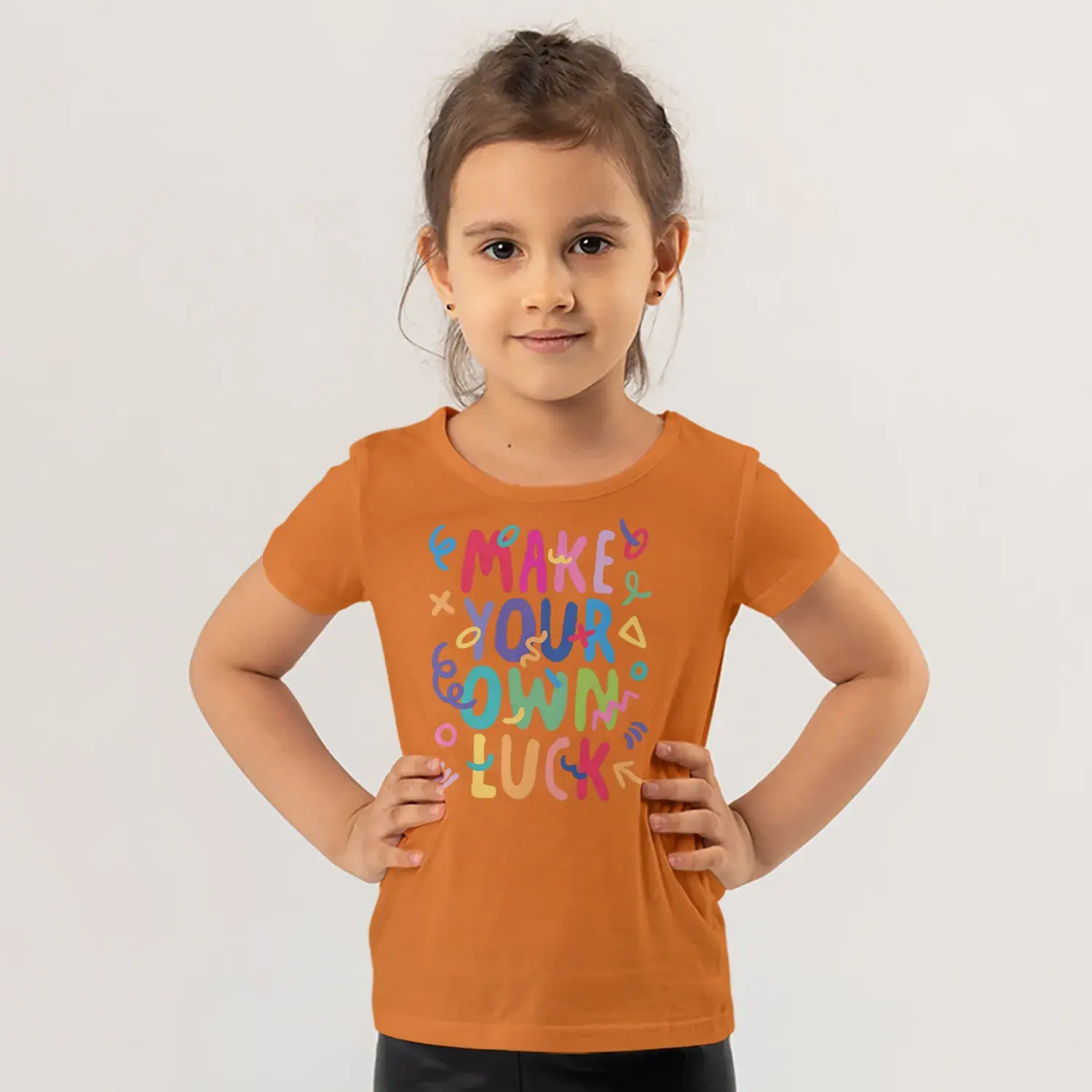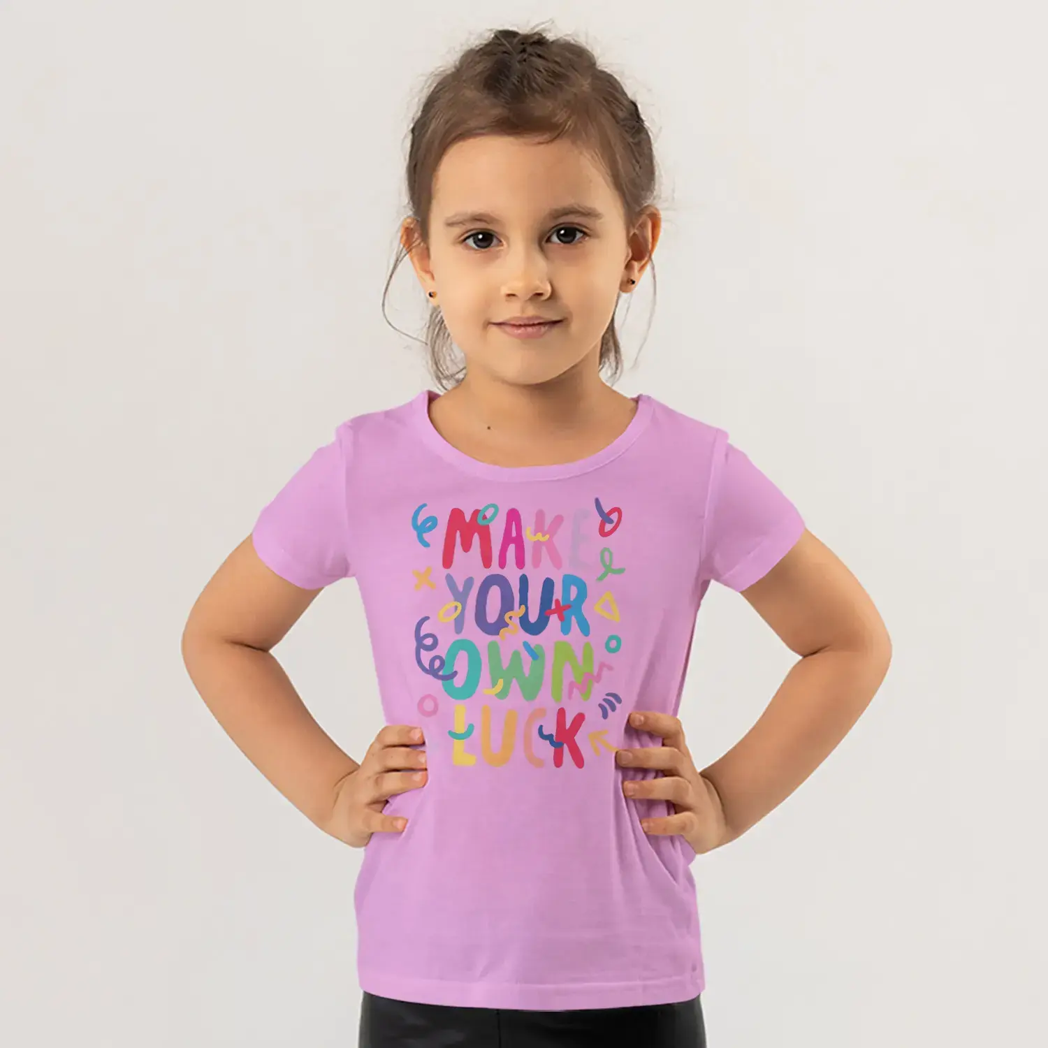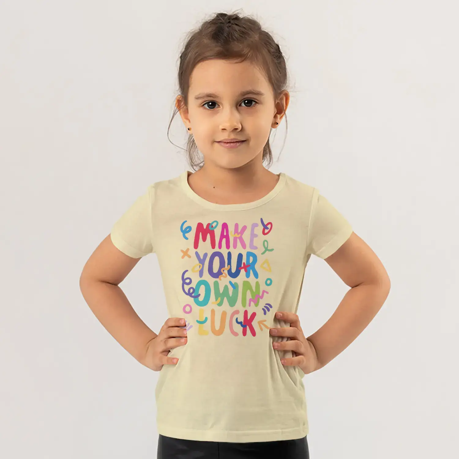 Make Your Own Luck Renkli Motivasyon Yazı Baskılı Kız Çocuk Tişörtü için 9 değerlendirme