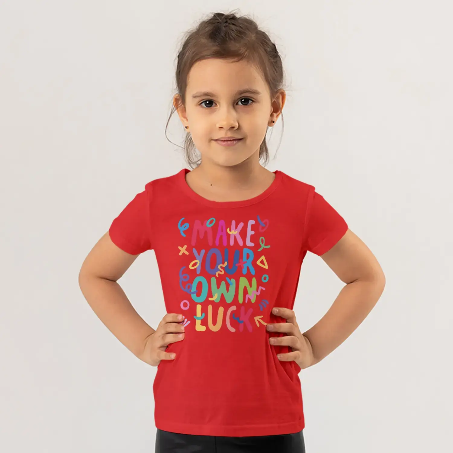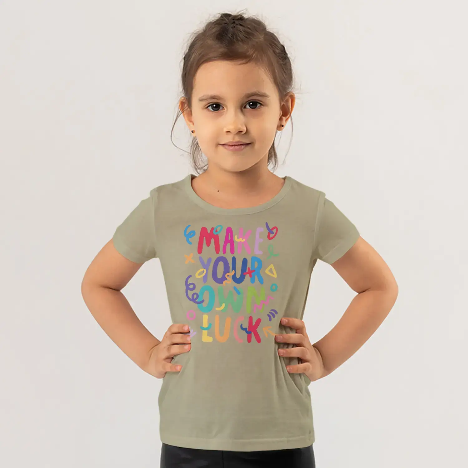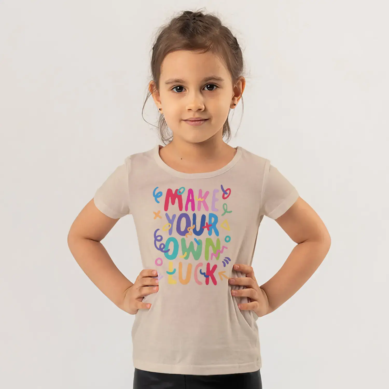 Make Your Own Luck Renkli Motivasyon Yazı Baskılı Kız Çocuk Tişörtü için 9 değerlendirme