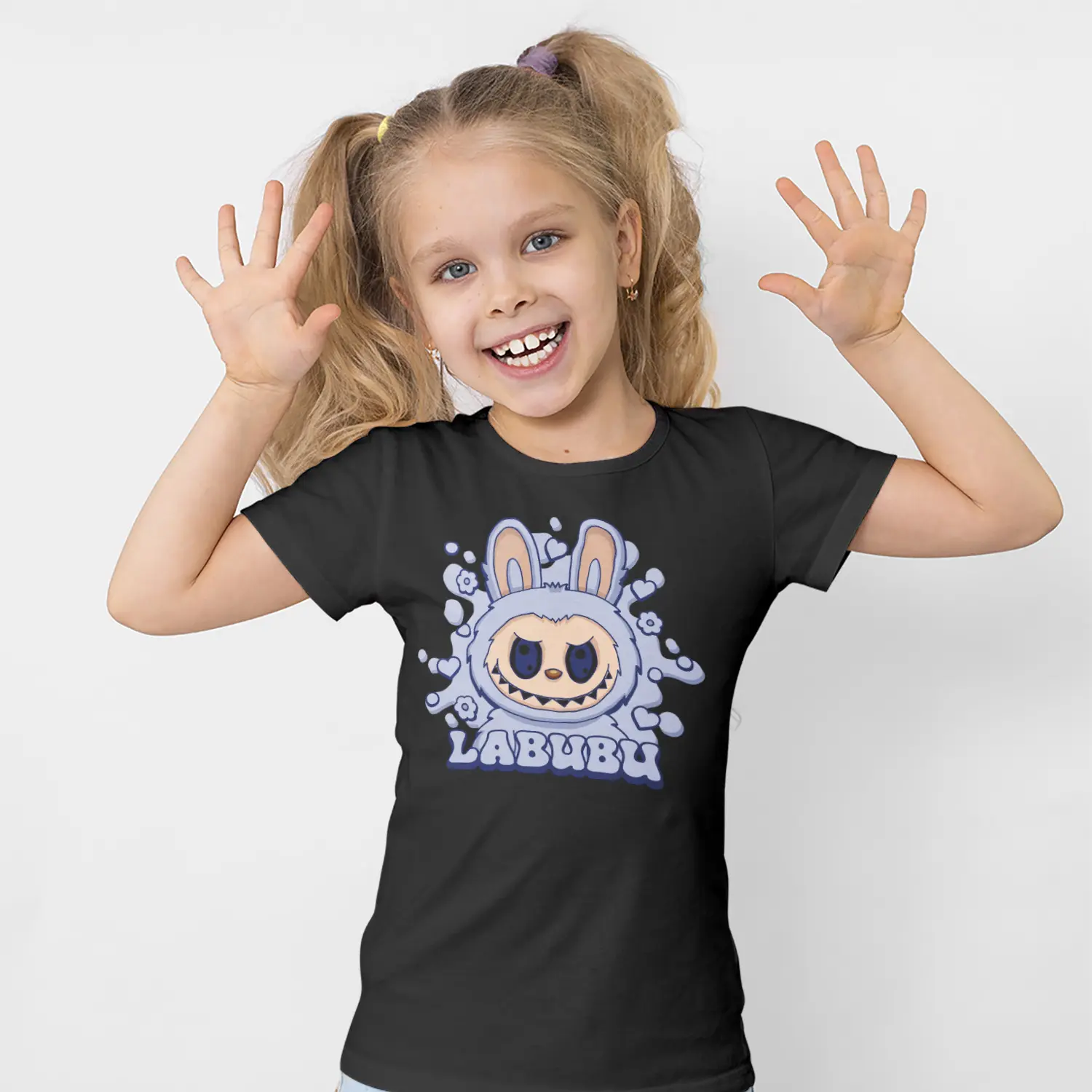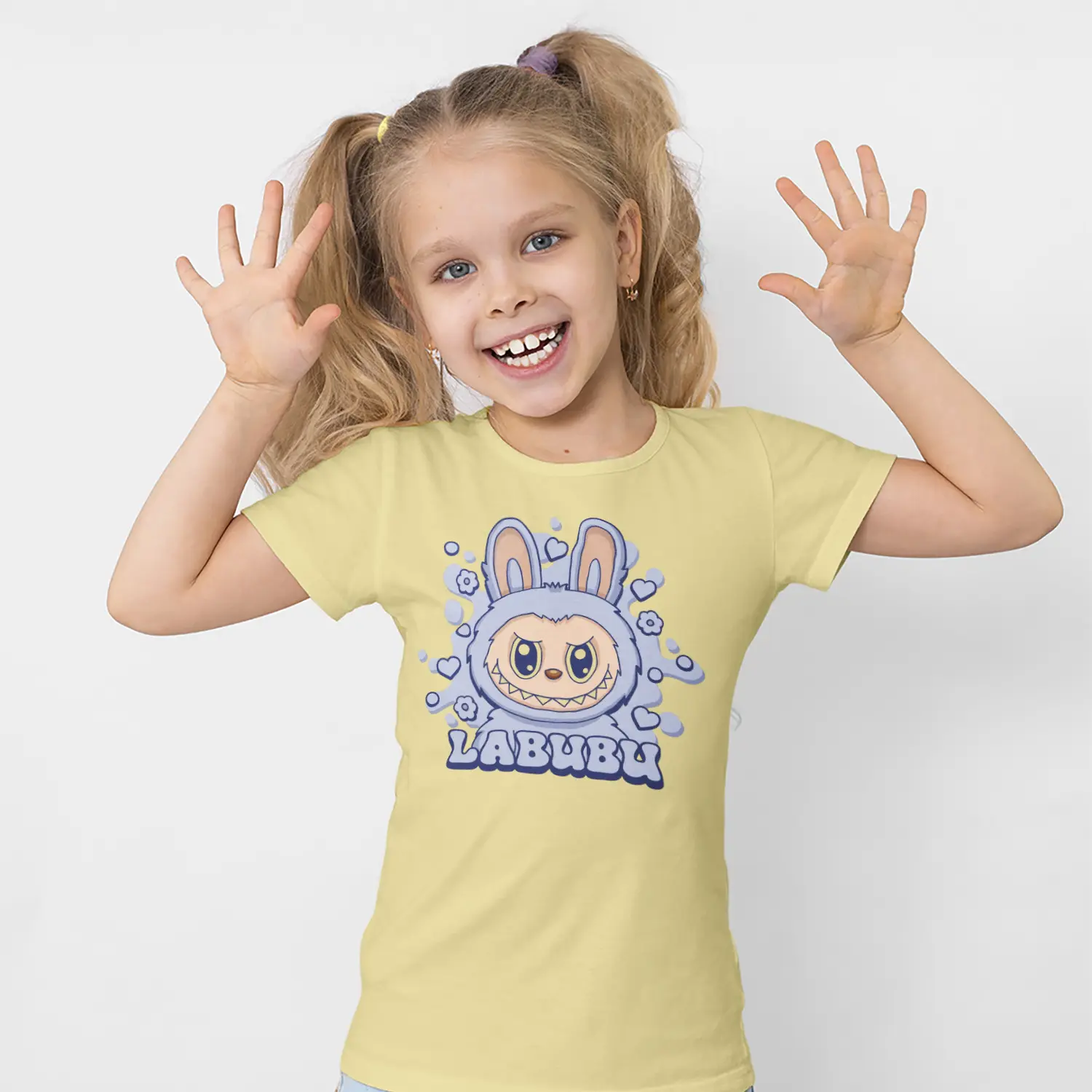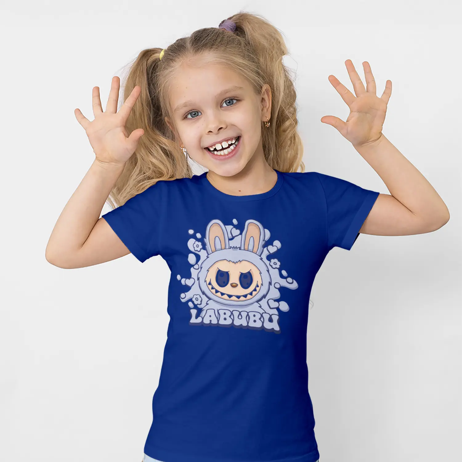 Mavi Tonlu Kızgın Tavşan Karikatür Figürlü Baskılı Kız Çocuk Tişörtü için 10 değerlendirme