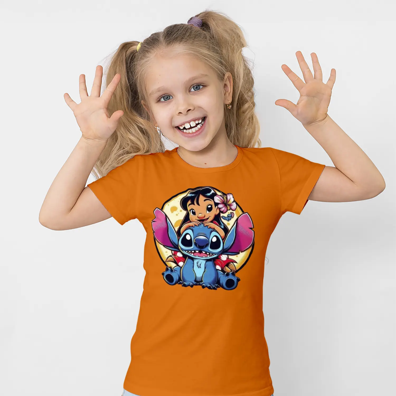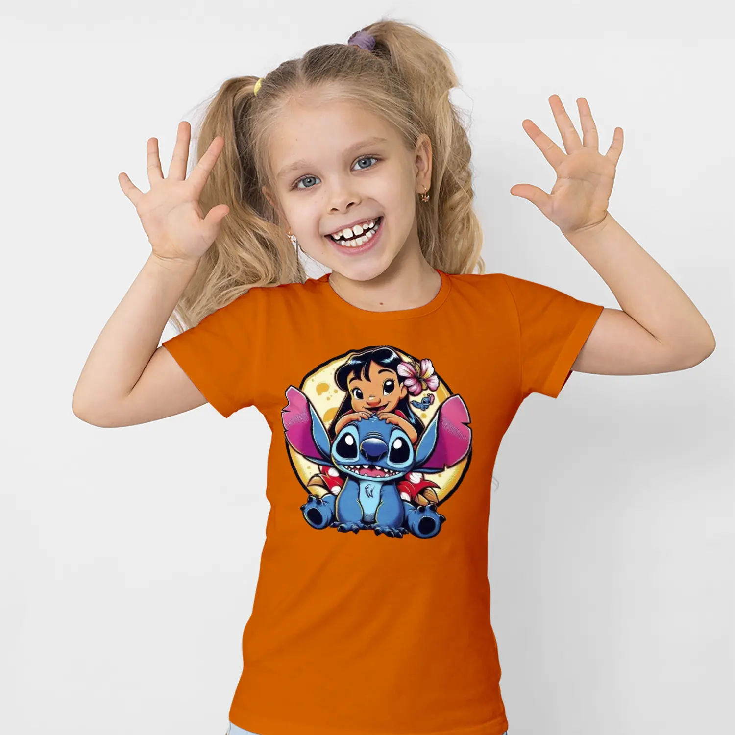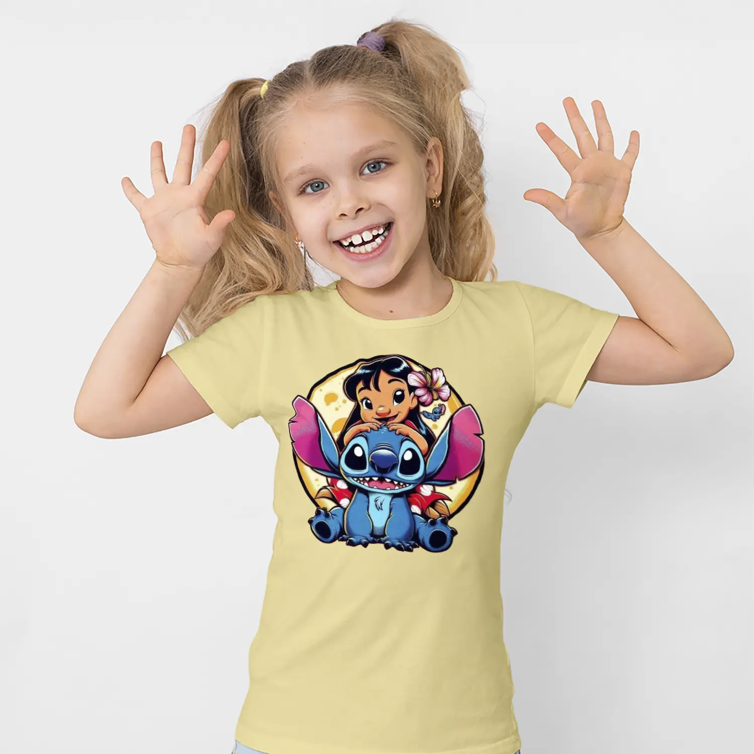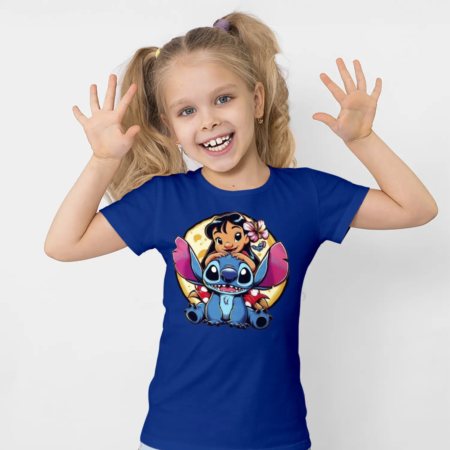 Mavi Uzaylı Yaratık ve Çiçekli Kız Karikatür Figürlü Baskılı Kız Çocuk Tişörtü için 8 değerlendirme
