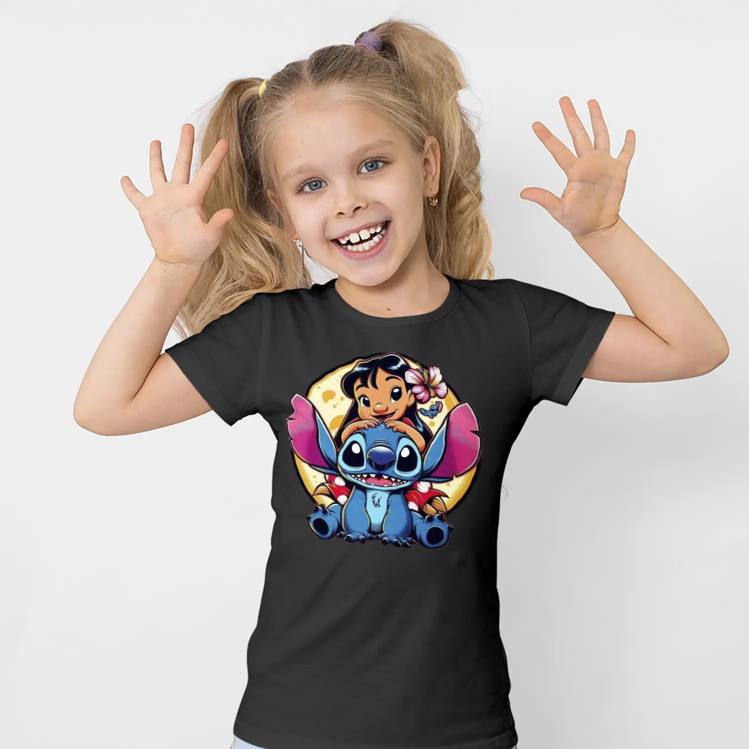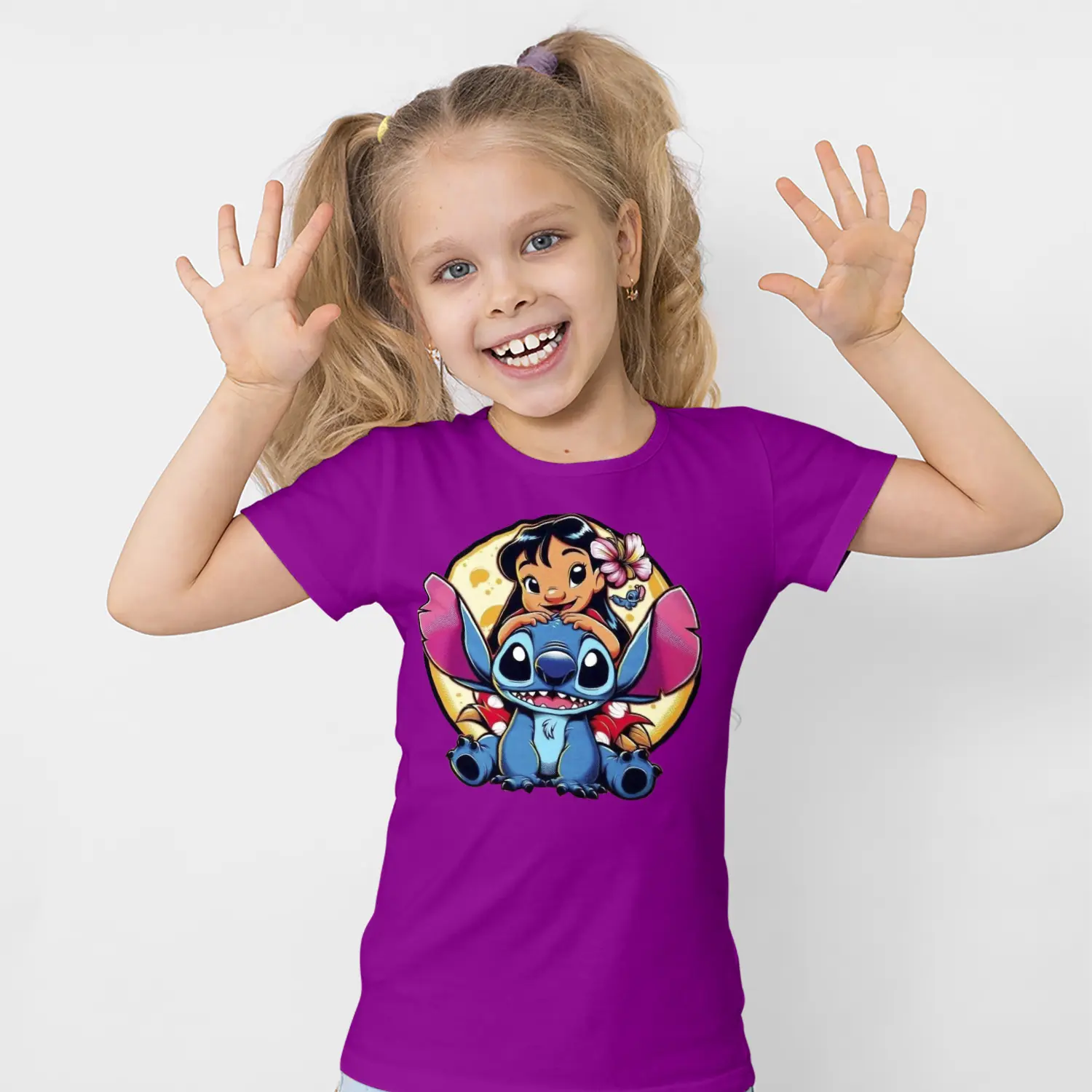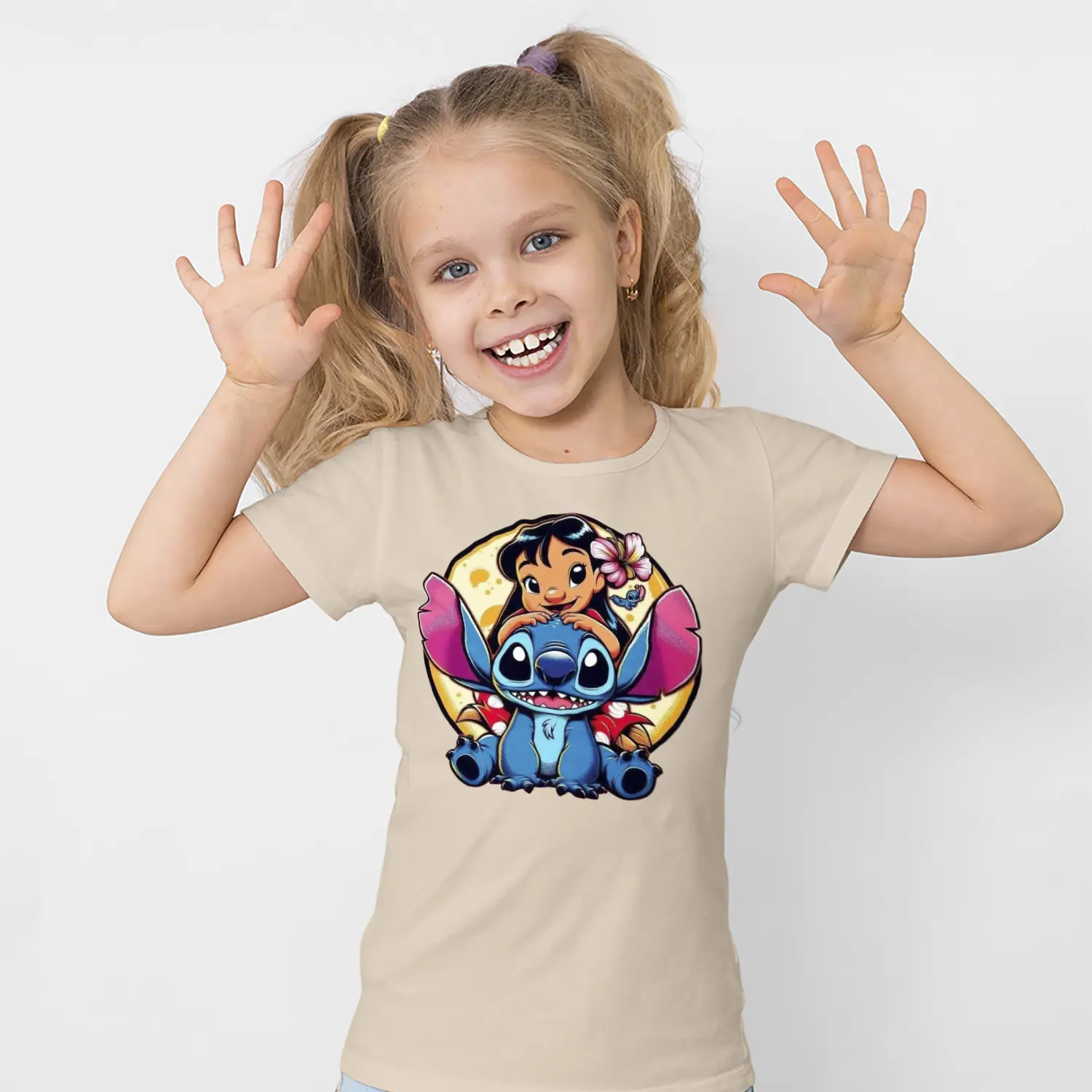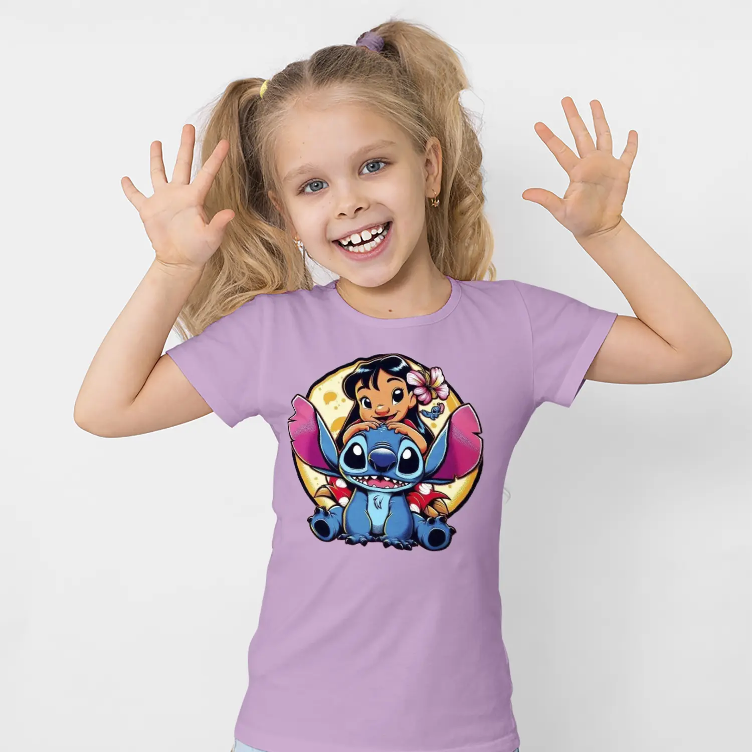 Mavi Uzaylı Yaratık ve Çiçekli Kız Karikatür Figürlü Baskılı Kız Çocuk Tişörtü için 8 değerlendirme
