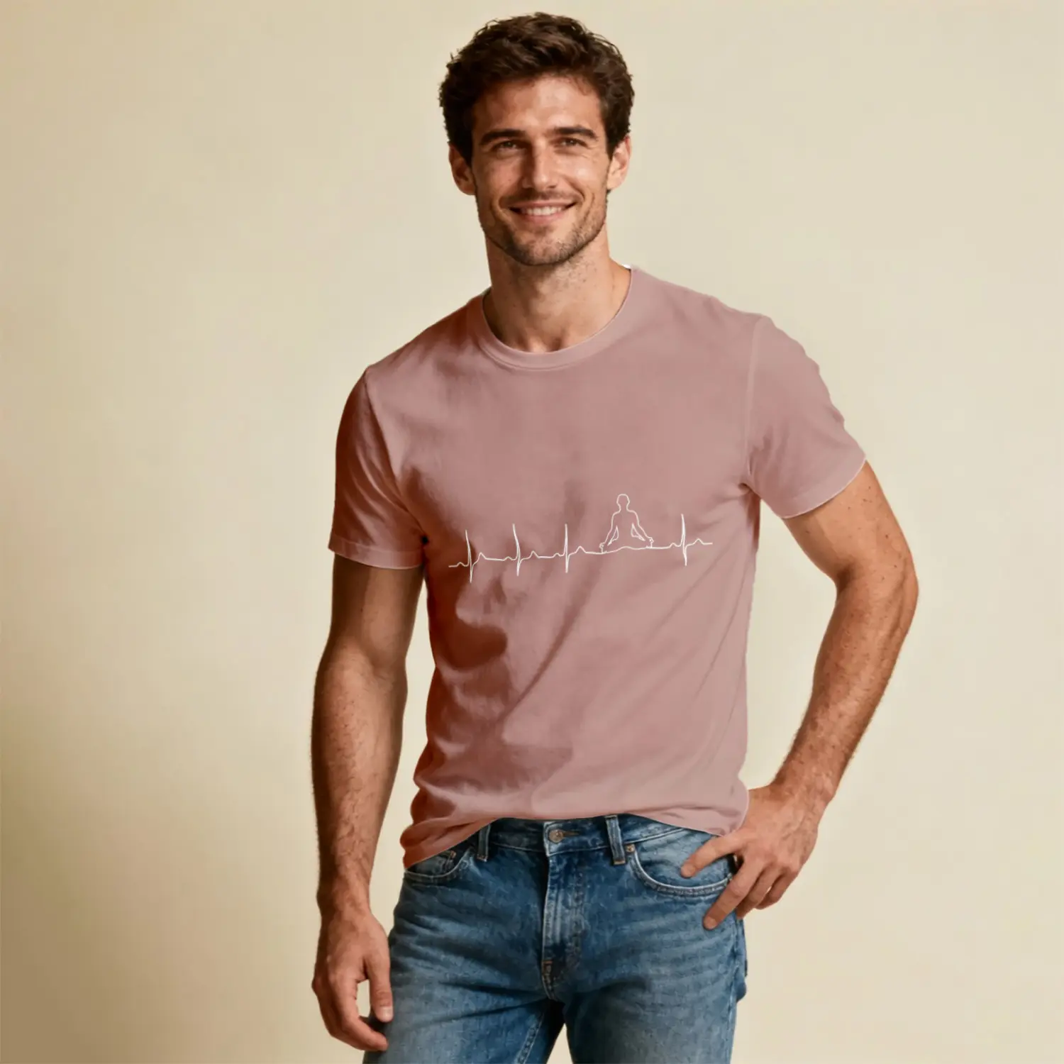 Meditasyon Kalp Atışı Baskılı Erkek Tişört için 6 değerlendirme