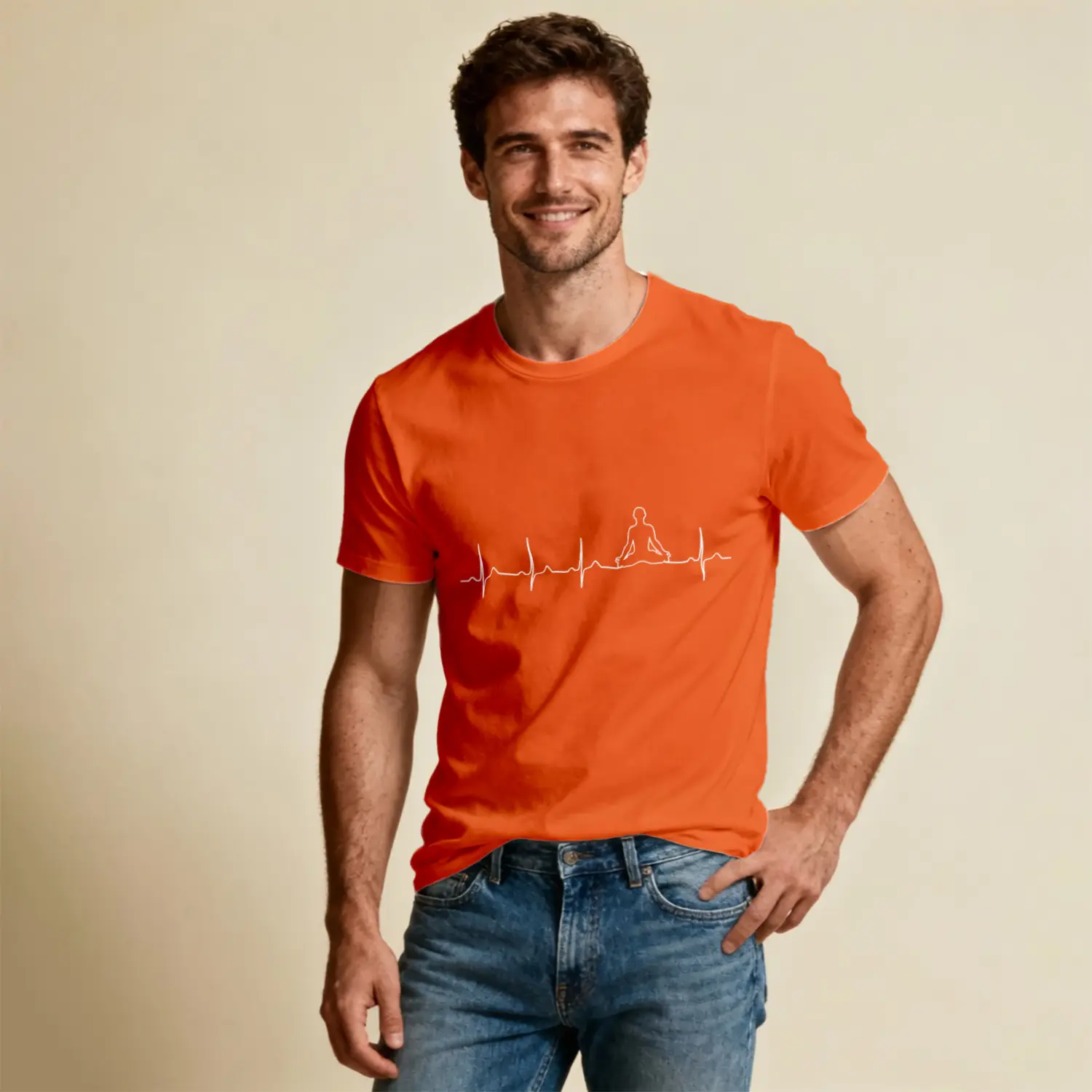Meditasyon Kalp Atışı Baskılı Erkek Tişört