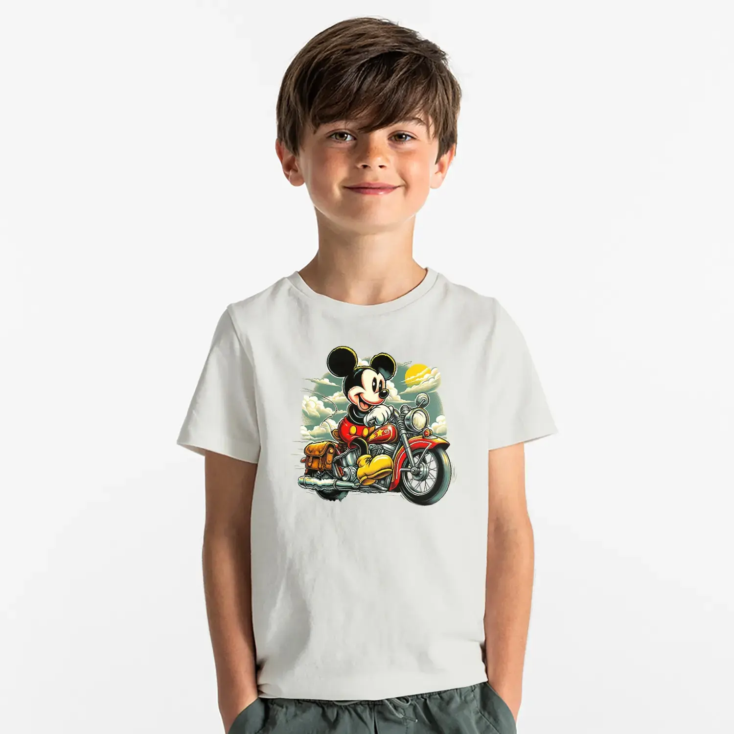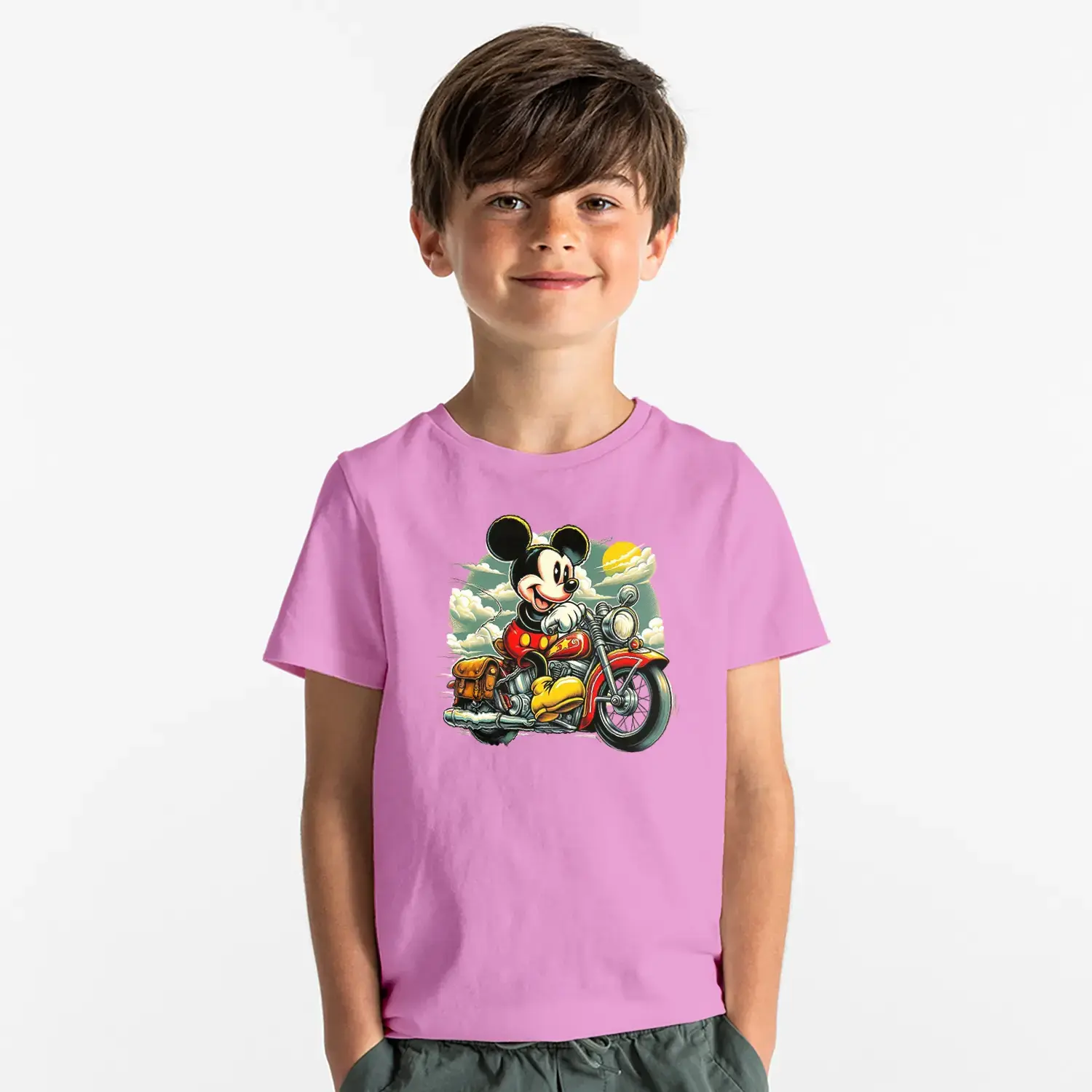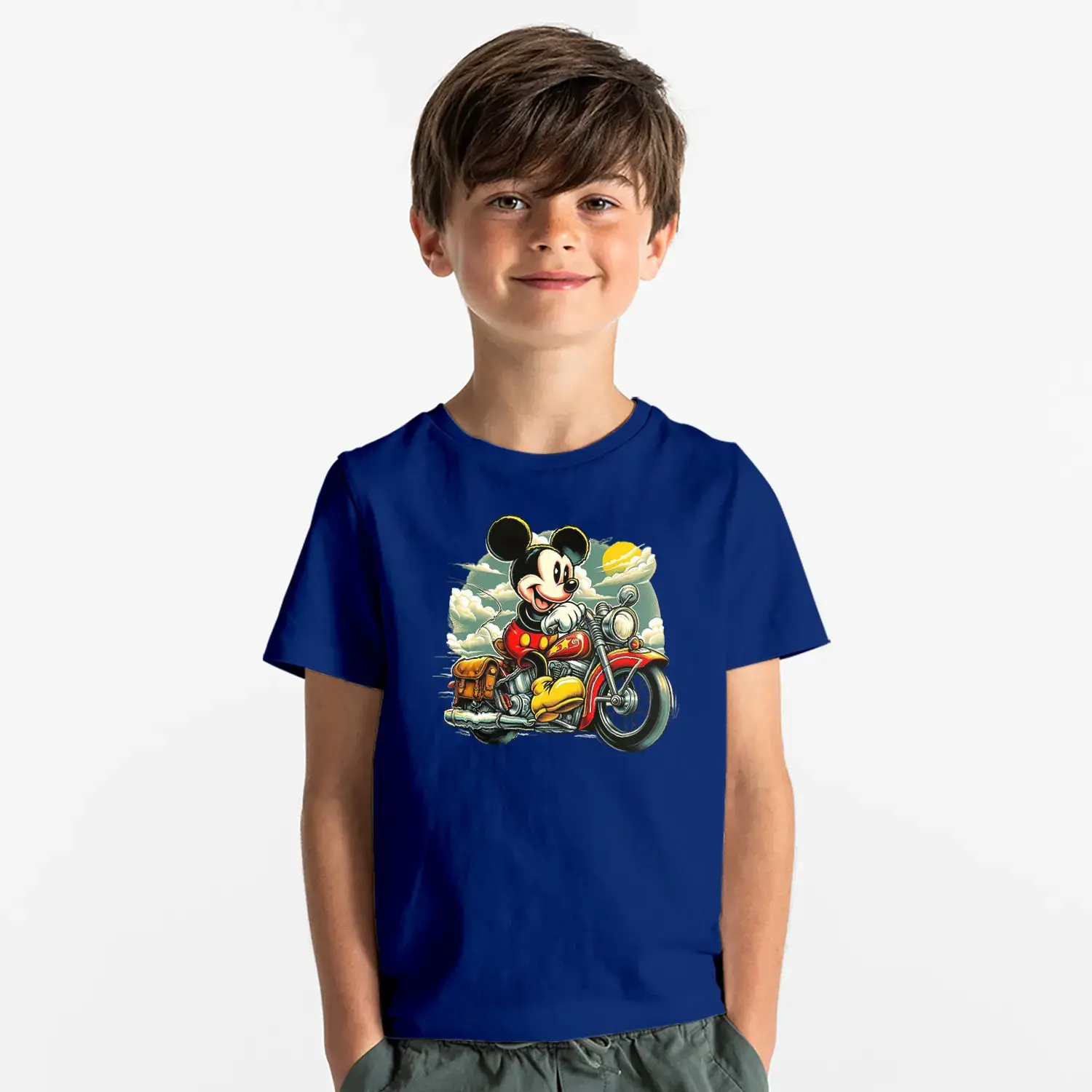 Motorcu Fare Baskılı Erkek Çocuk Tişört