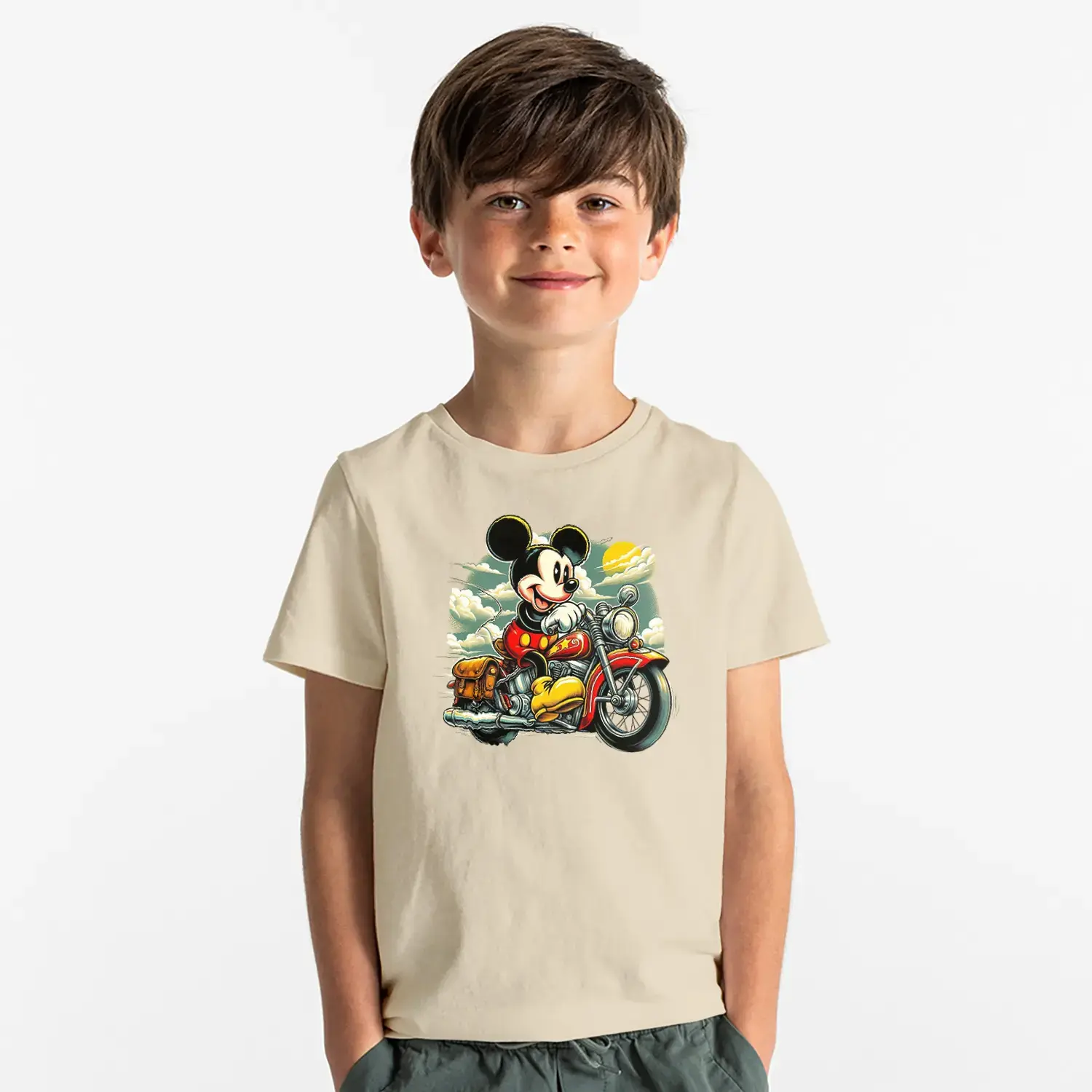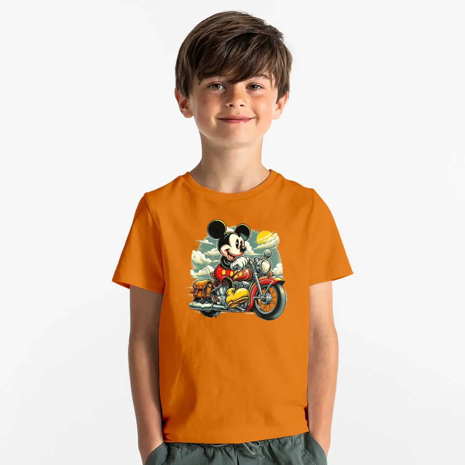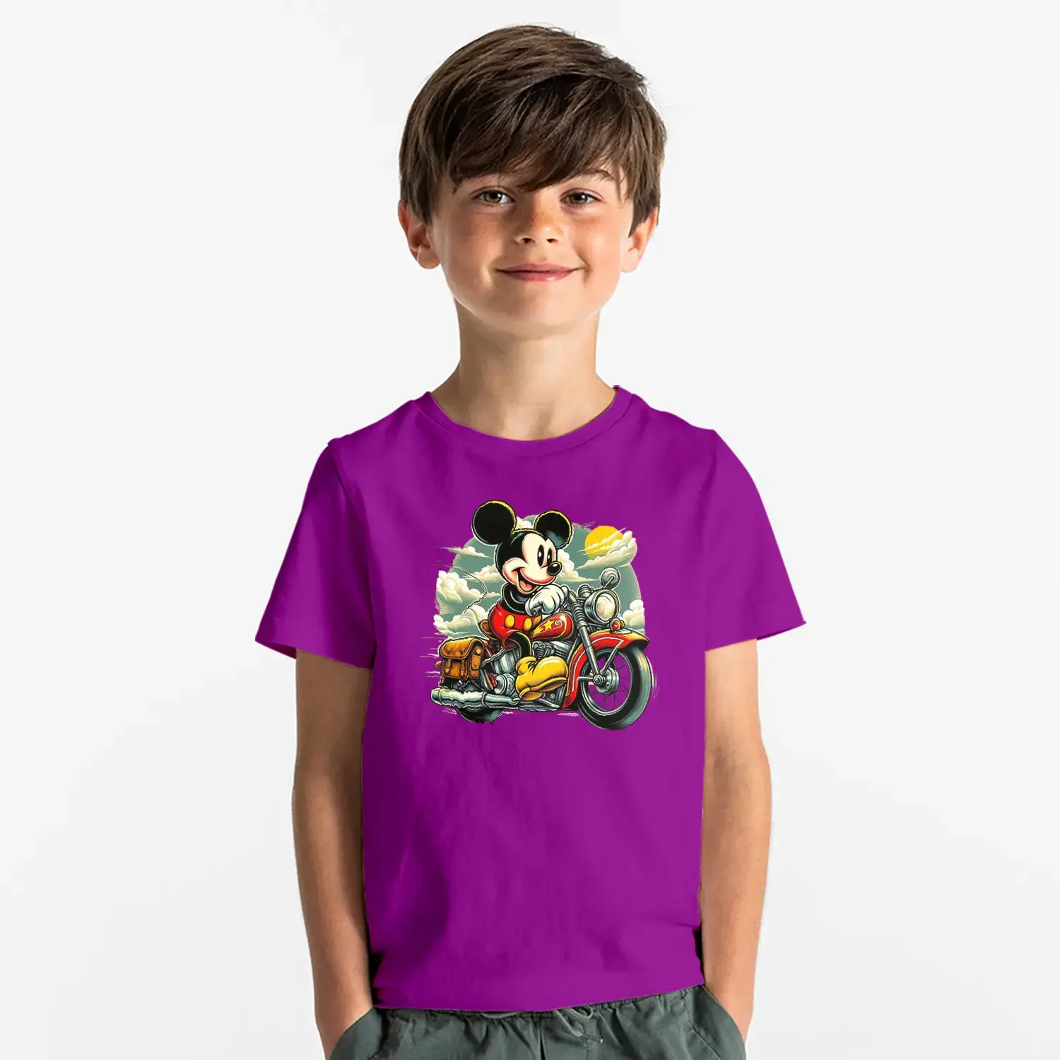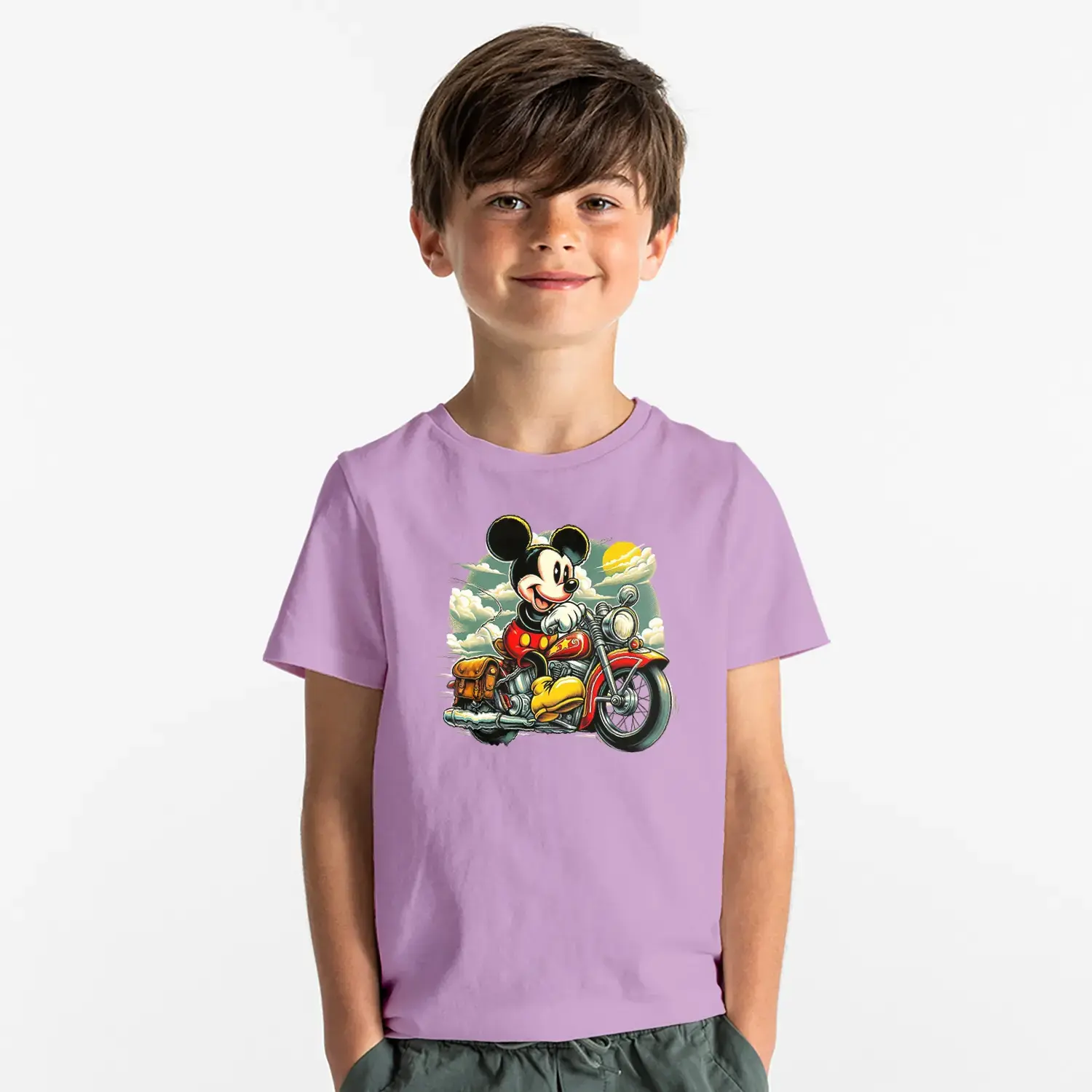 Motorcu Fare Baskılı Erkek Çocuk Tişört