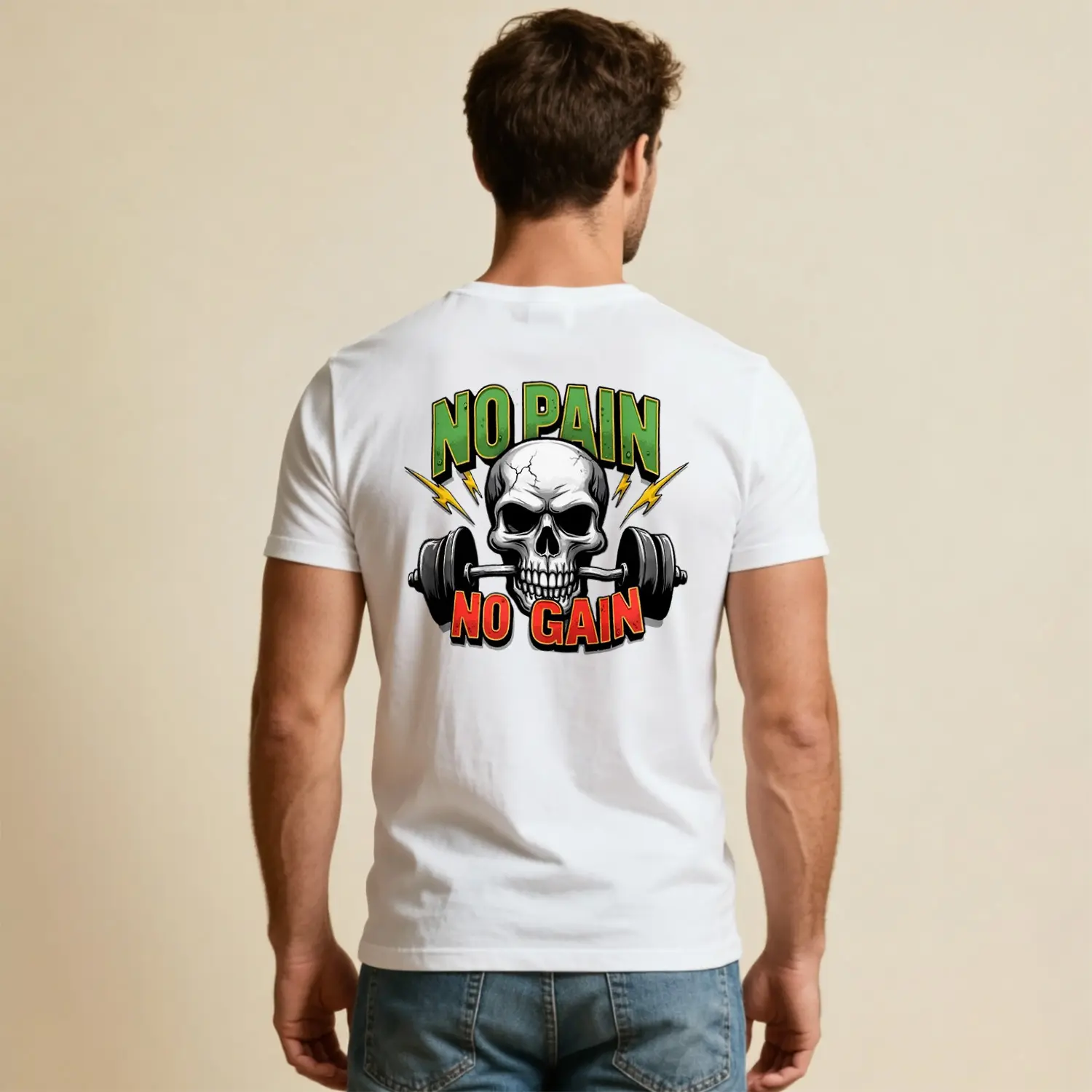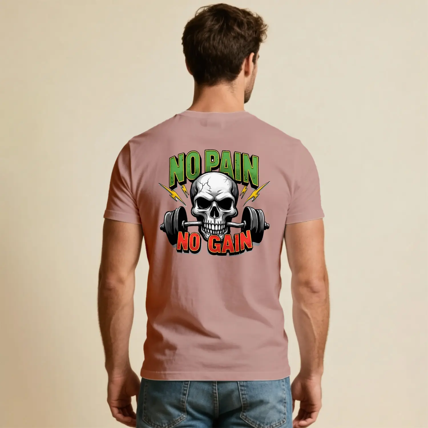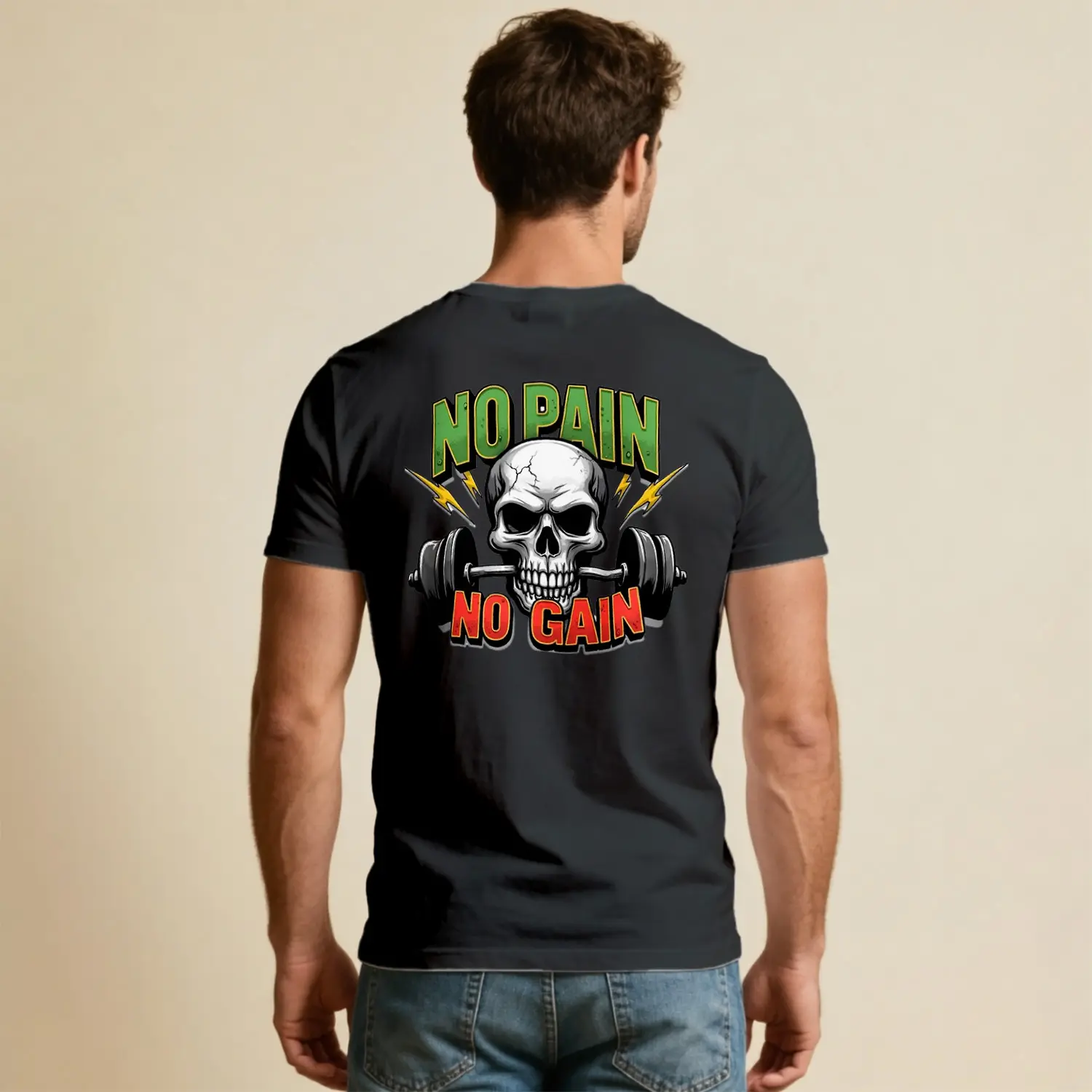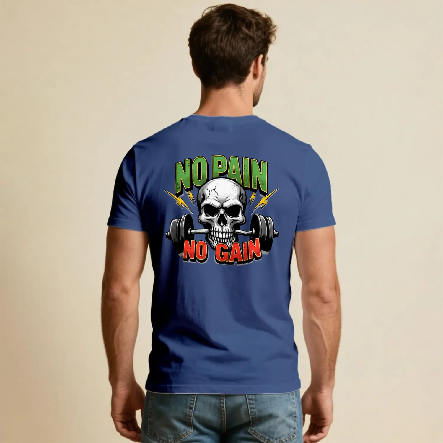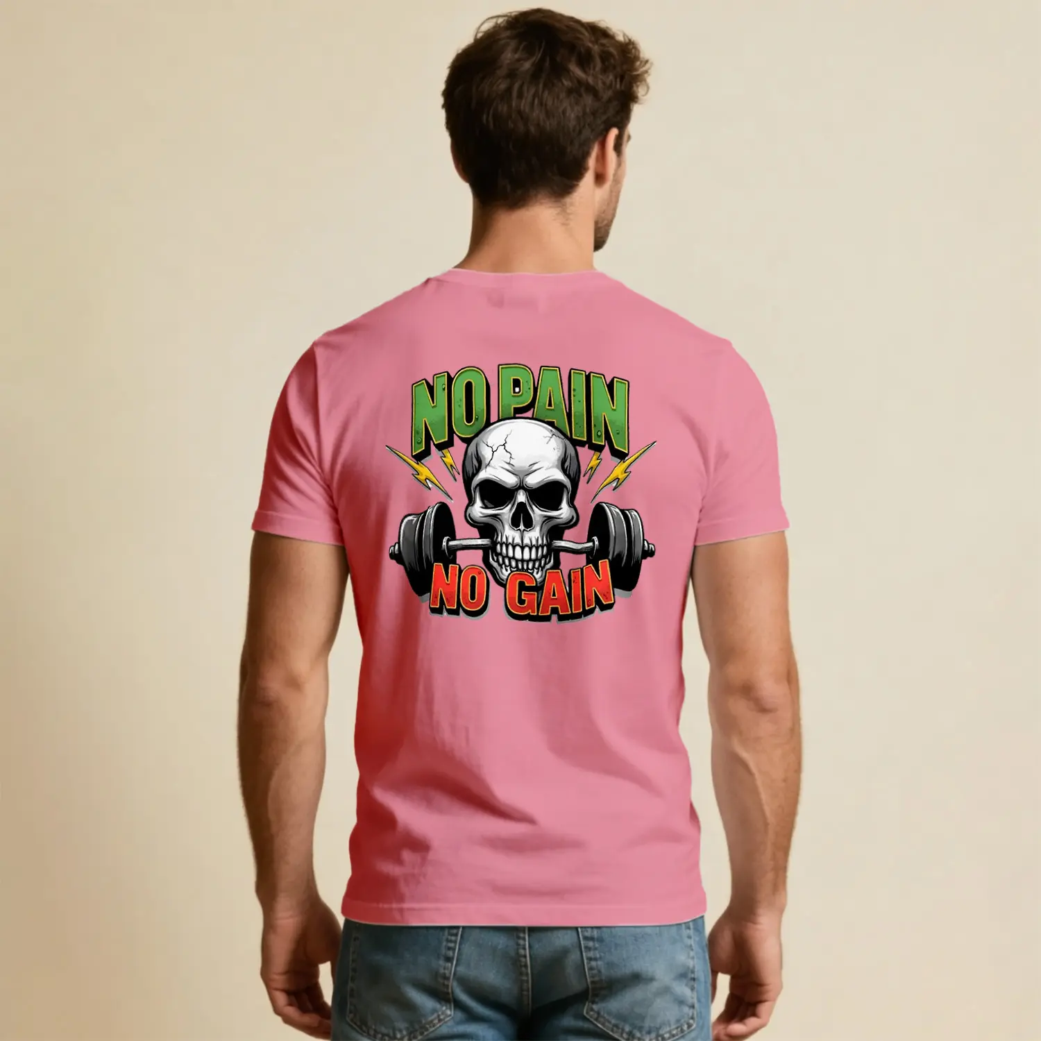 No Pain No Gain Kurukafa Halter Baskılı Erkek Tişört