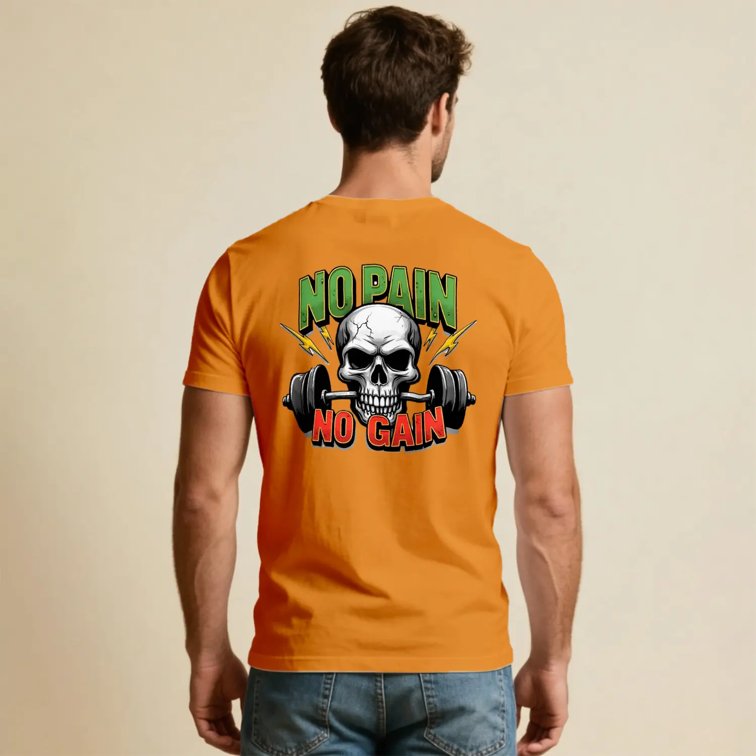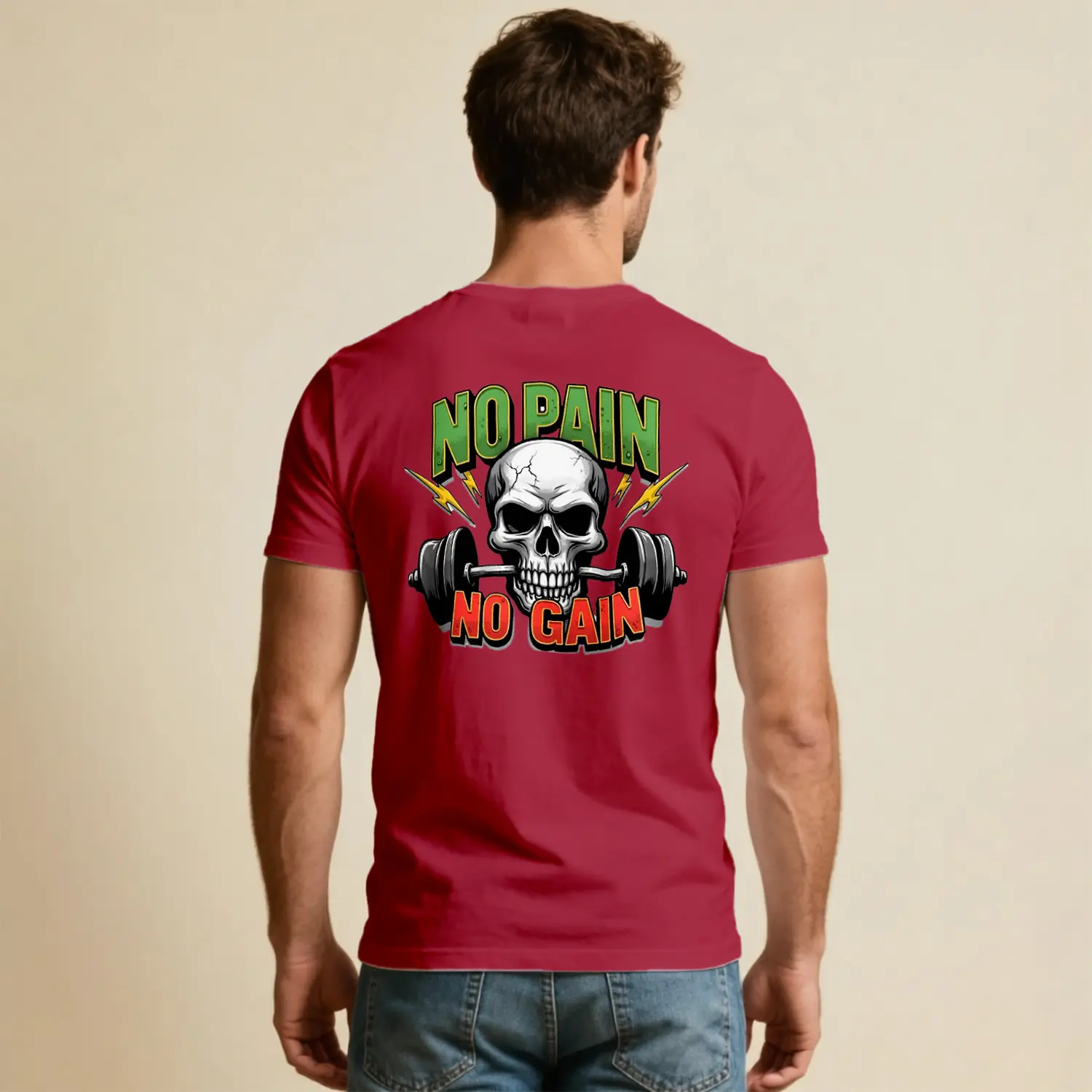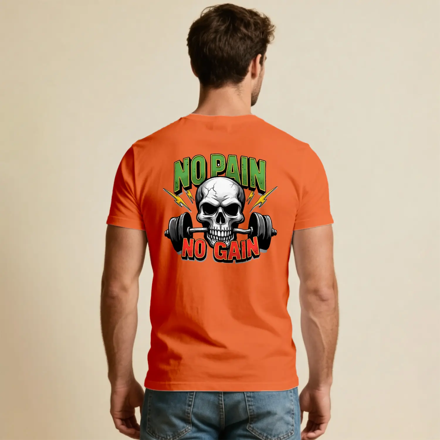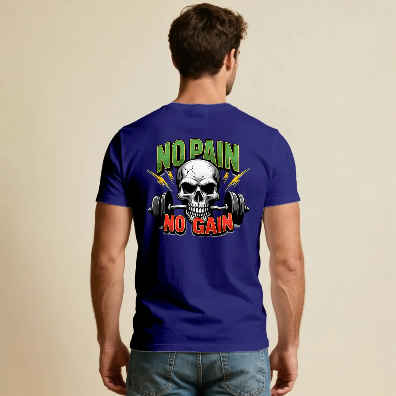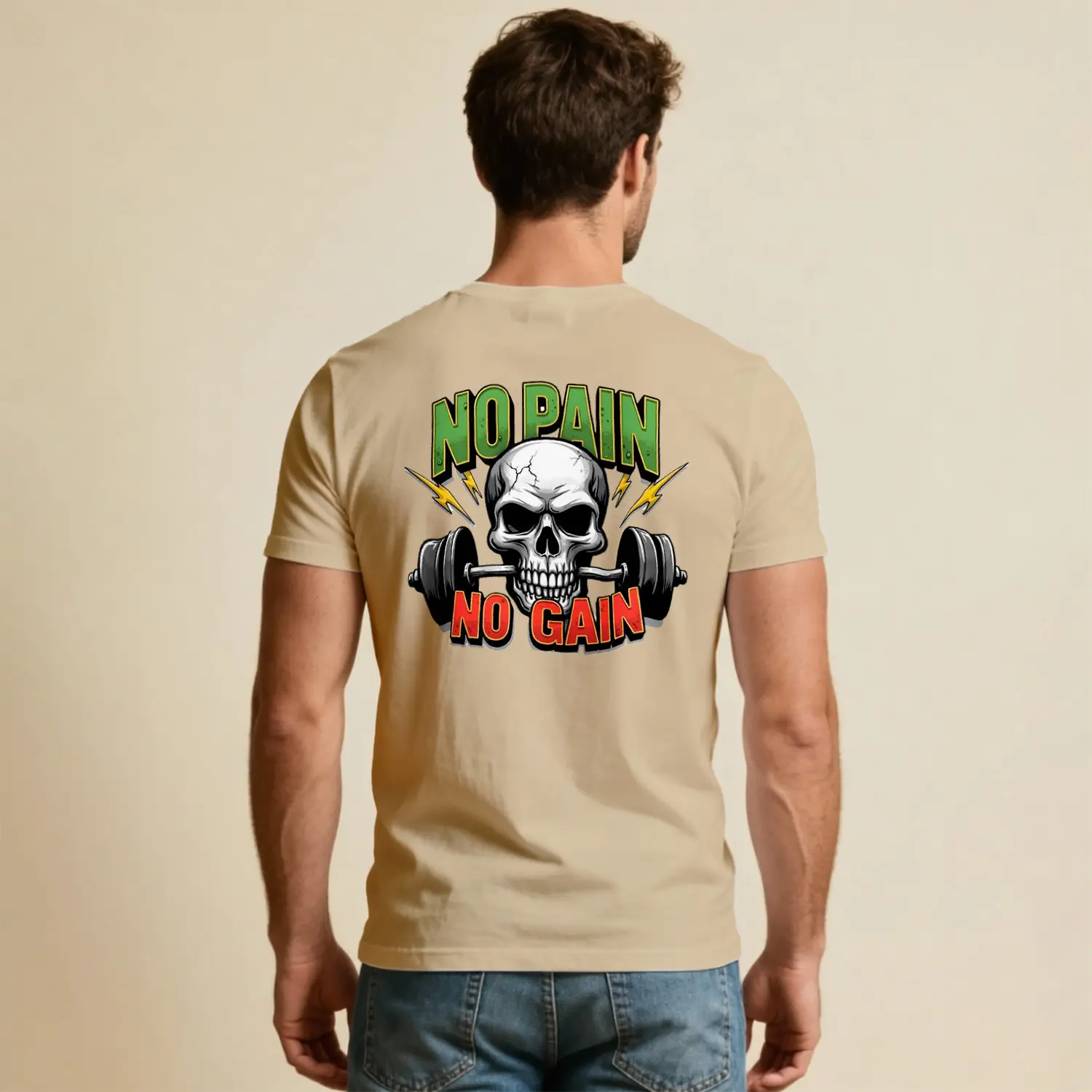 No Pain No Gain Kurukafa Halter Baskılı Erkek Tişört