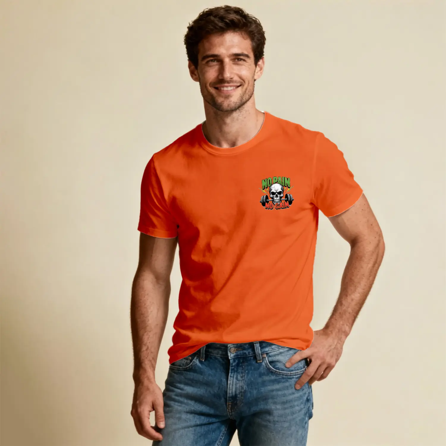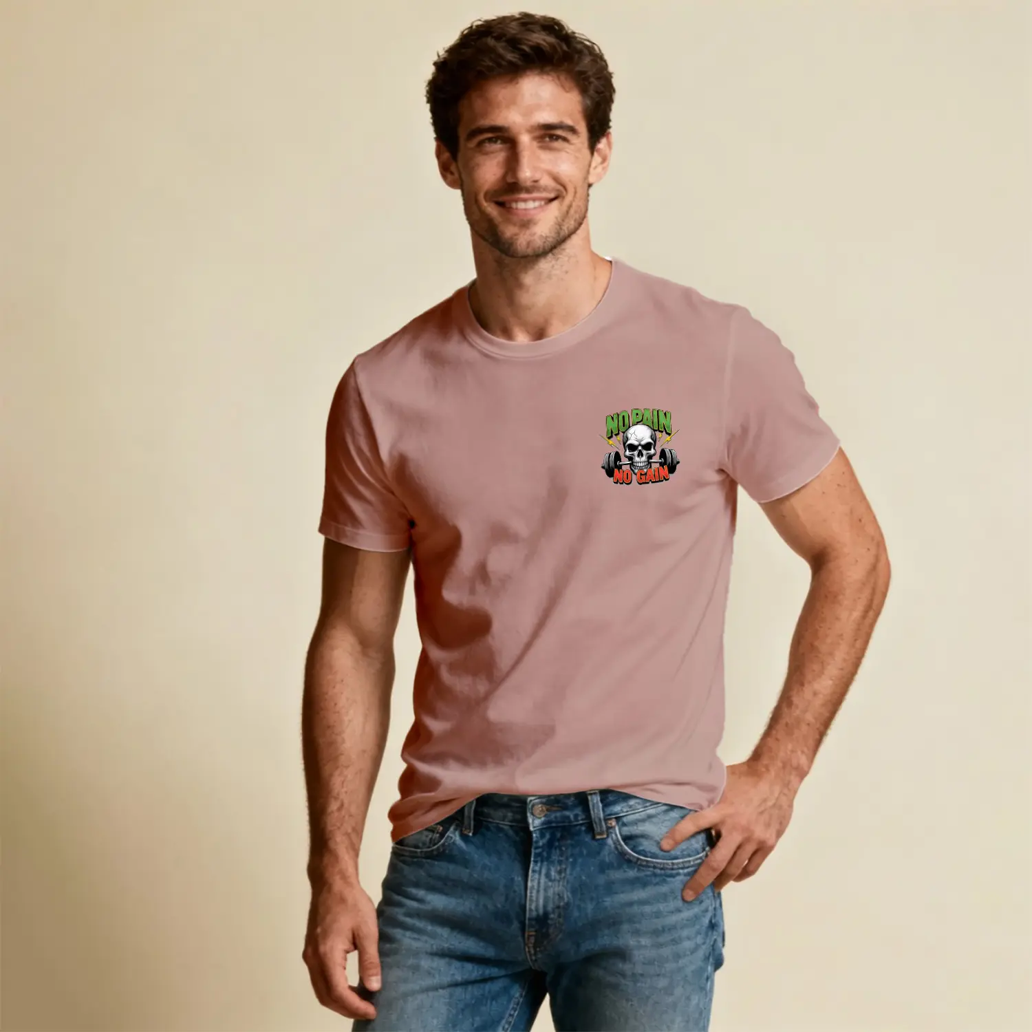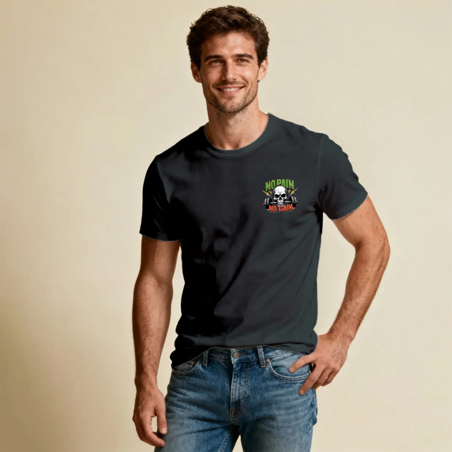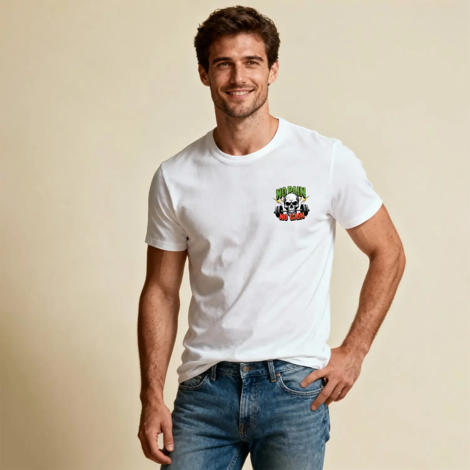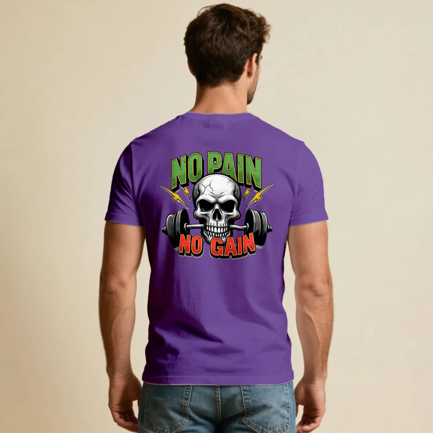 No Pain No Gain Kurukafa Halter Baskılı Erkek Tişört