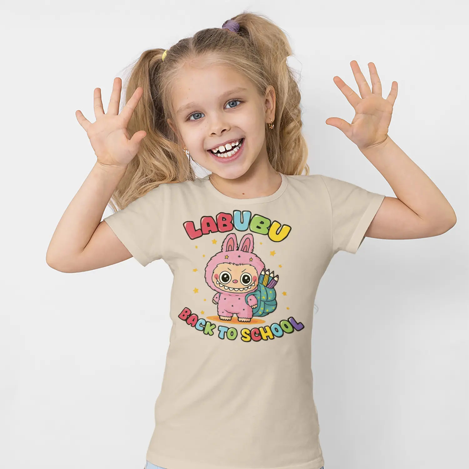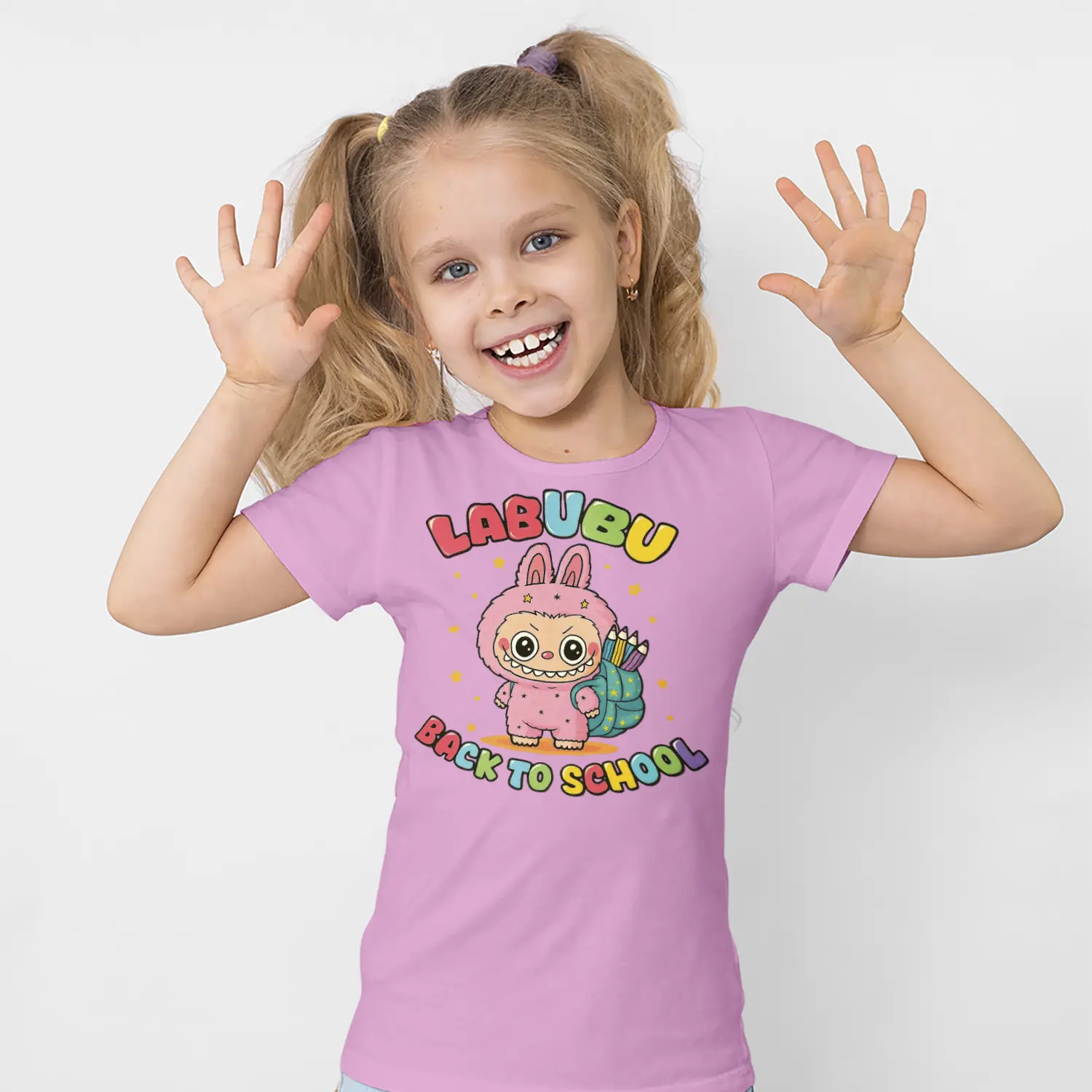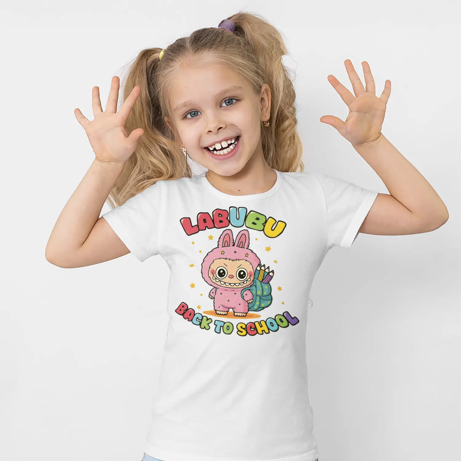 Okul Çantalı Sevimli Tavşan Karikatür Figürlü Baskılı Kız Çocuk Tişörtü için 10 değerlendirme