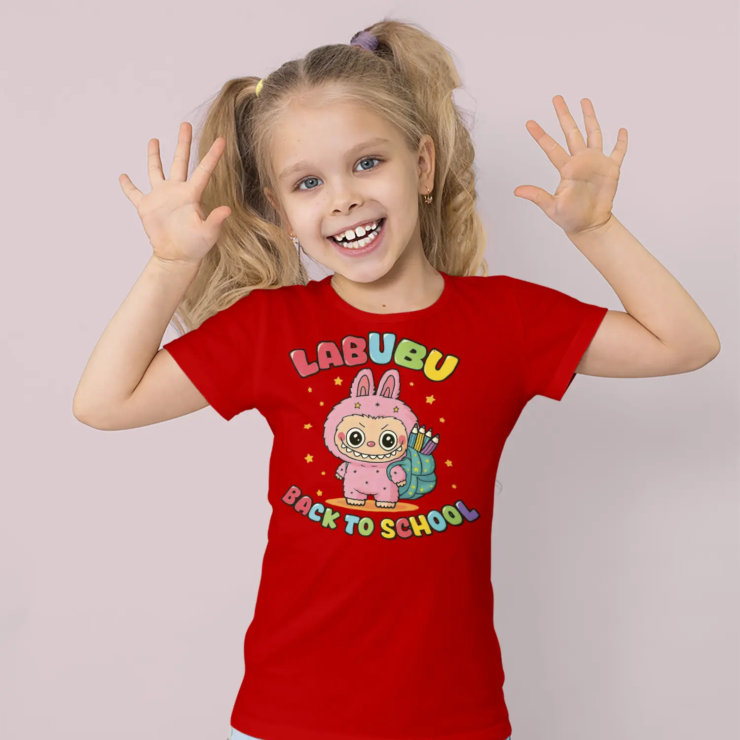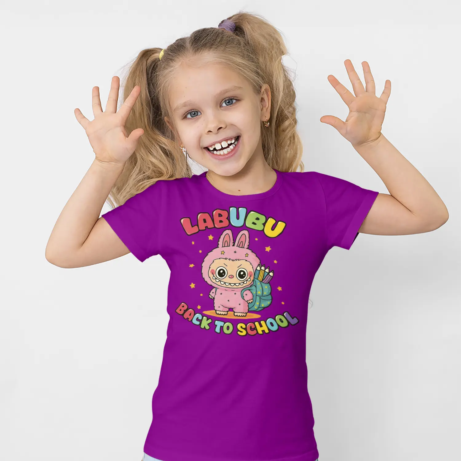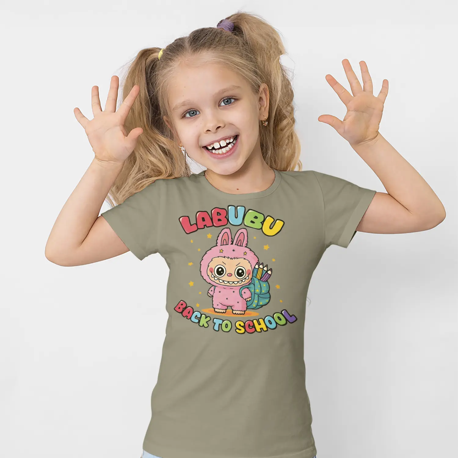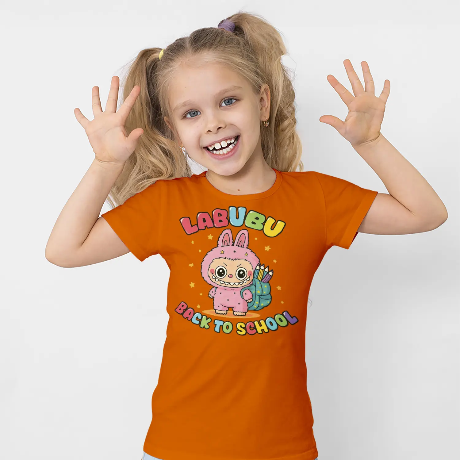 Okul Çantalı Sevimli Tavşan Karikatür Figürlü Baskılı Kız Çocuk Tişörtü için 10 değerlendirme