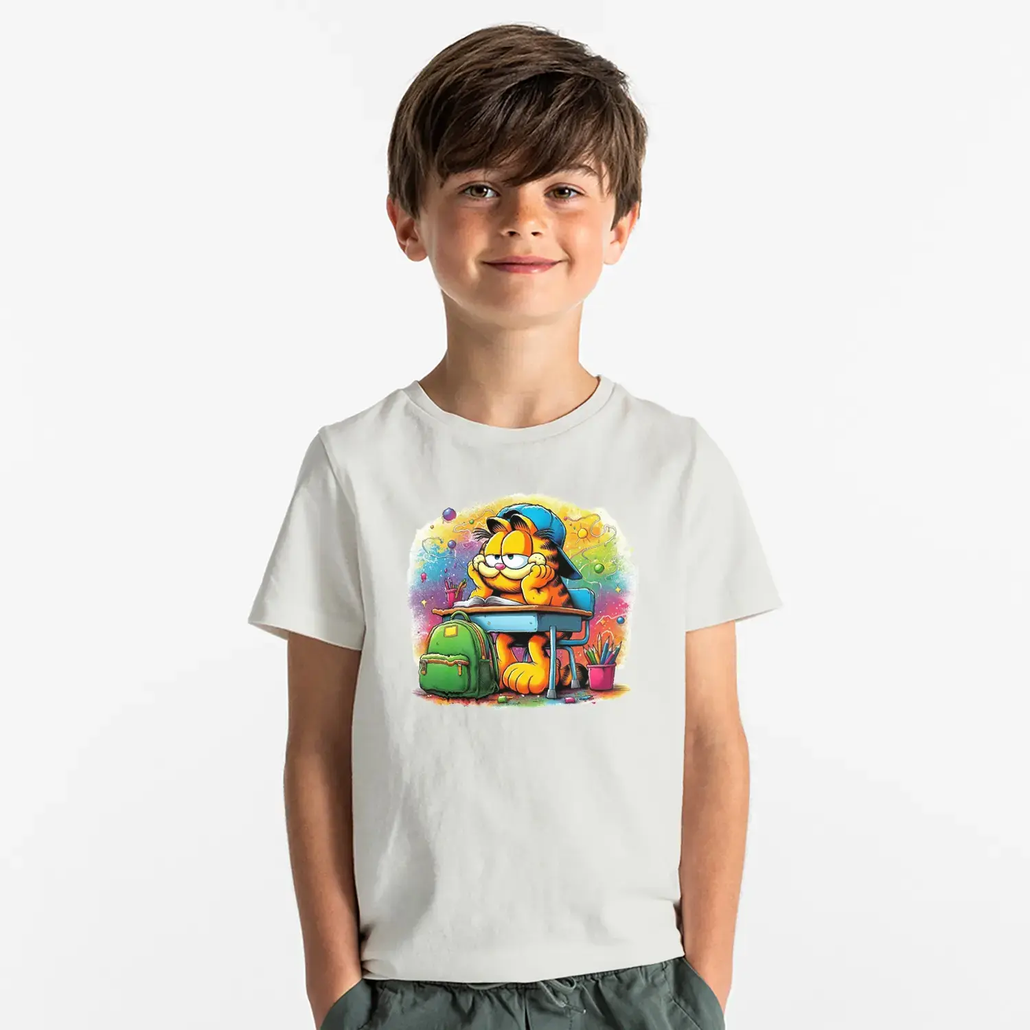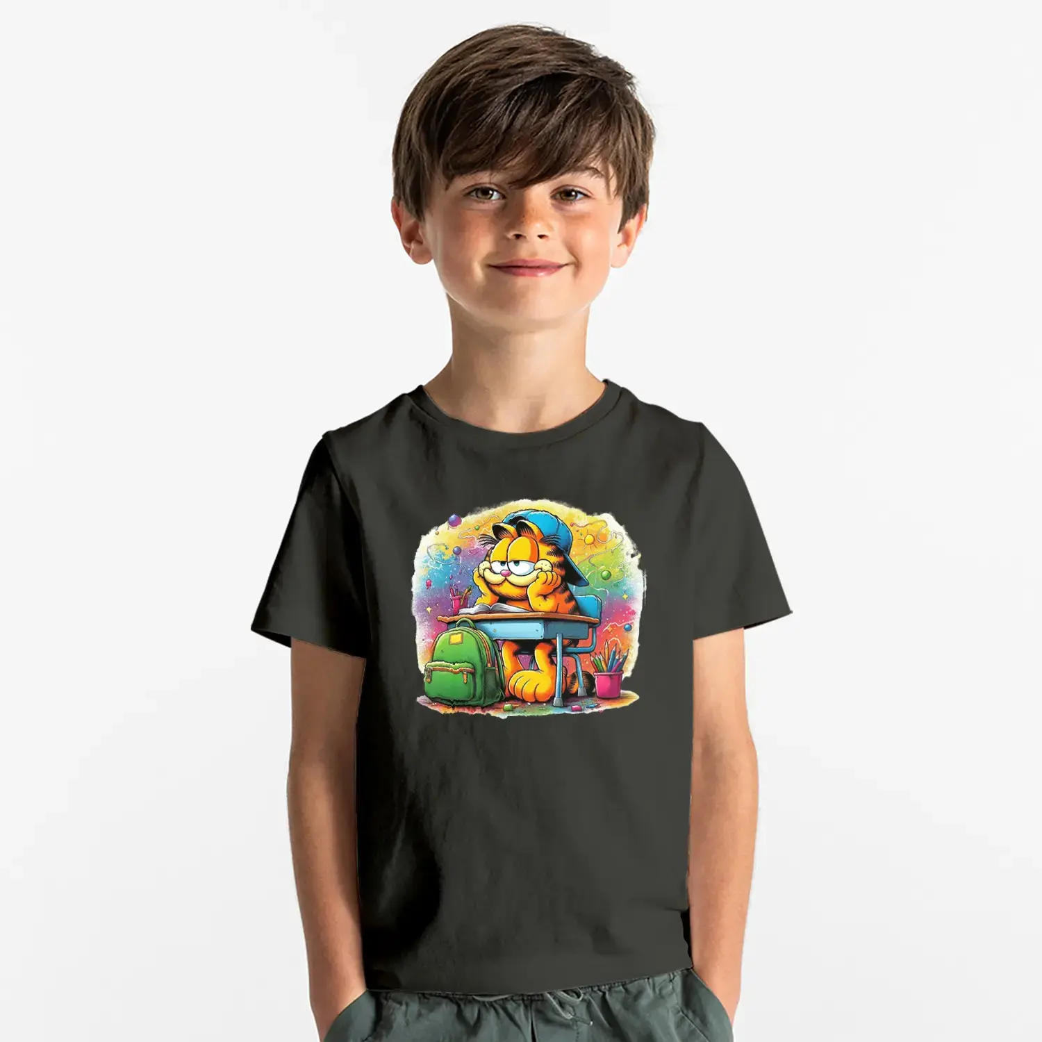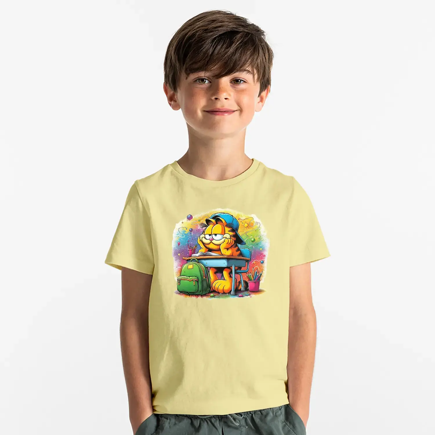 Okul Temalı Sevimli Kedi Cizgi Karakter Baskılı Erkek Çocuk Tişörtü