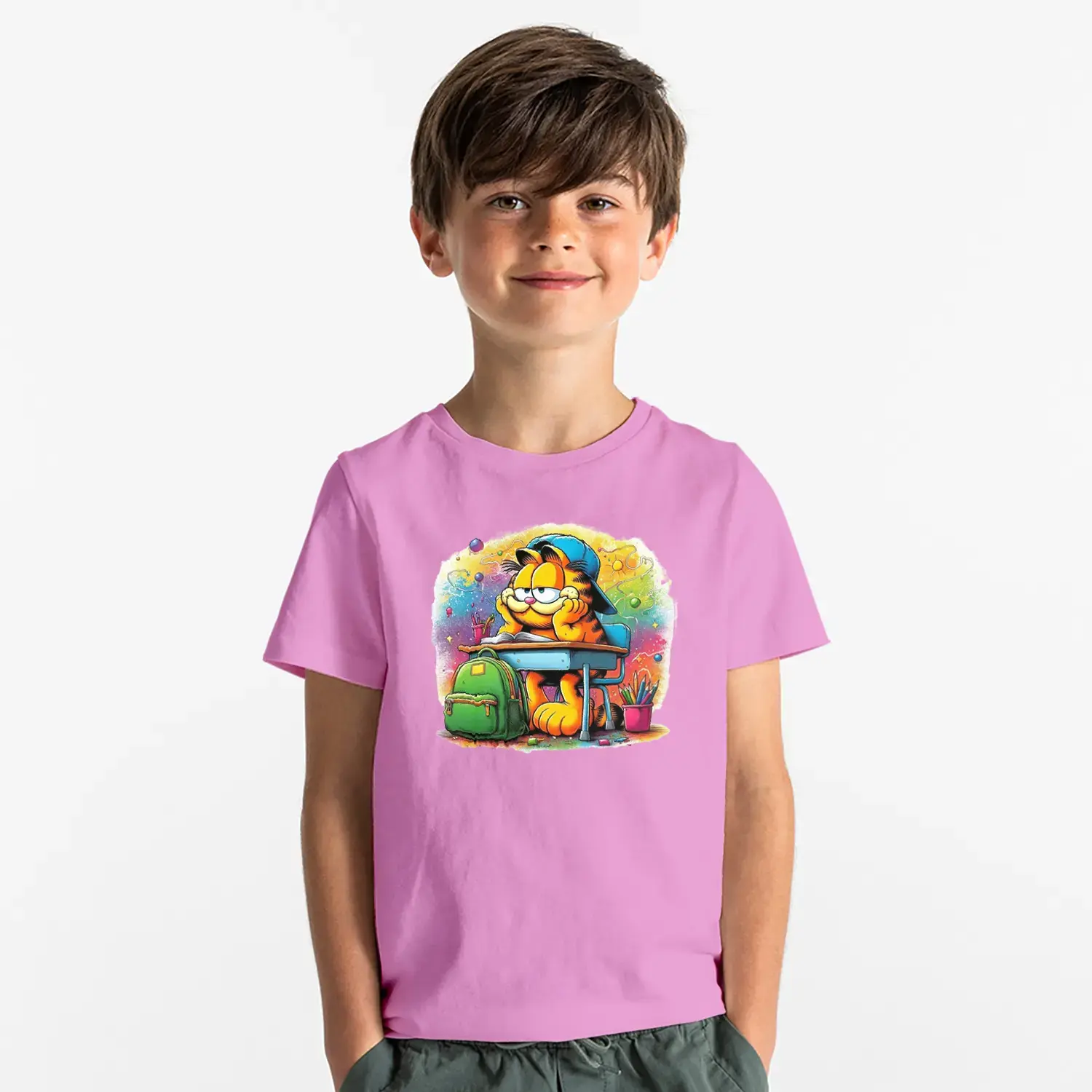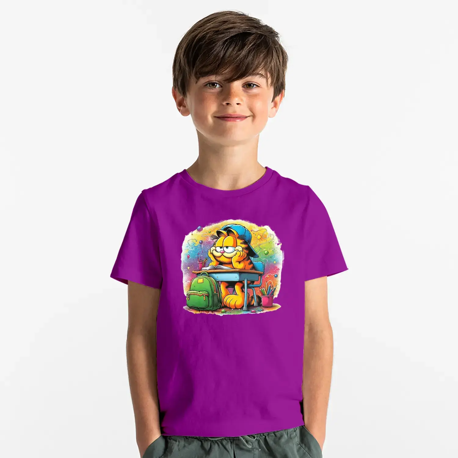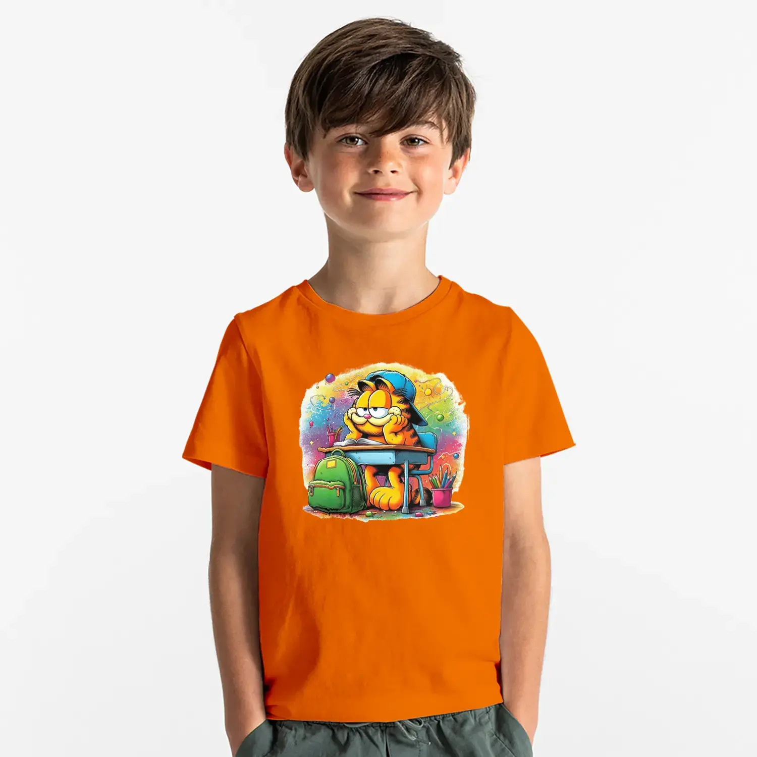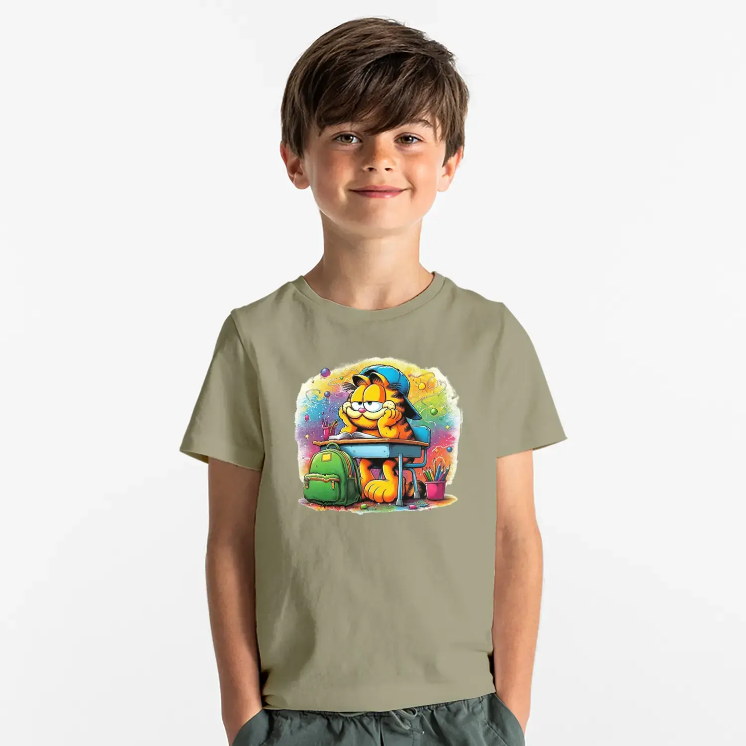 Okul Temalı Sevimli Kedi Cizgi Karakter Baskılı Erkek Çocuk Tişörtü
