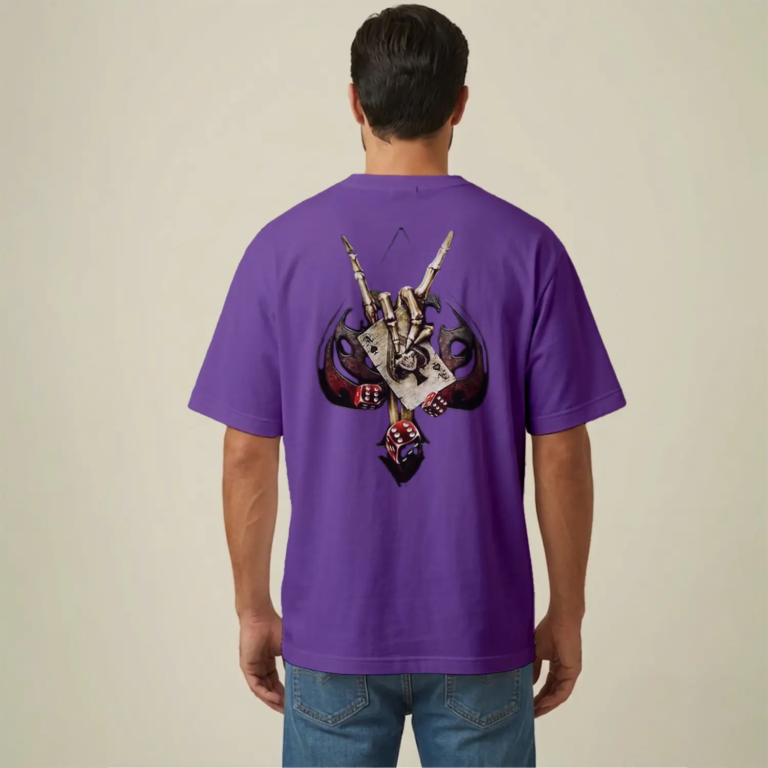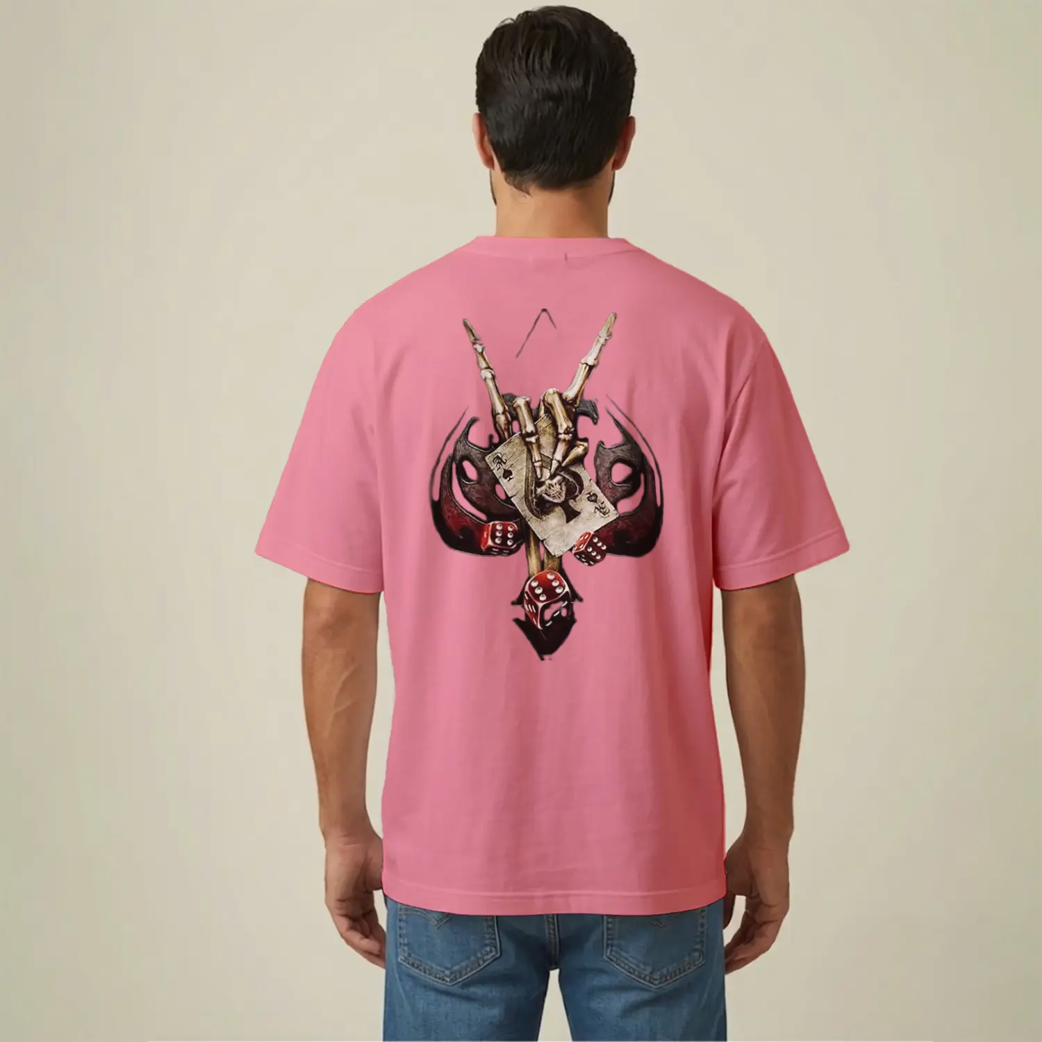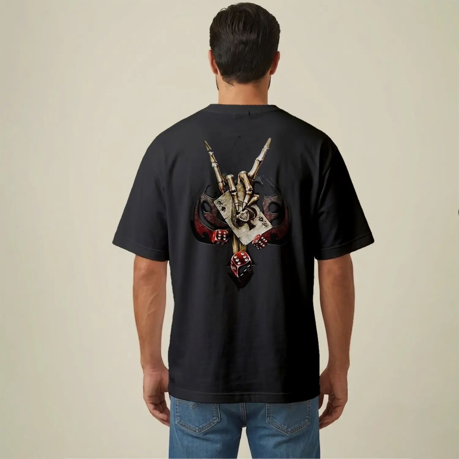 Poker ve İskelet Sembolü Baskılı Erkek Tişört