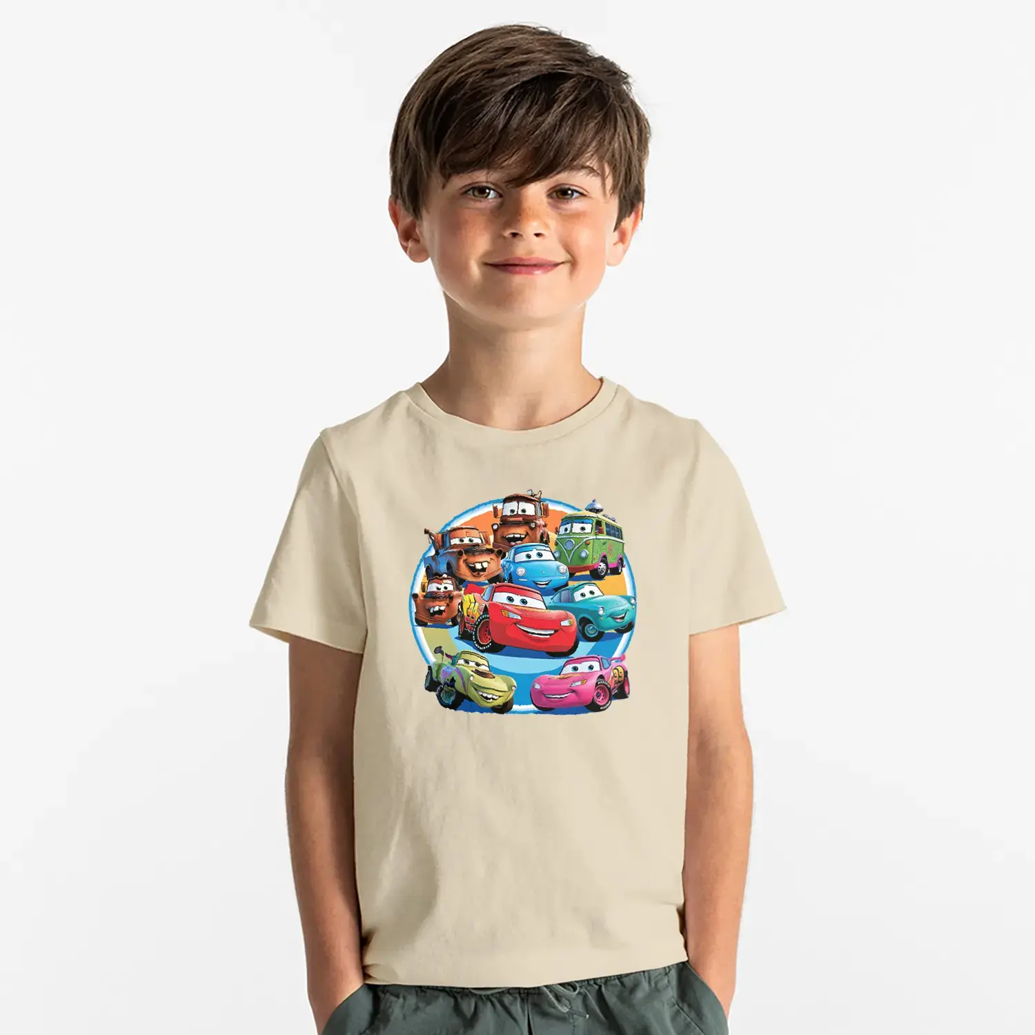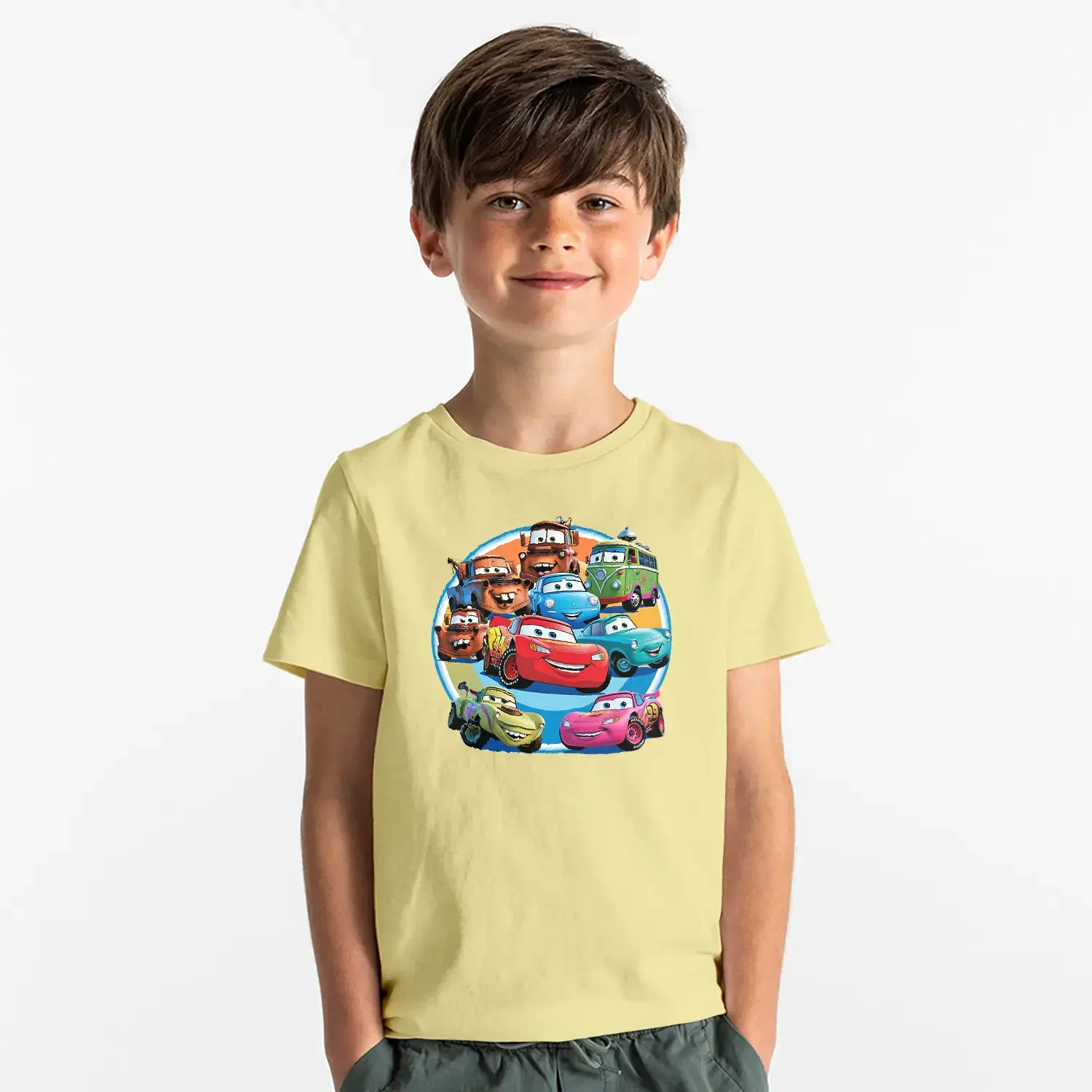 Renkli Arabalar Cizgi Karakter Baskılı Erkek Çocuk Tişörtü