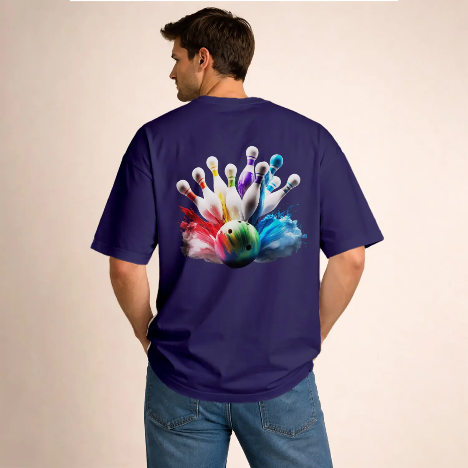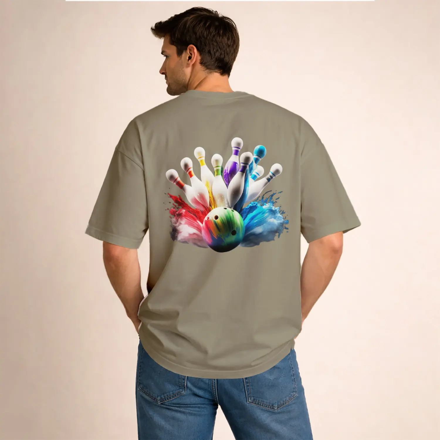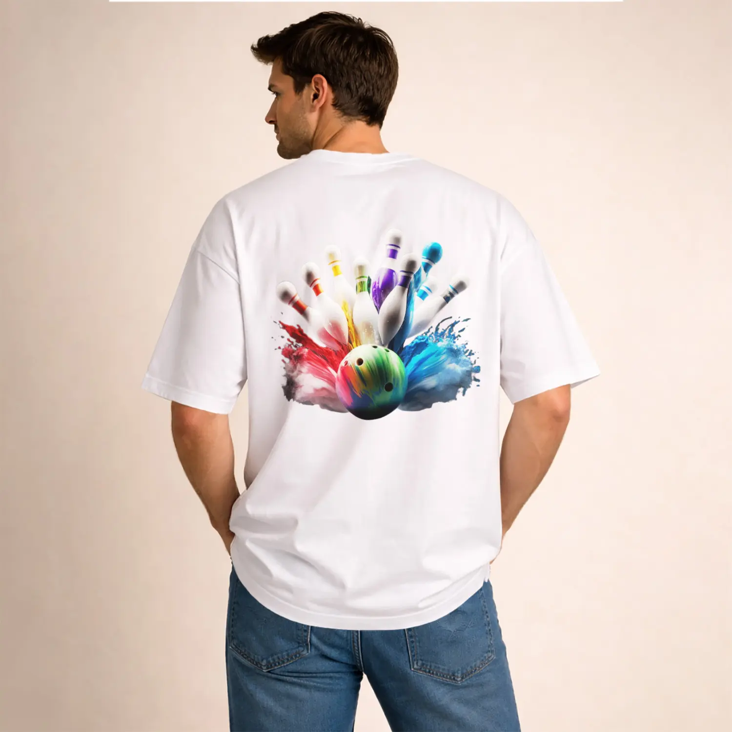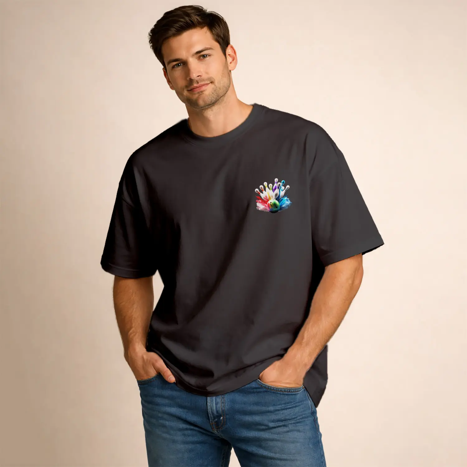 Renkli Bowling Topu ve Şişeleri Baskılı Erkek Tişört