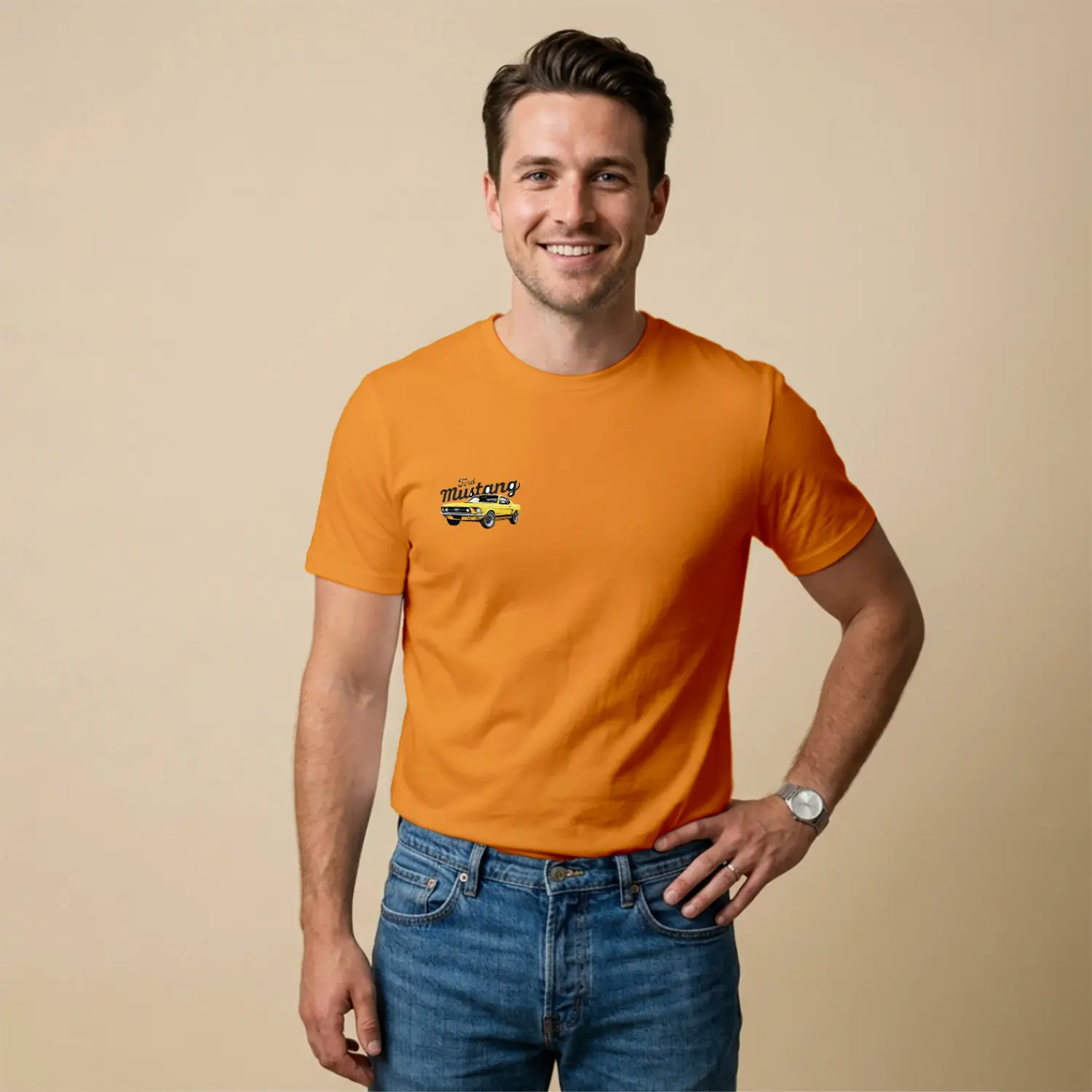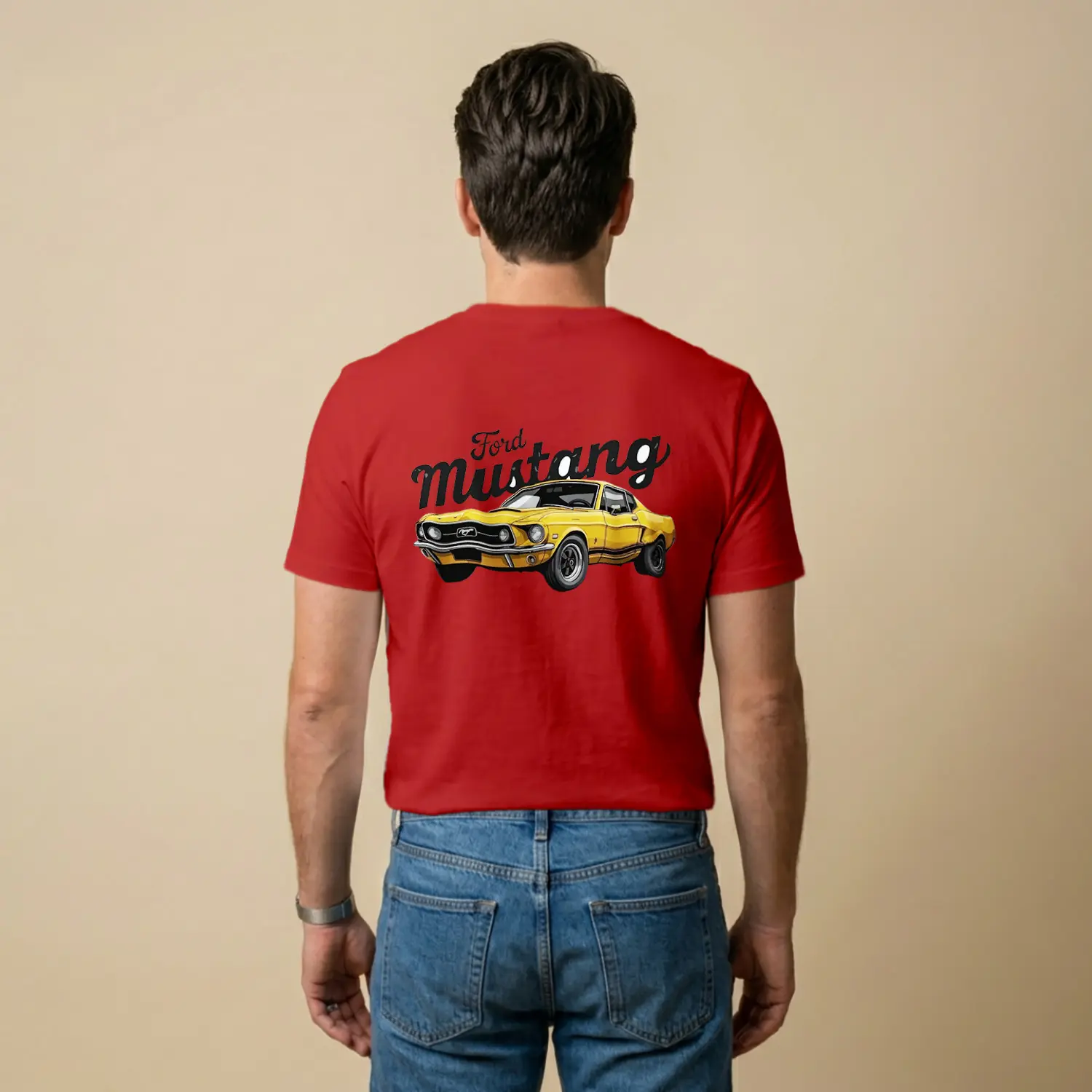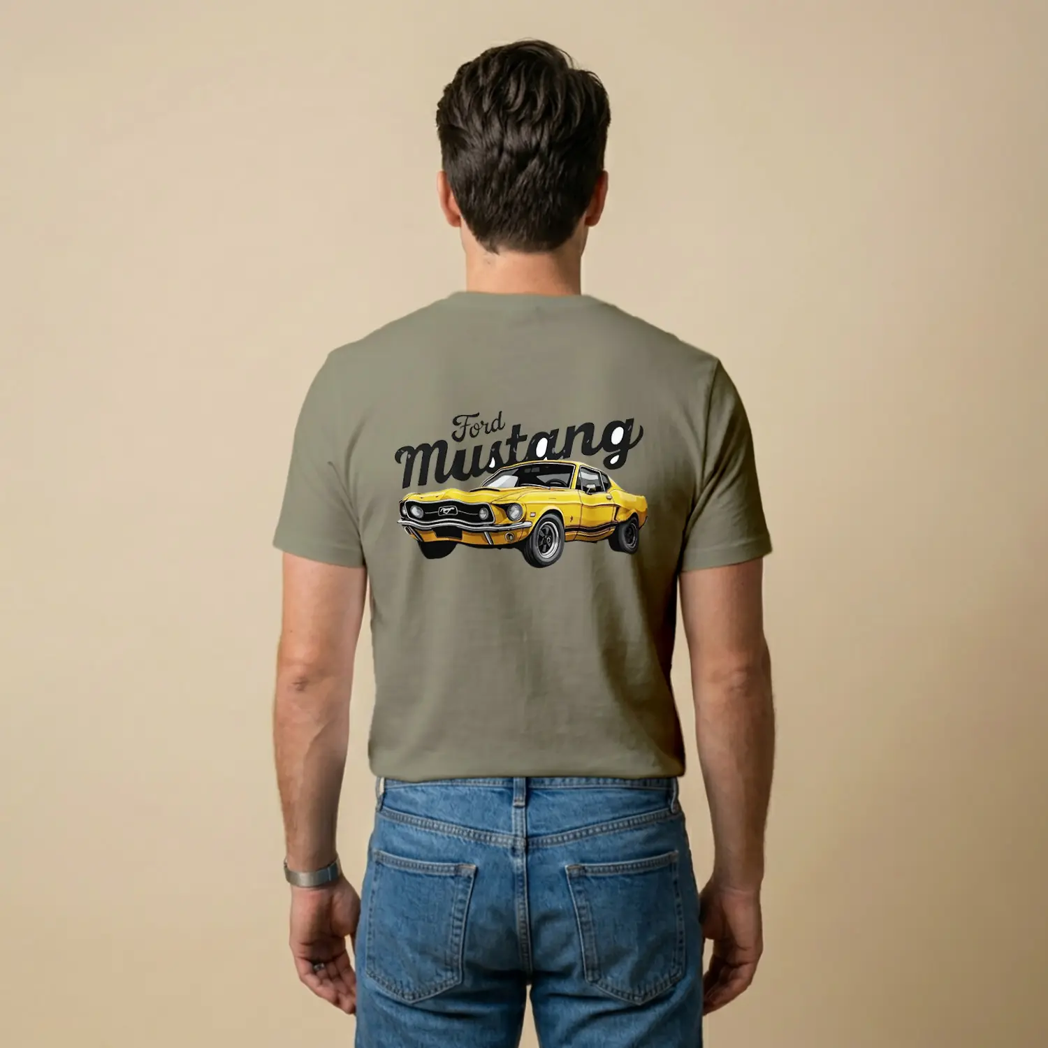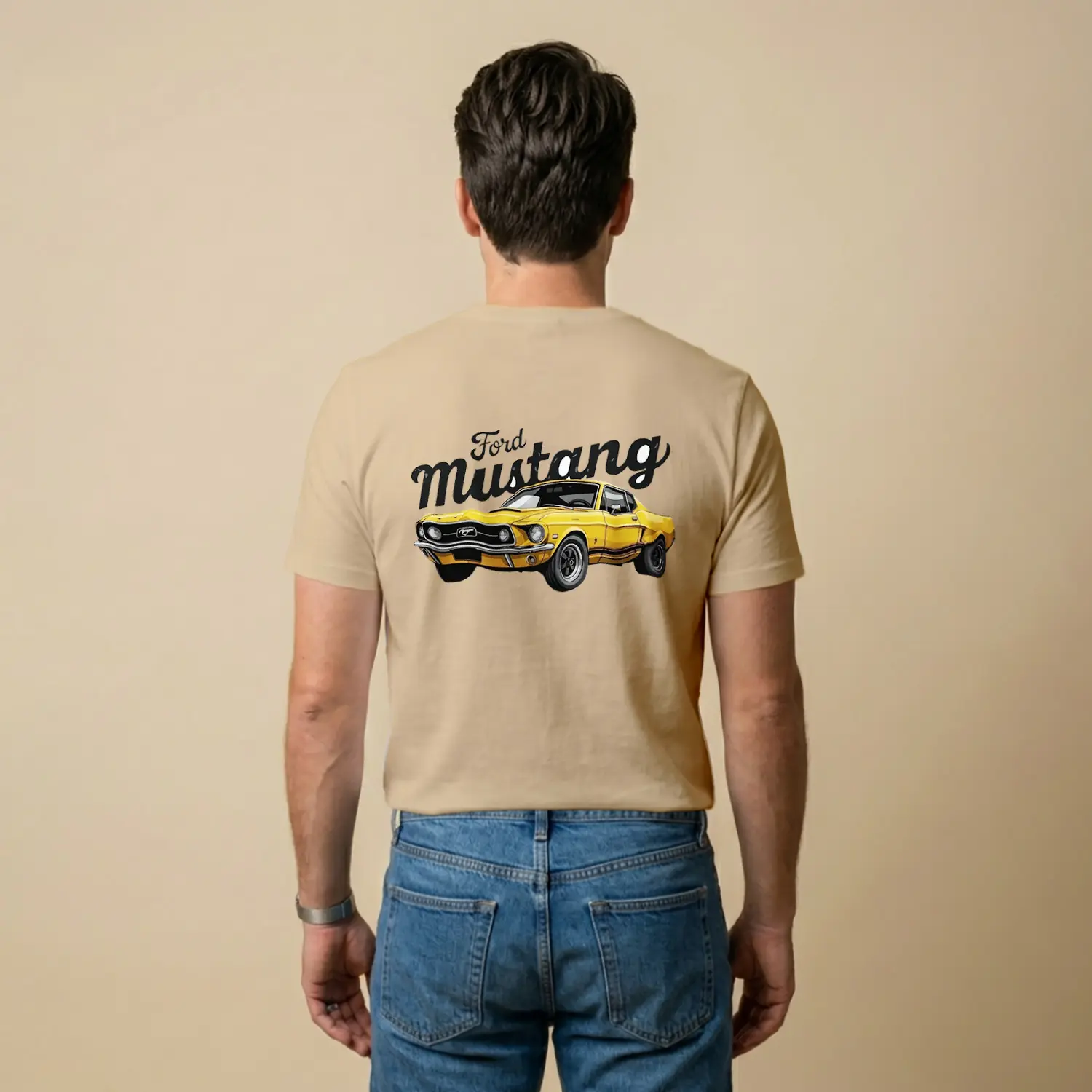 Retro Sarı Spor Araba Baskılı Erkek Tişört