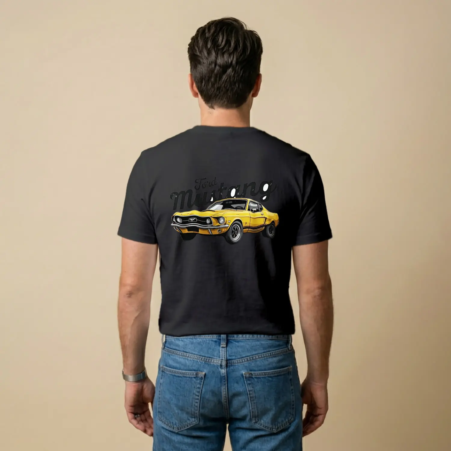 Retro Sarı Klasik Araba Baskılı Erkek Tişörtü