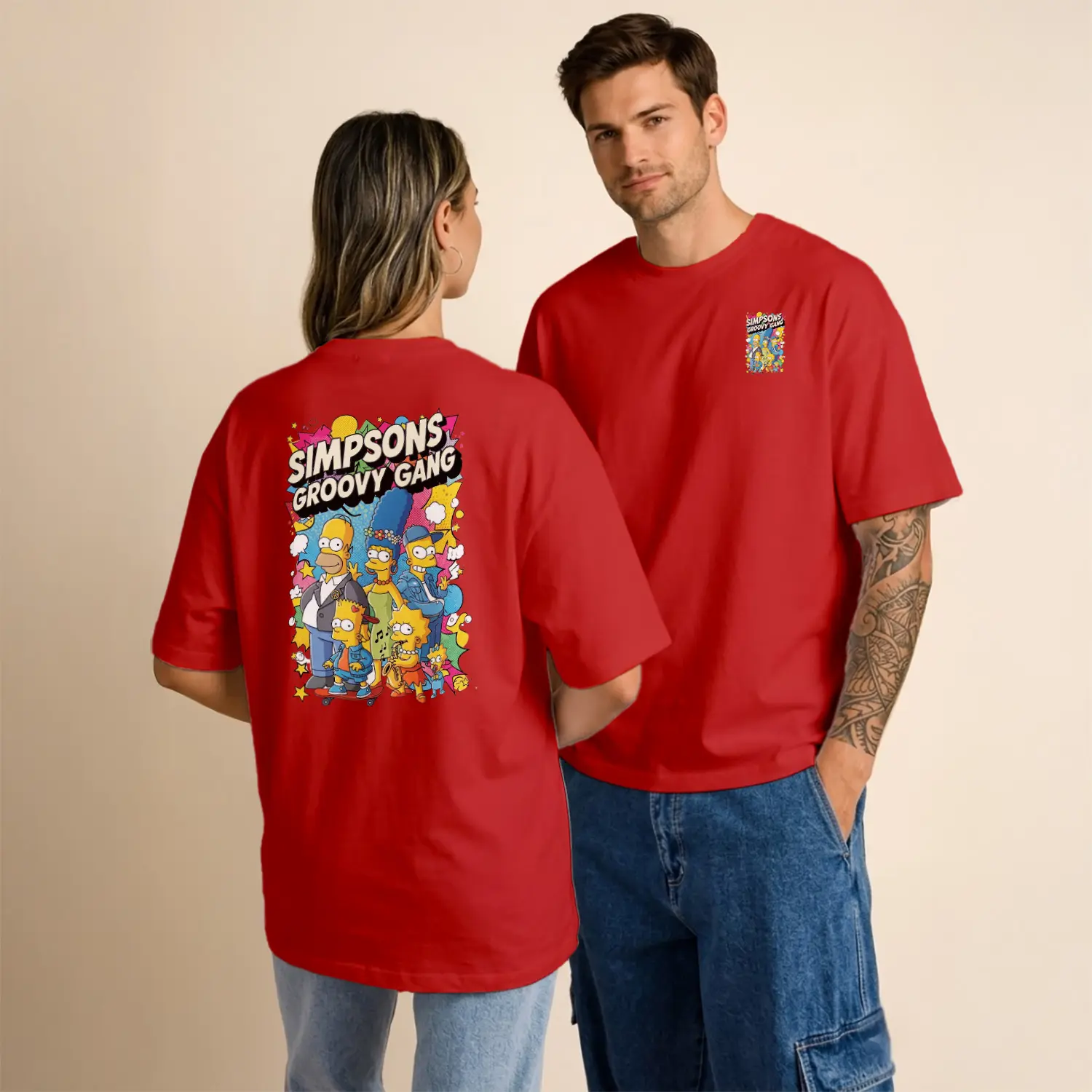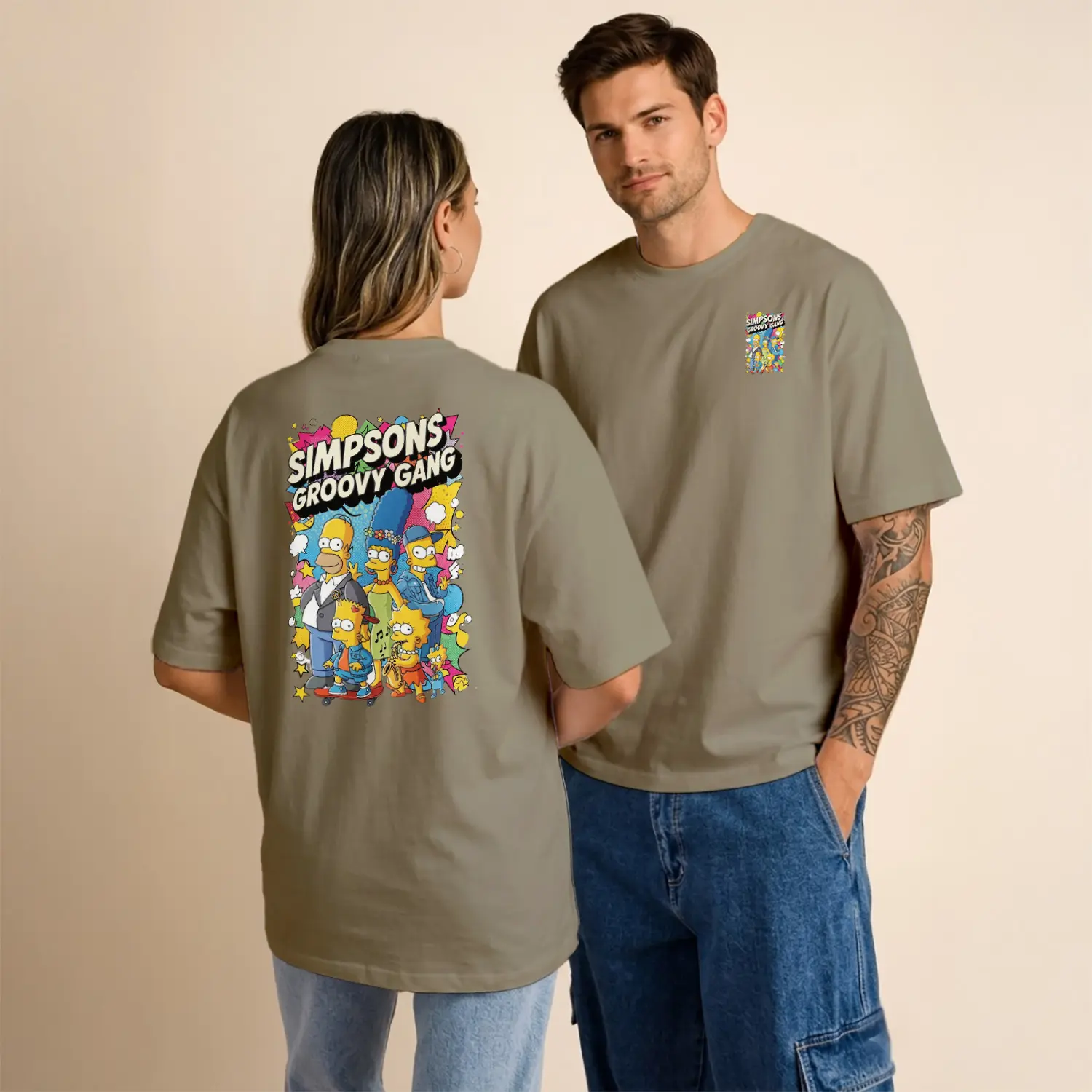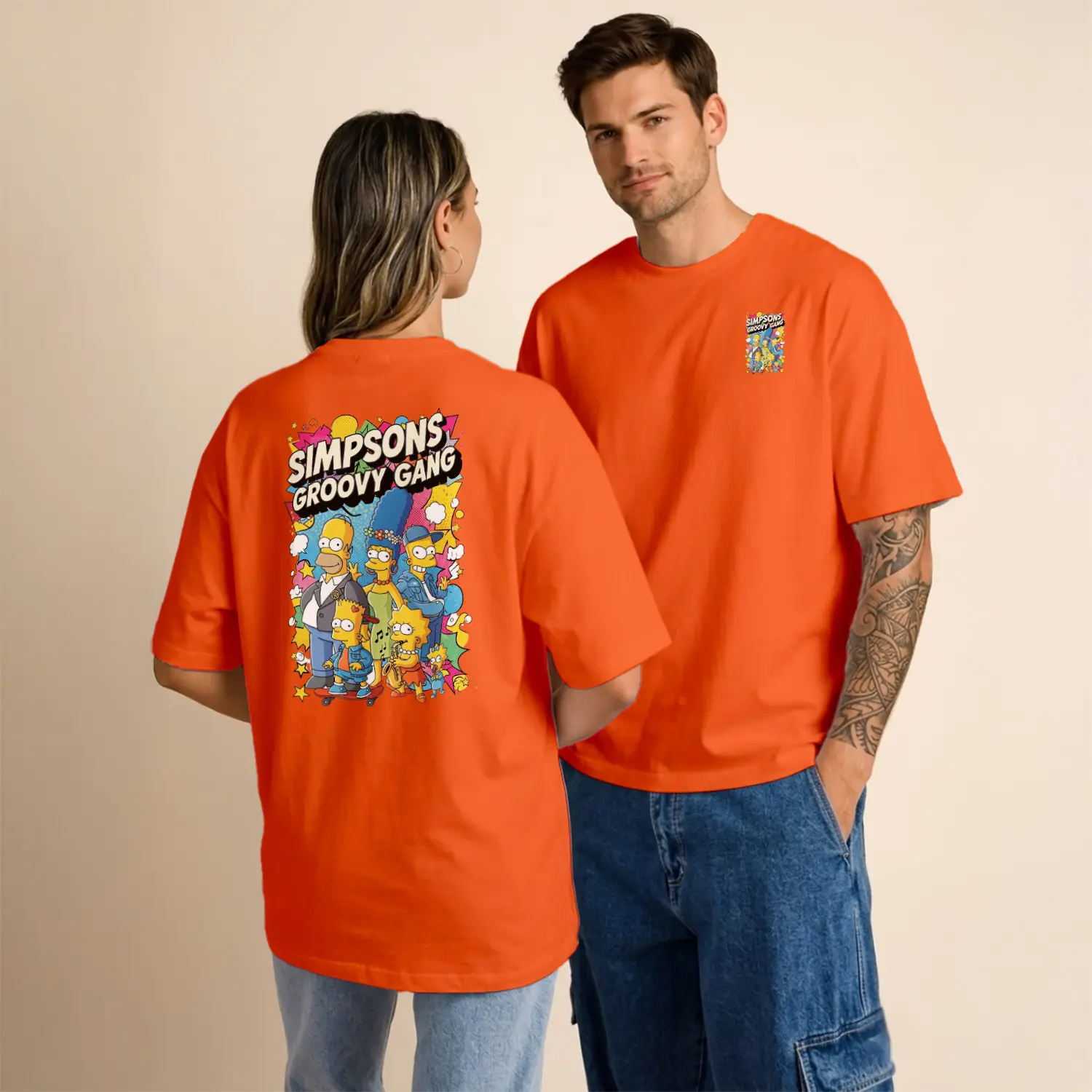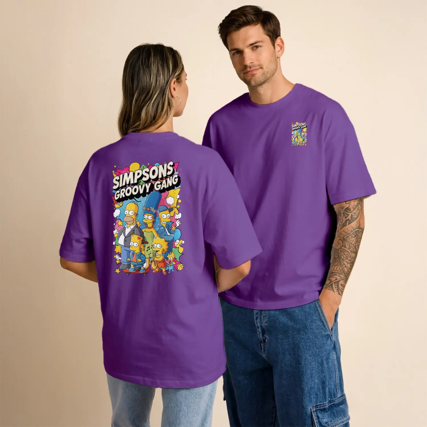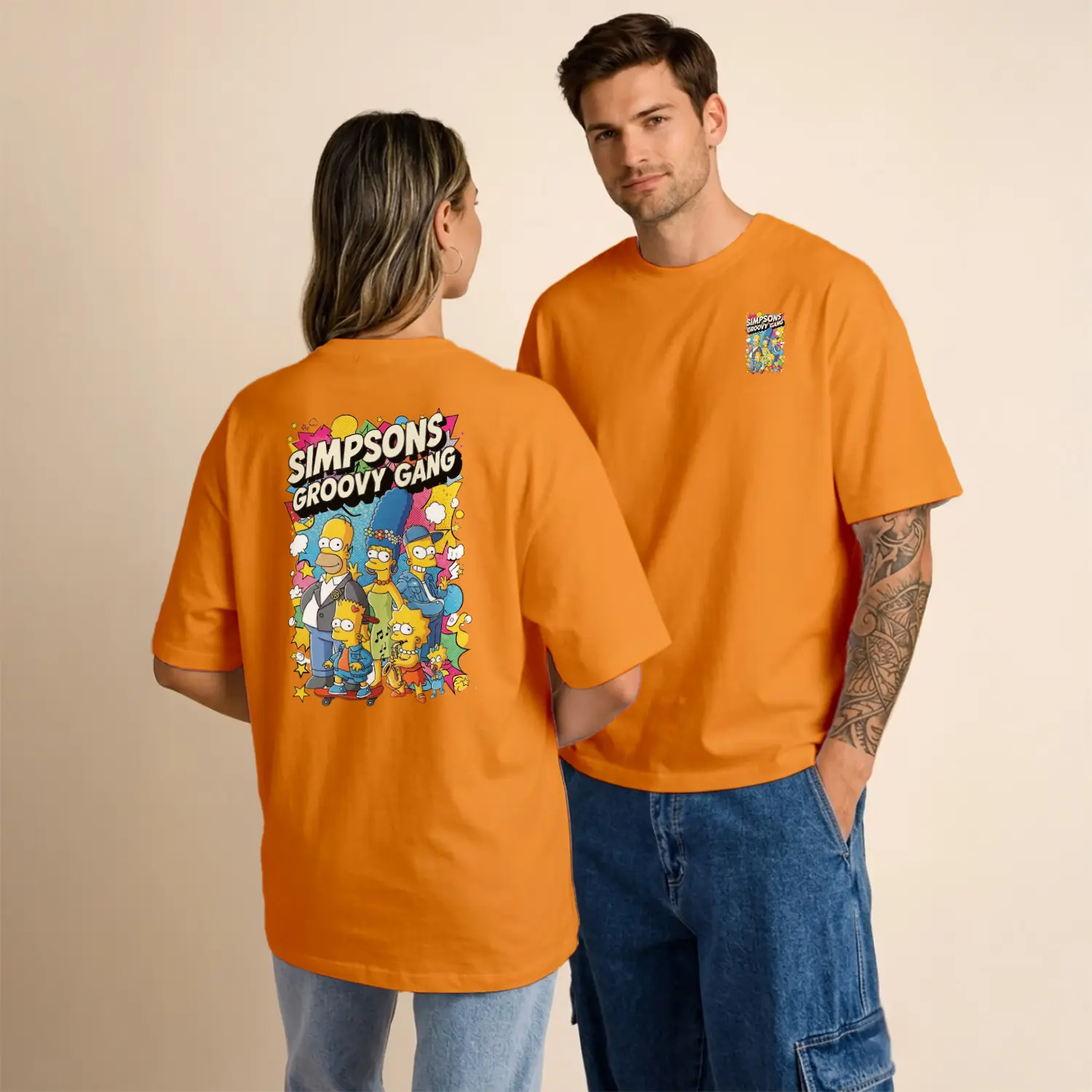 Sarı Çizgi Film Ailesi Groovy Gang Renkli Grup Baskılı Unisex Tişört için 9 değerlendirme