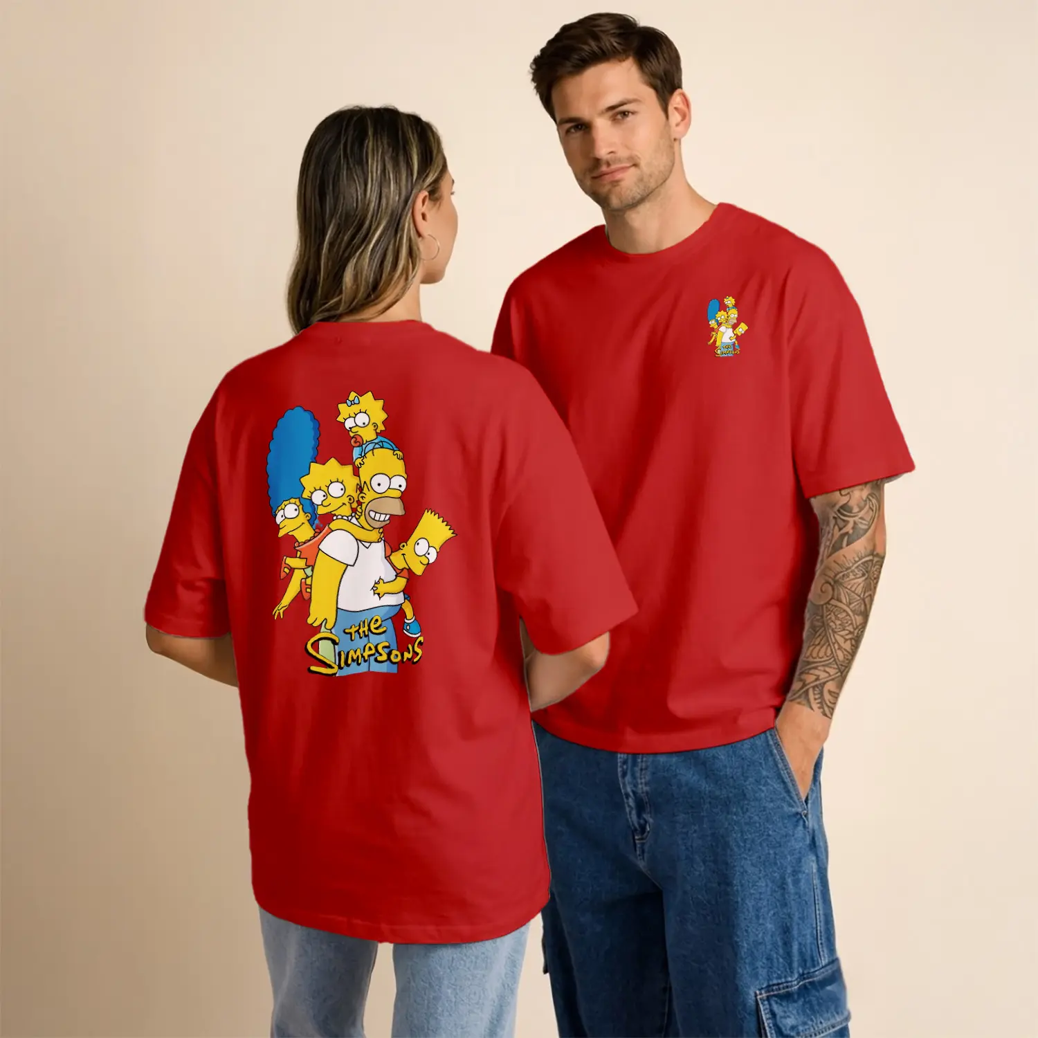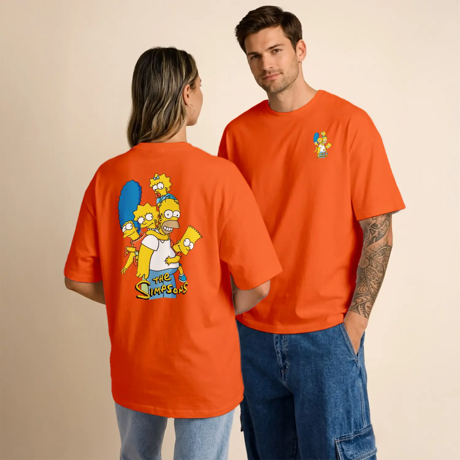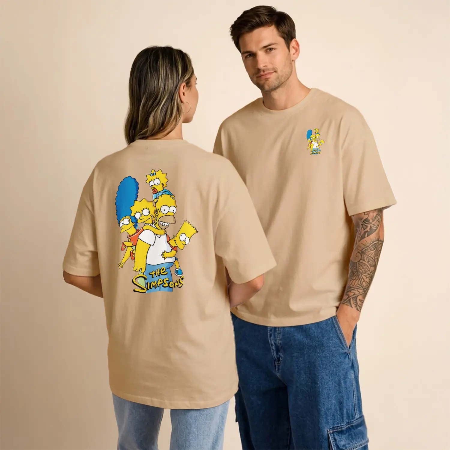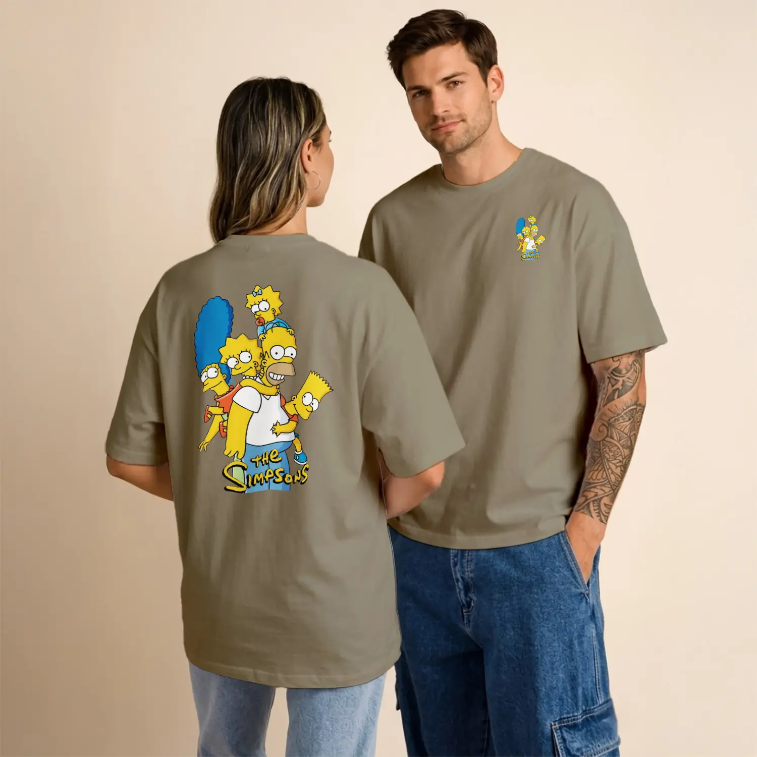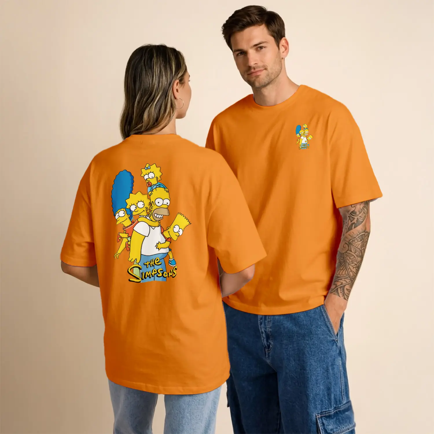 Sarı Çizgi Film Ailesi Grup Figürü Baskılı Unisex Tişört