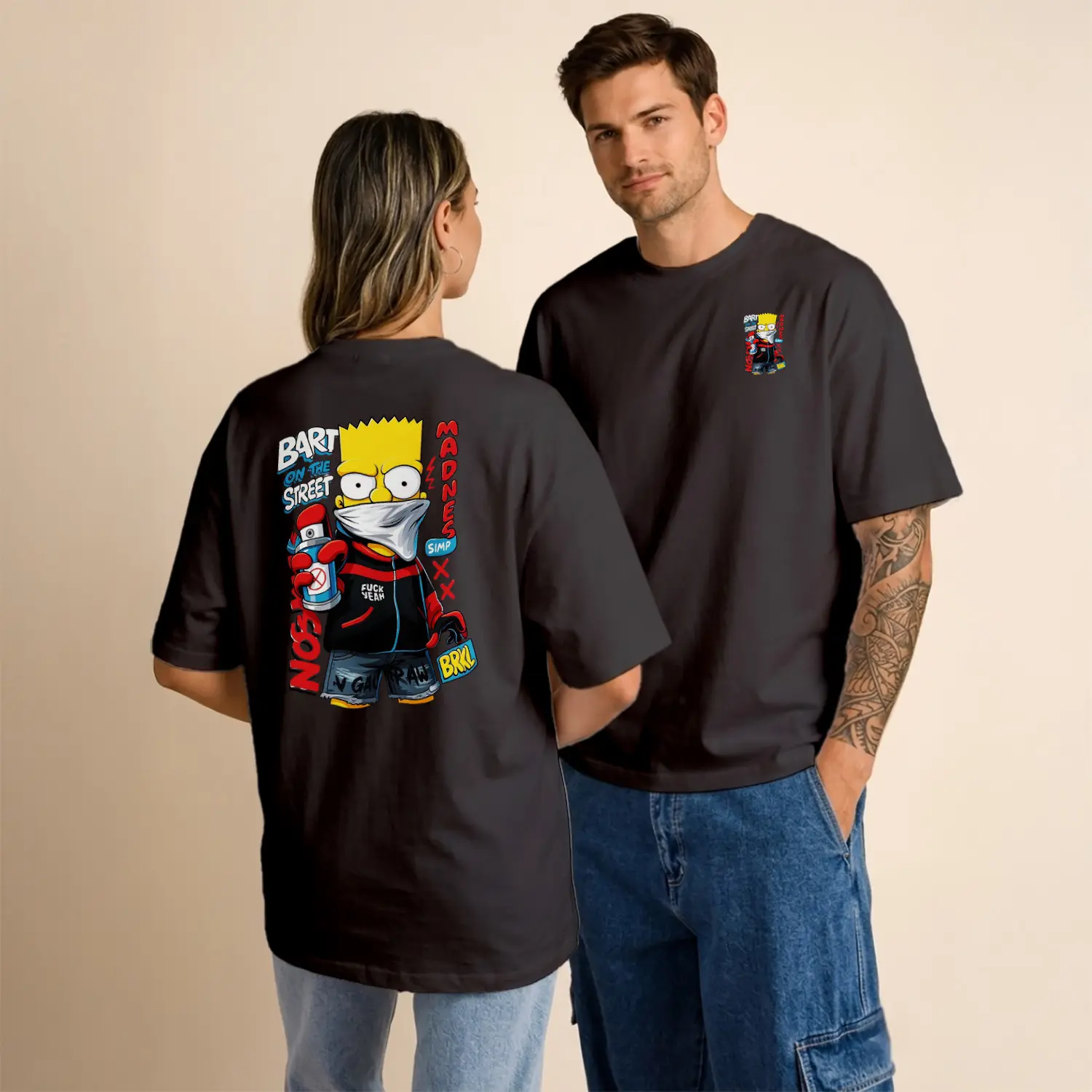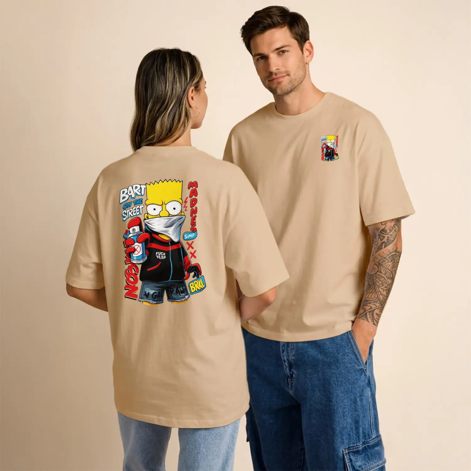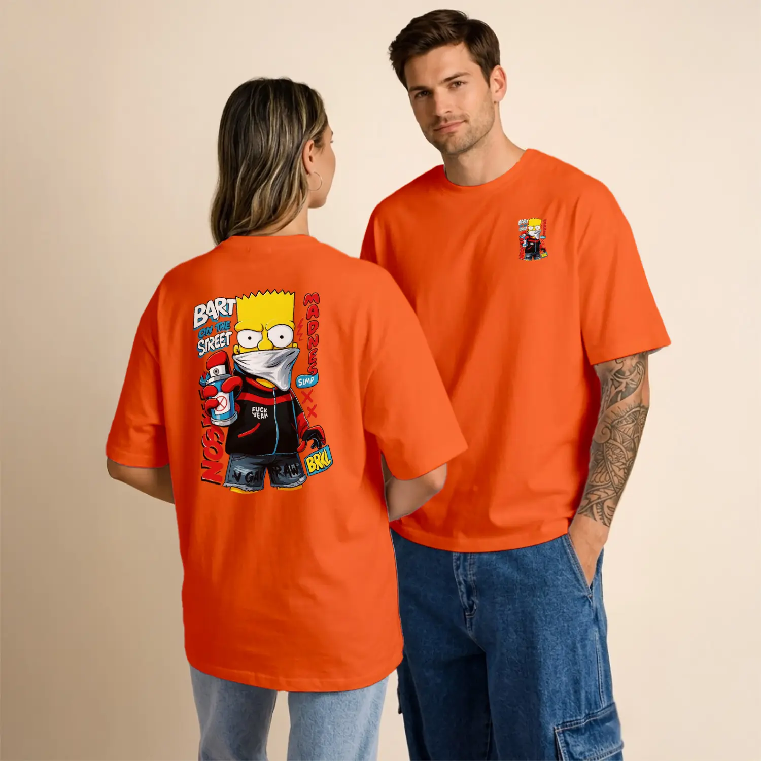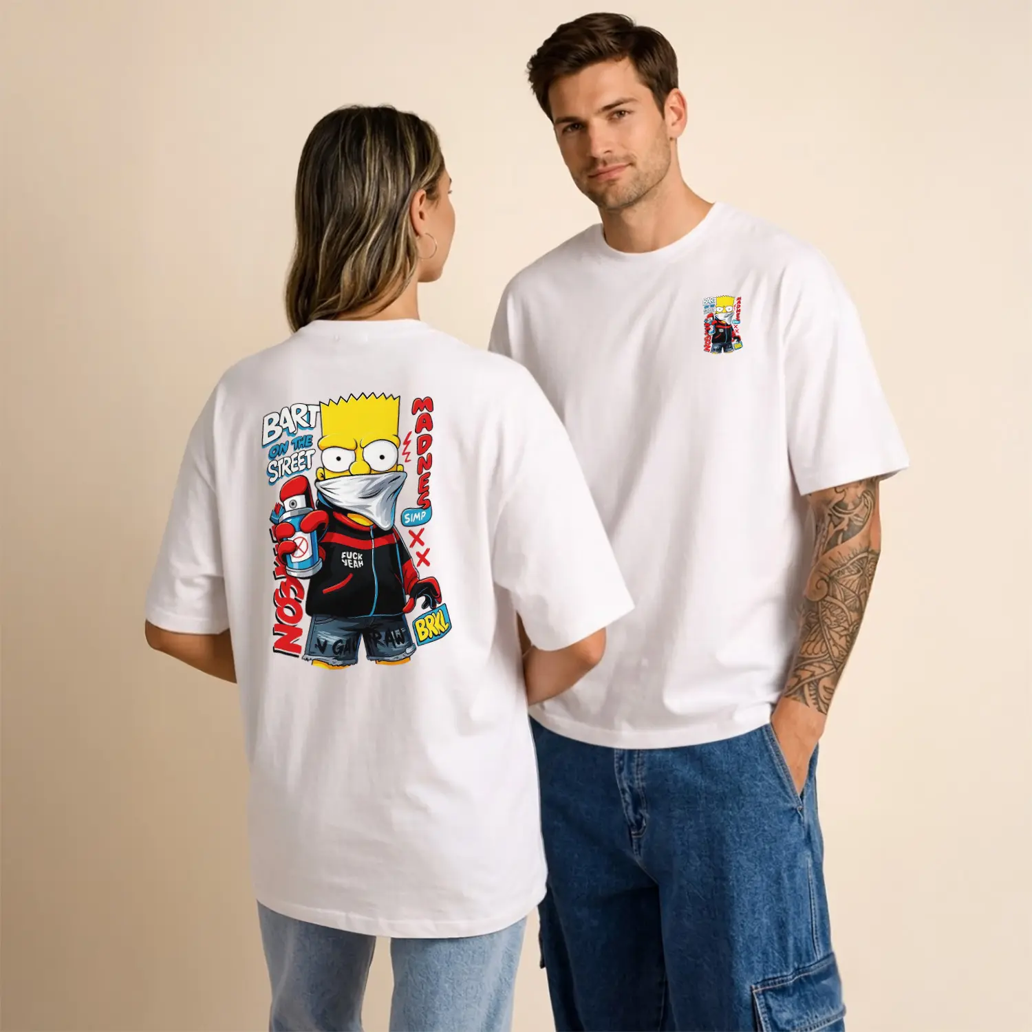 Sarı Çizgi Film Karakteri Sokak Sanatı Graffiti Baskılı Unisex Tişört