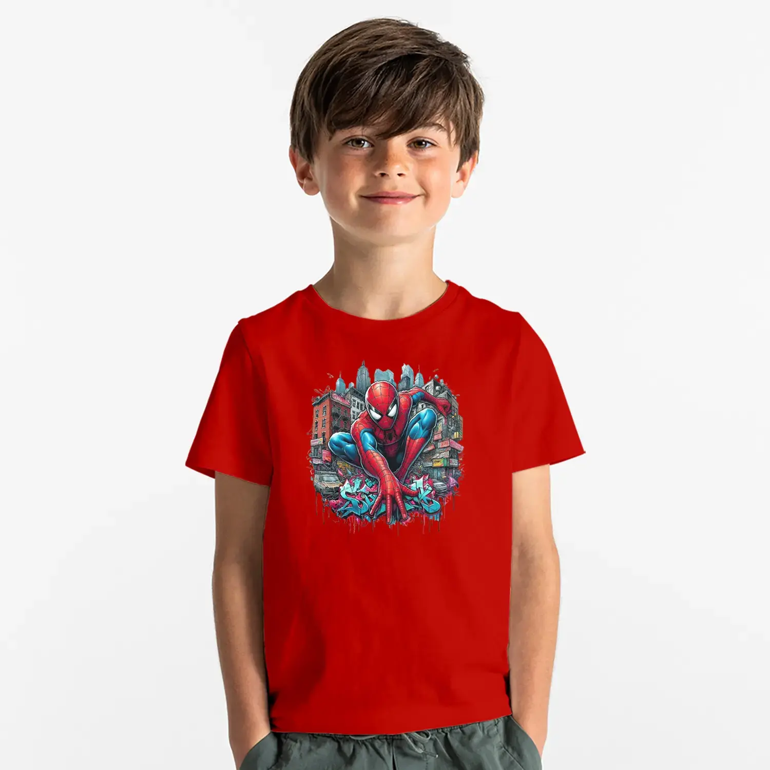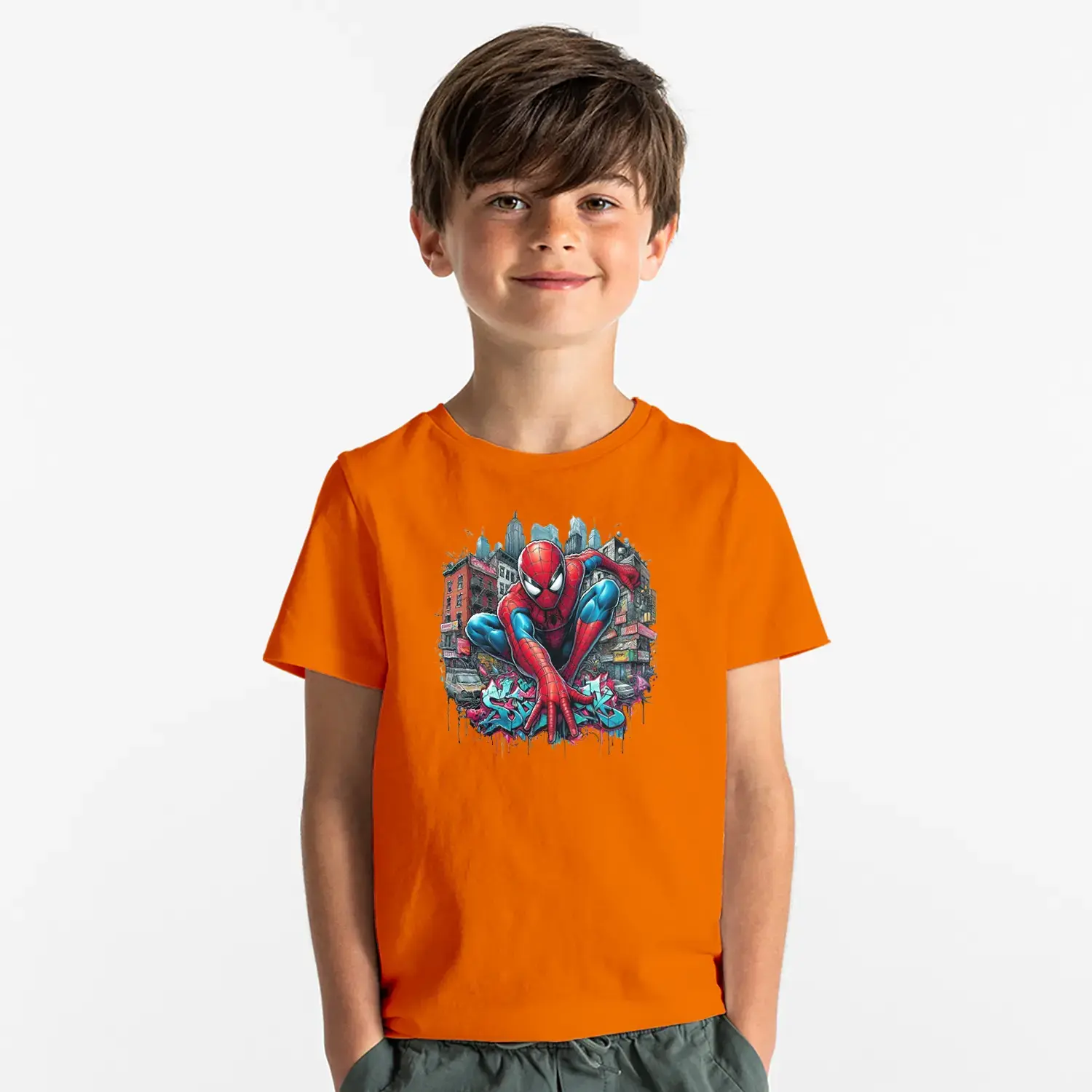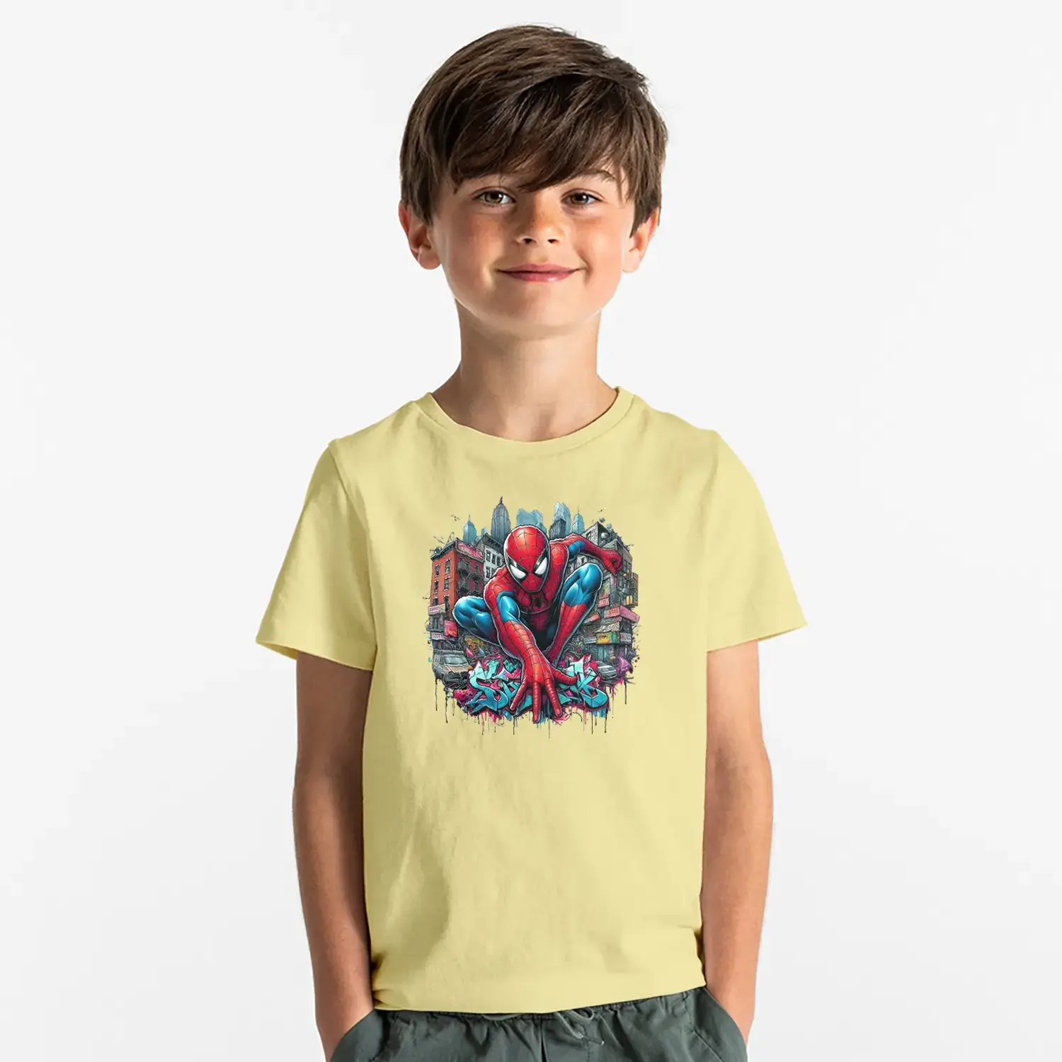 Şehir Temalı Ağ Atan Süper Kahraman Baskılı Erkek Çocuk Tişört için 9 değerlendirme