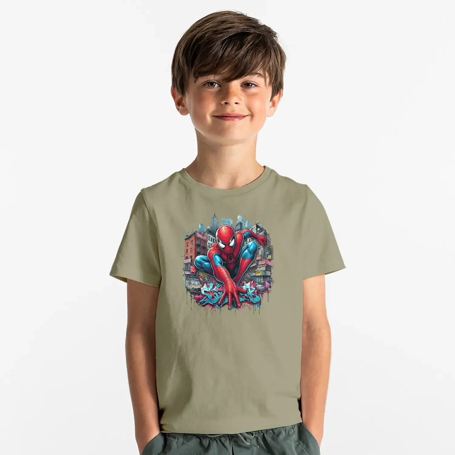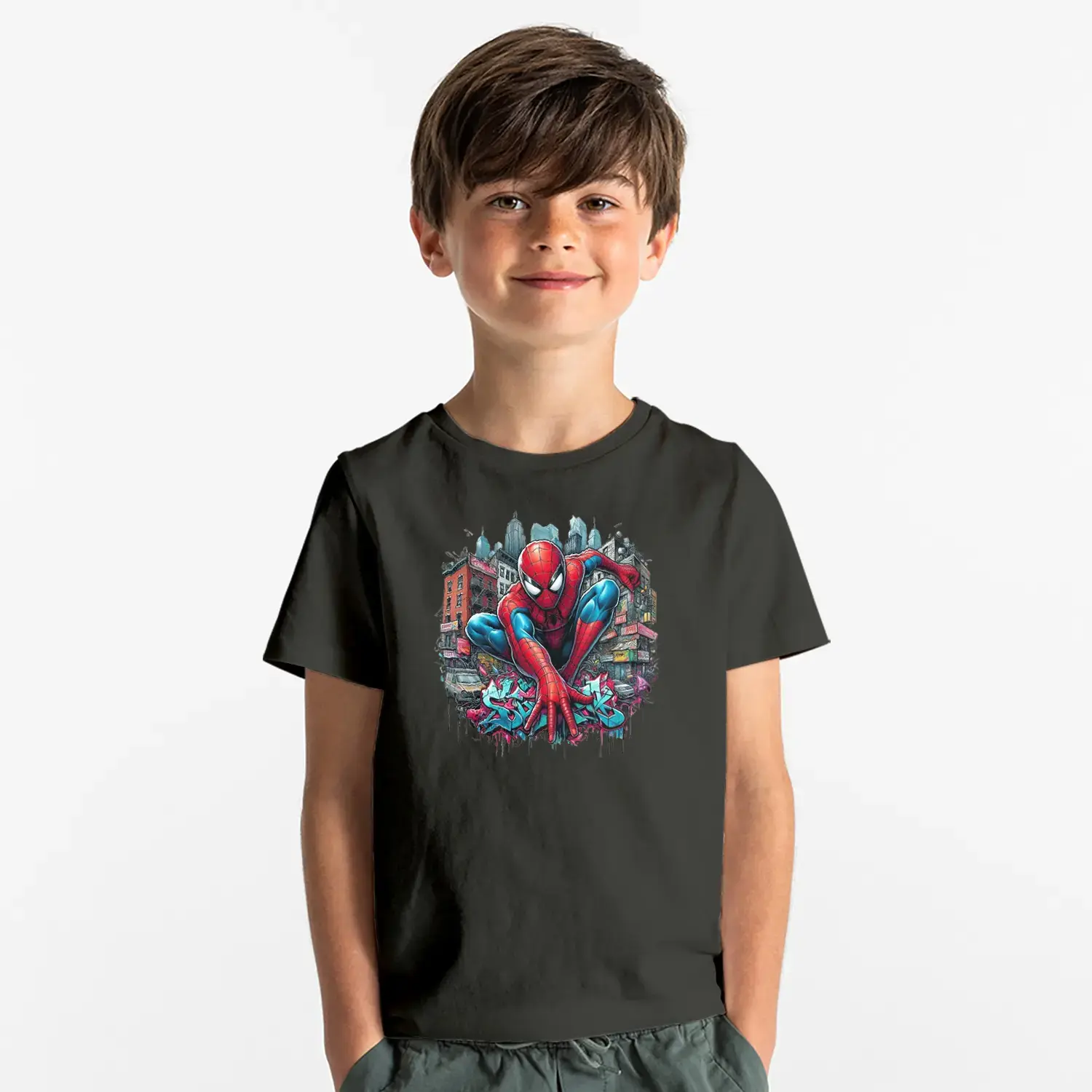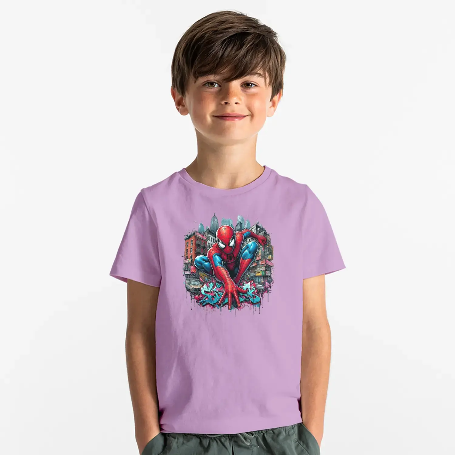 Şehir Temalı Ağ Atan Süper Kahraman Baskılı Erkek Çocuk Tişört için 9 değerlendirme