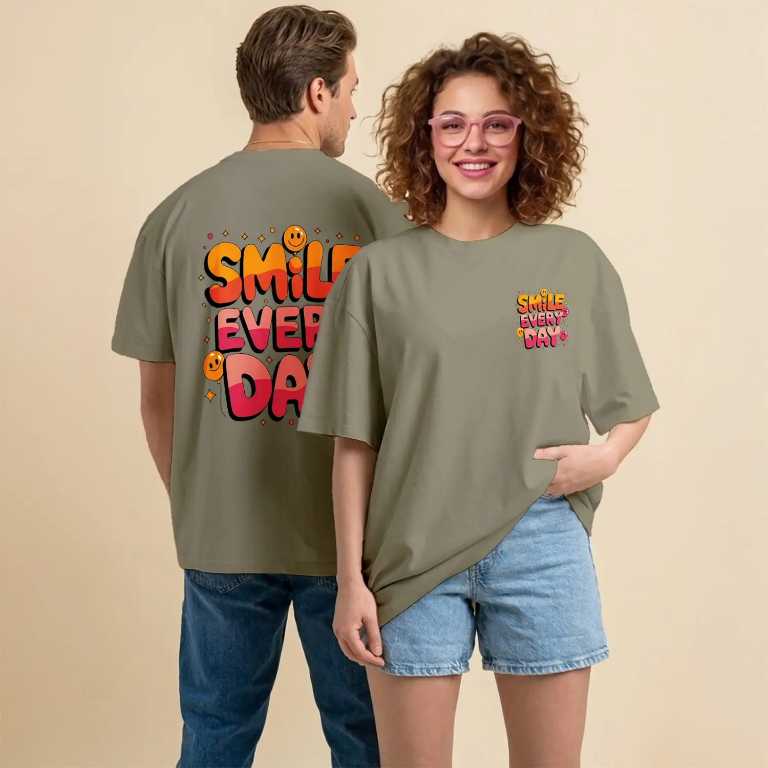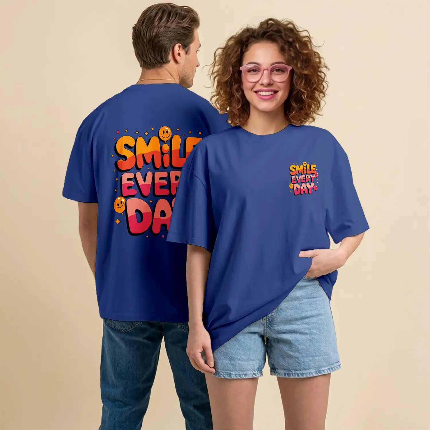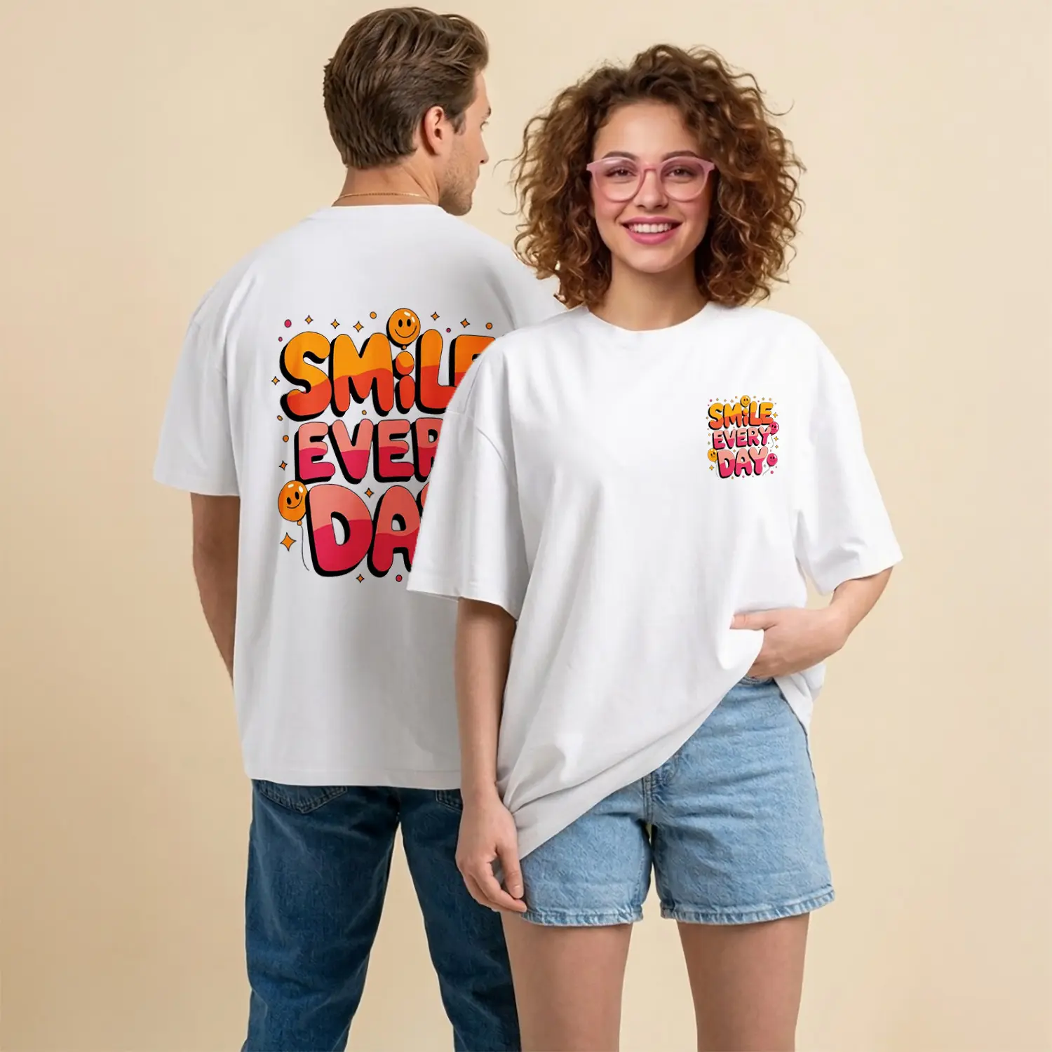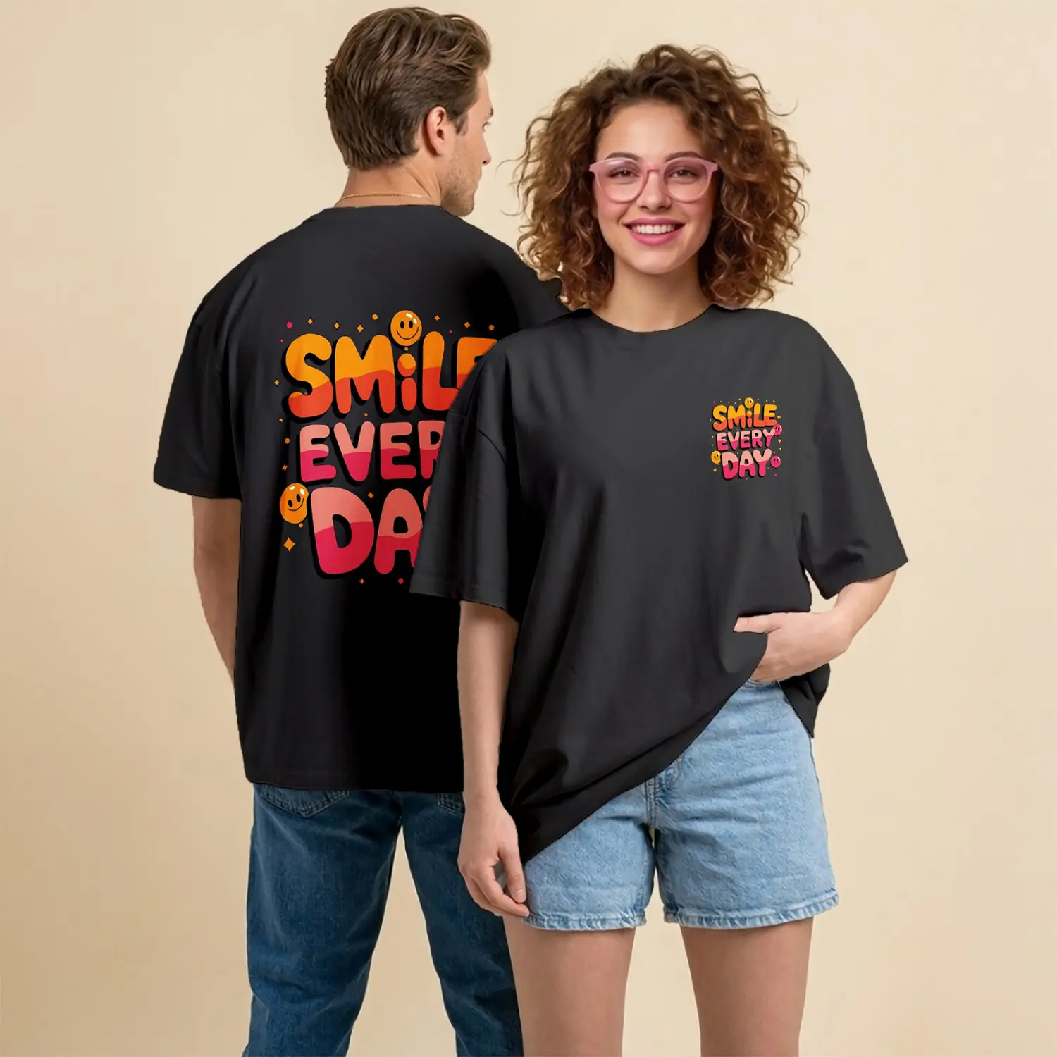Smile Everyday Smiley Renkli Yazı Baskılı Unisex Tişört