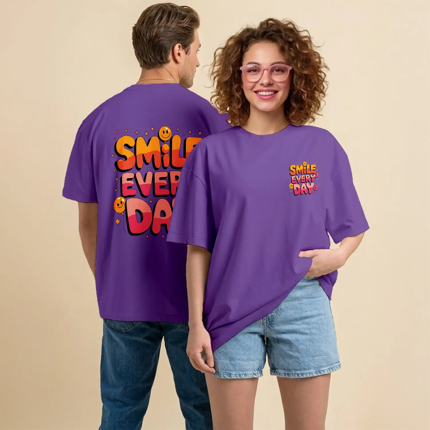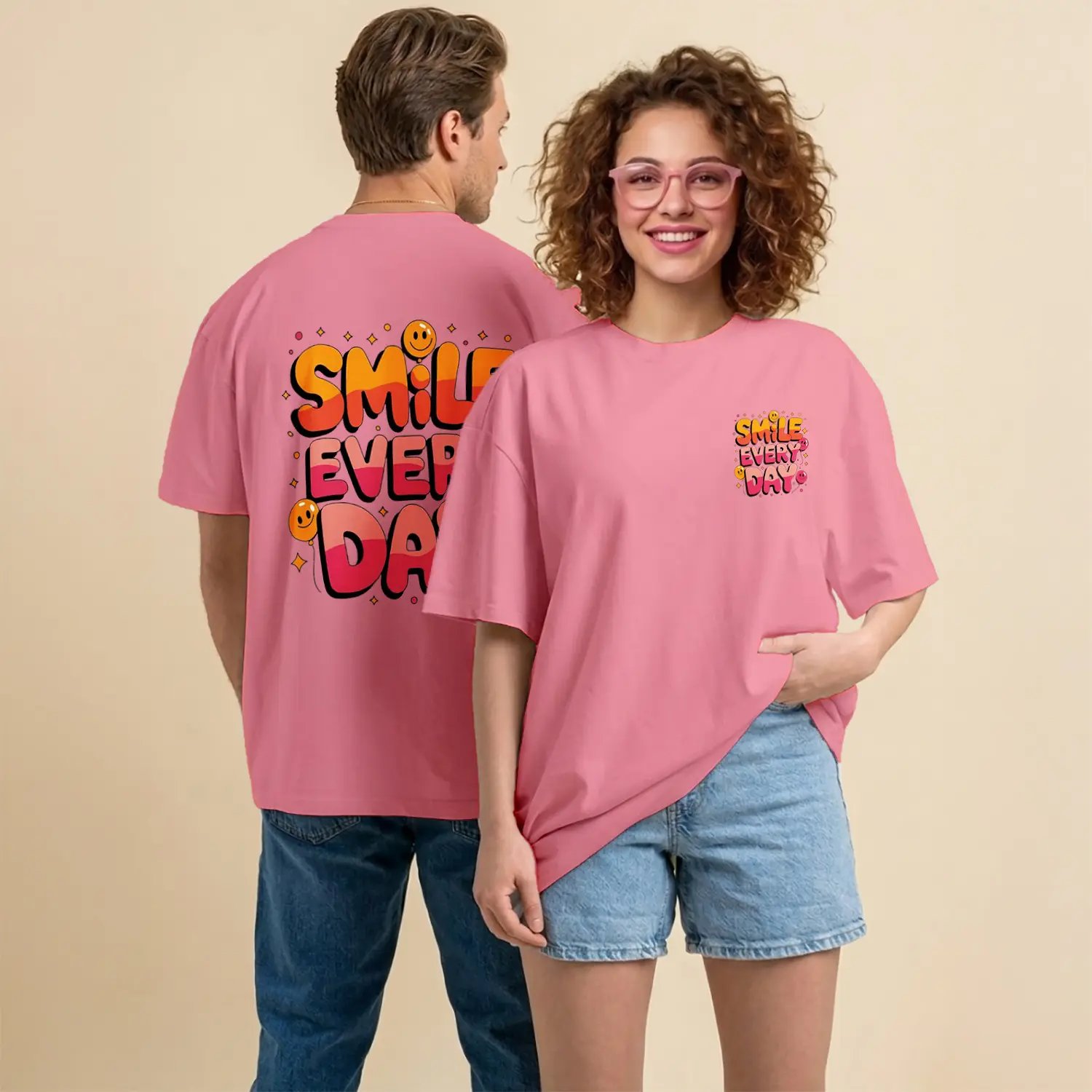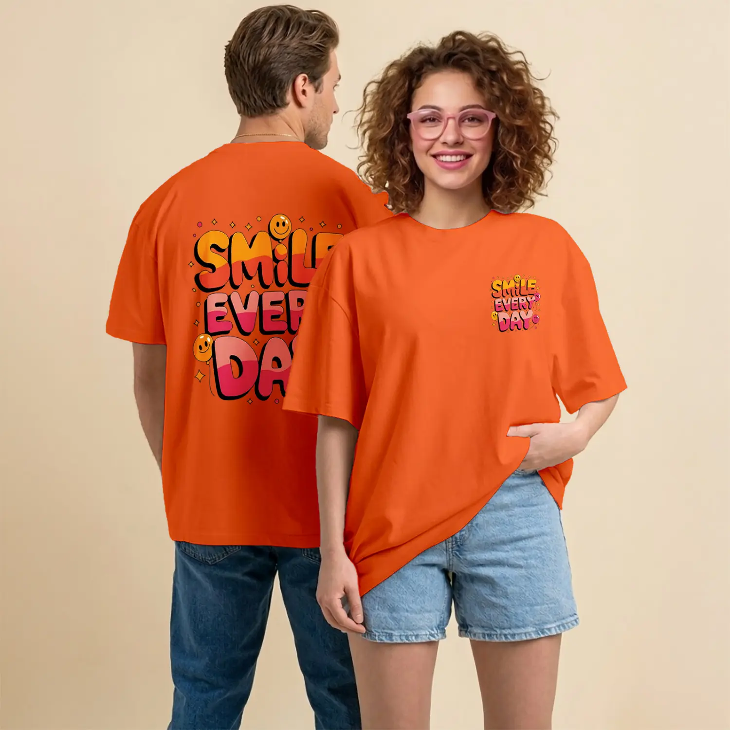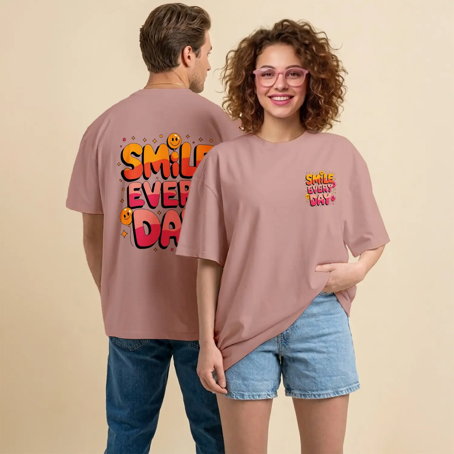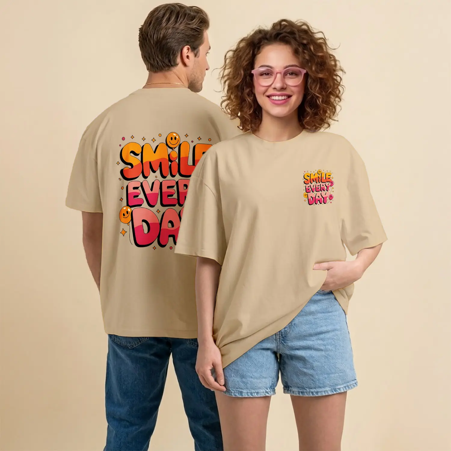 Smile Everyday Smiley Renkli Yazı Baskılı Unisex Tişört
