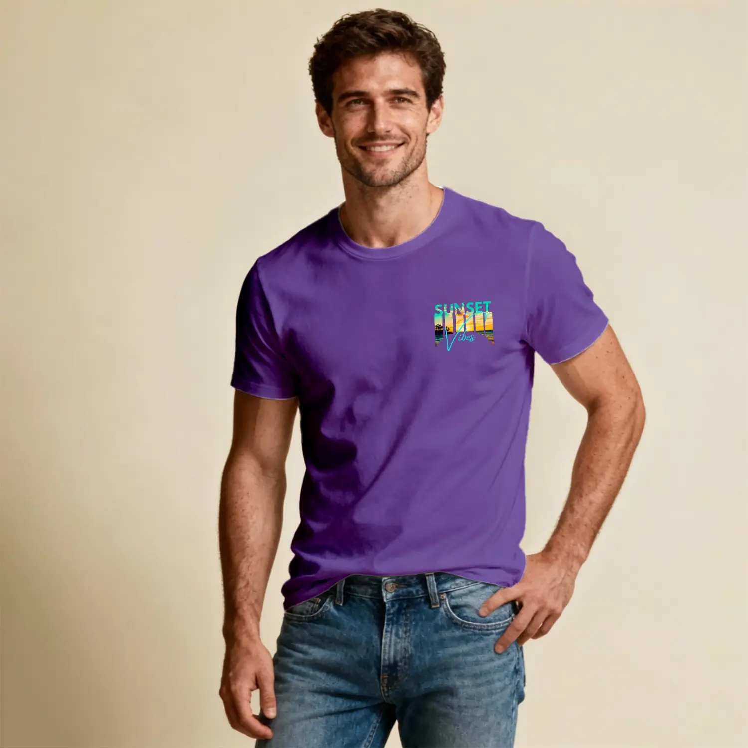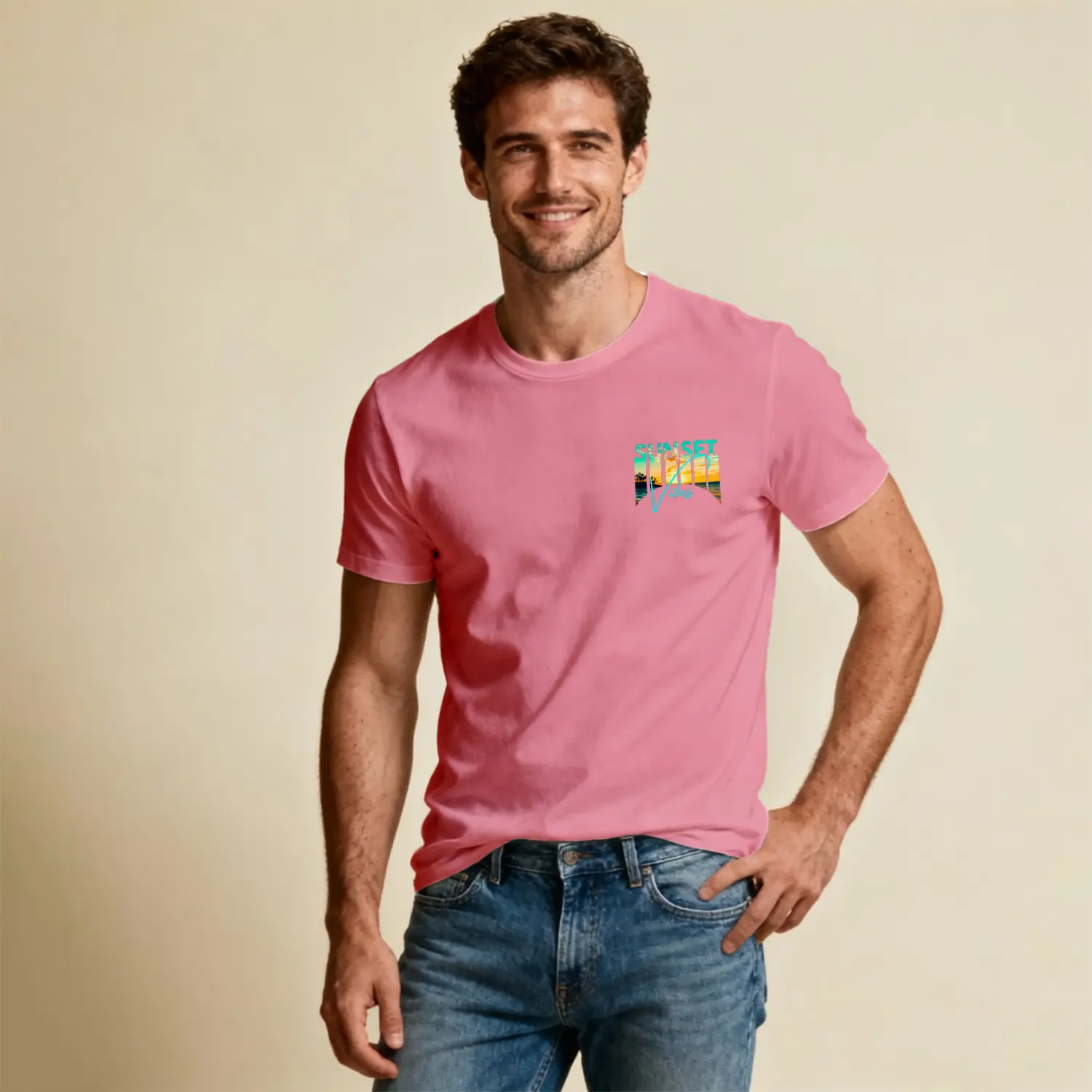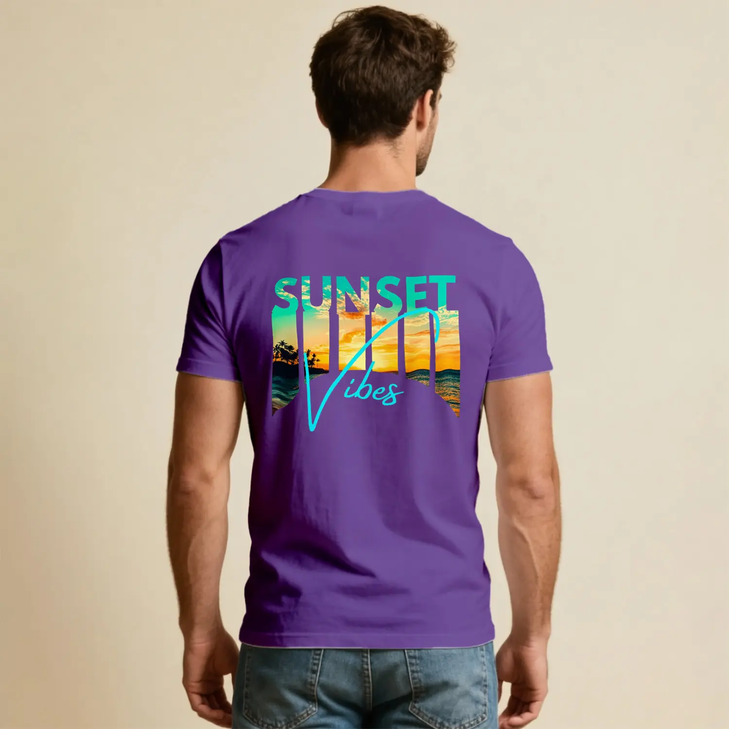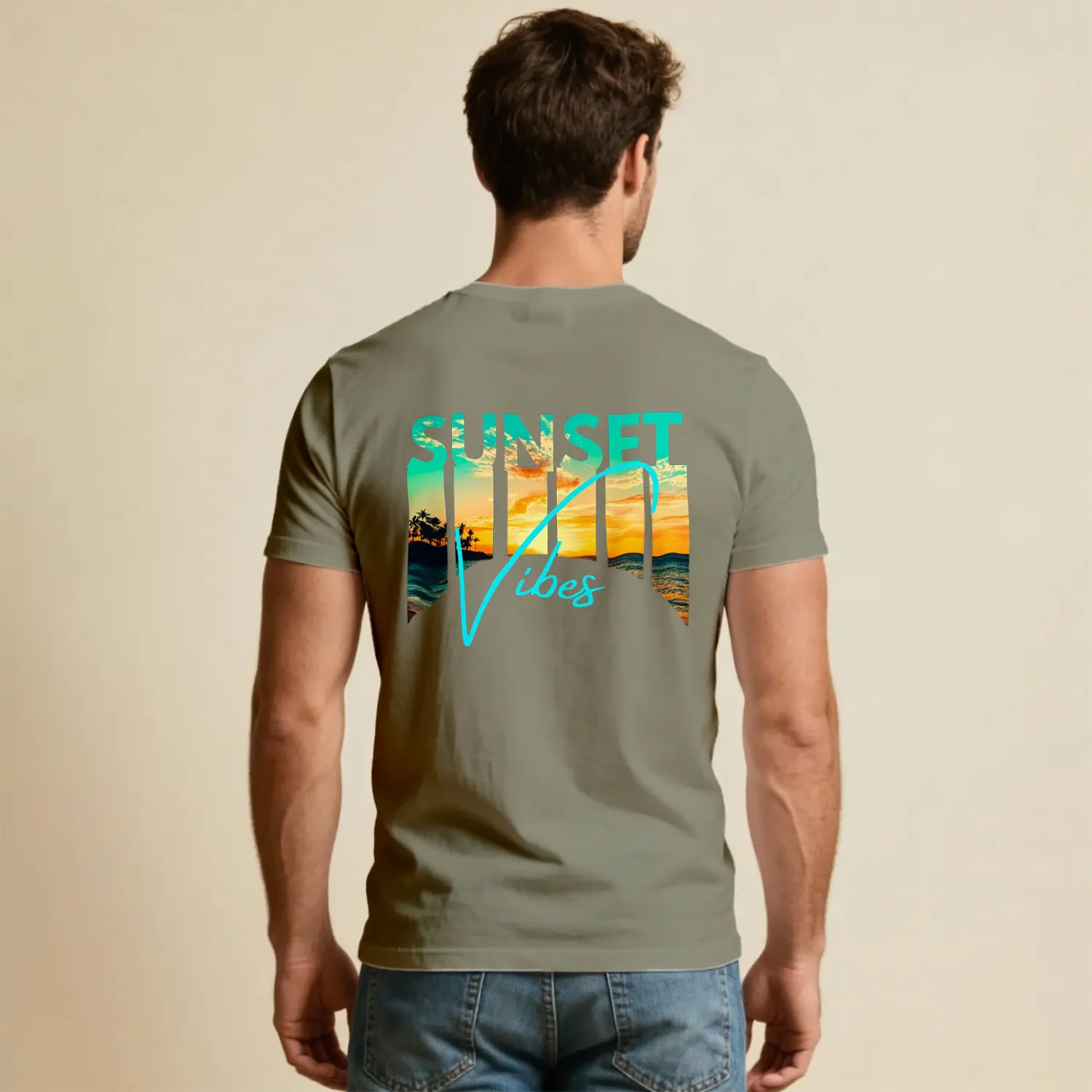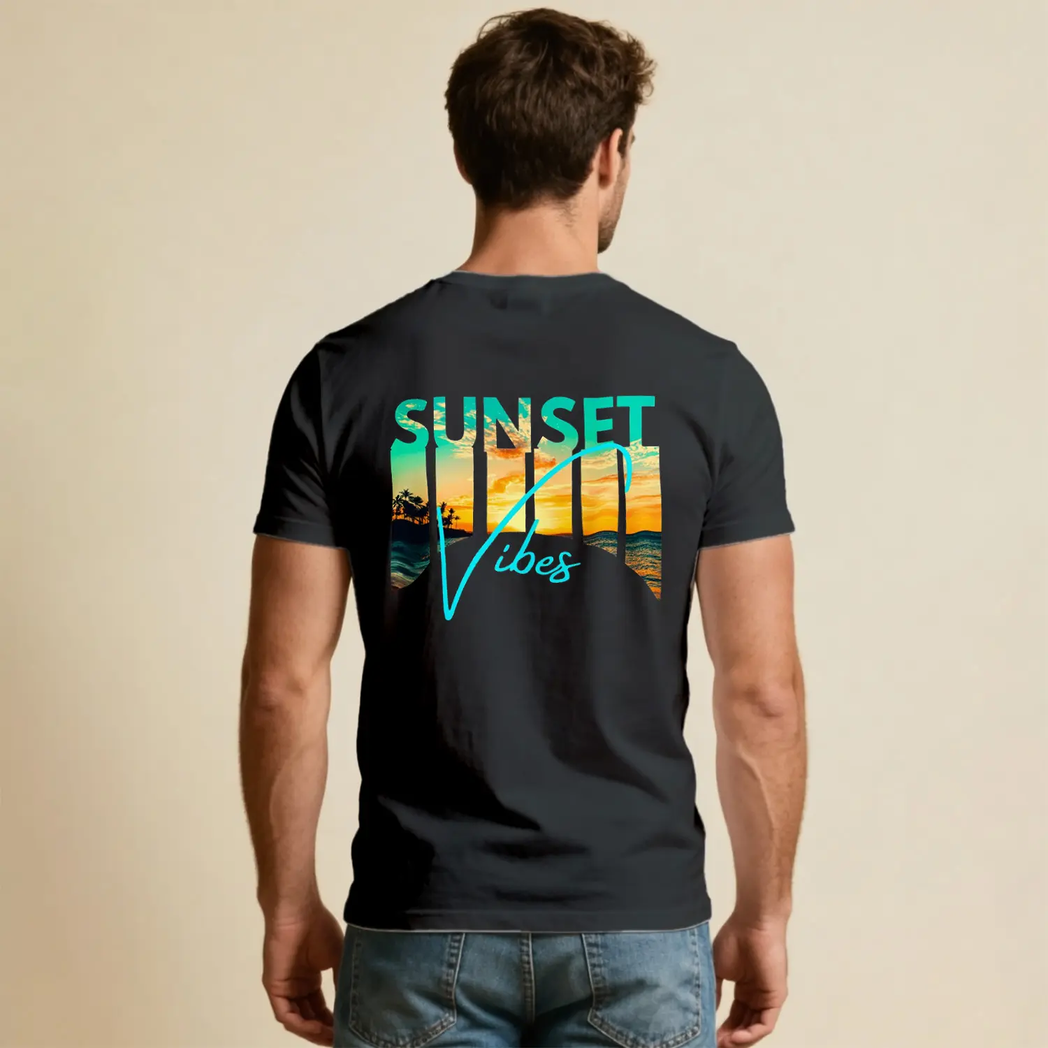 Sunset Vibes Tropikal Gün Batımı Baskılı Erkek Tişört için 10 değerlendirme