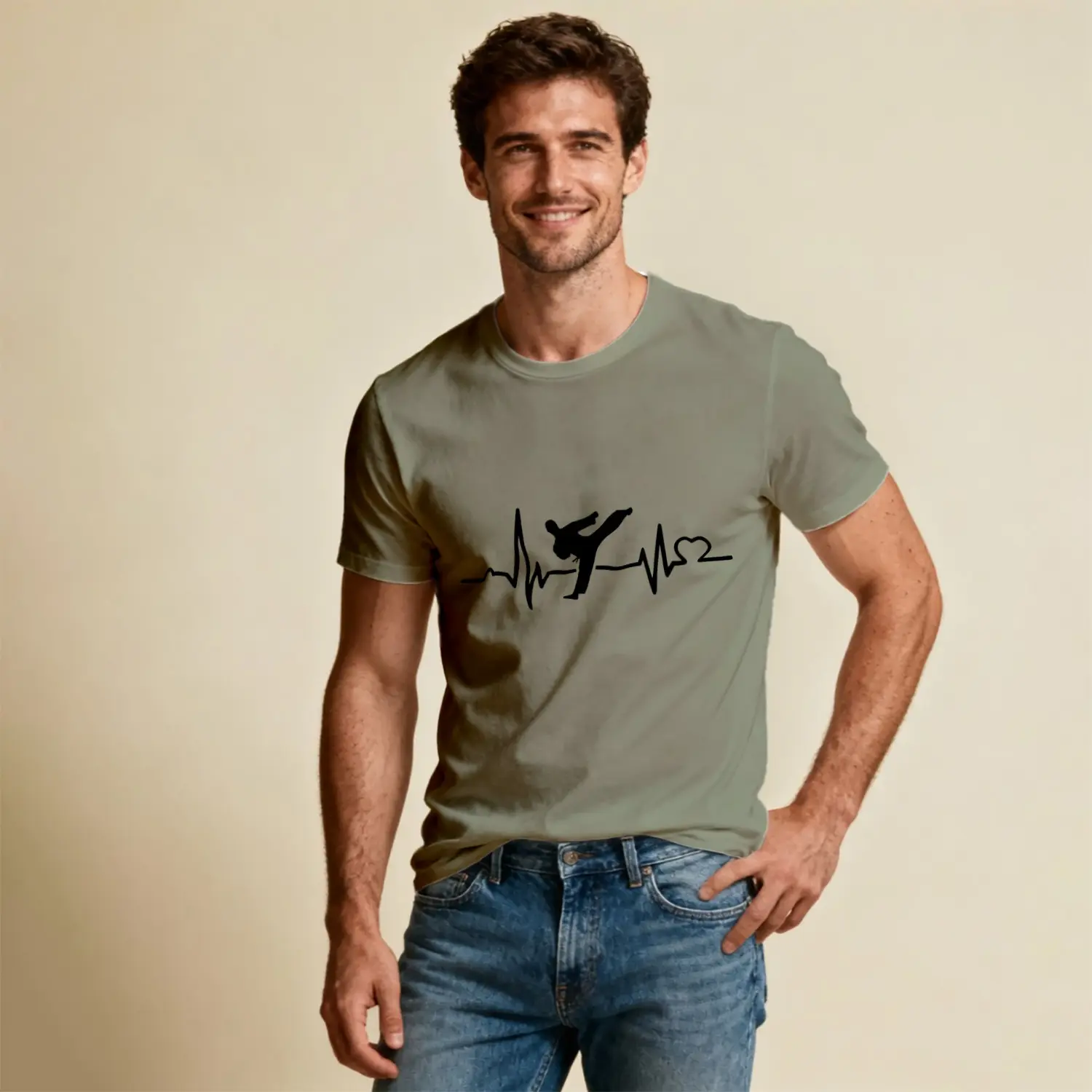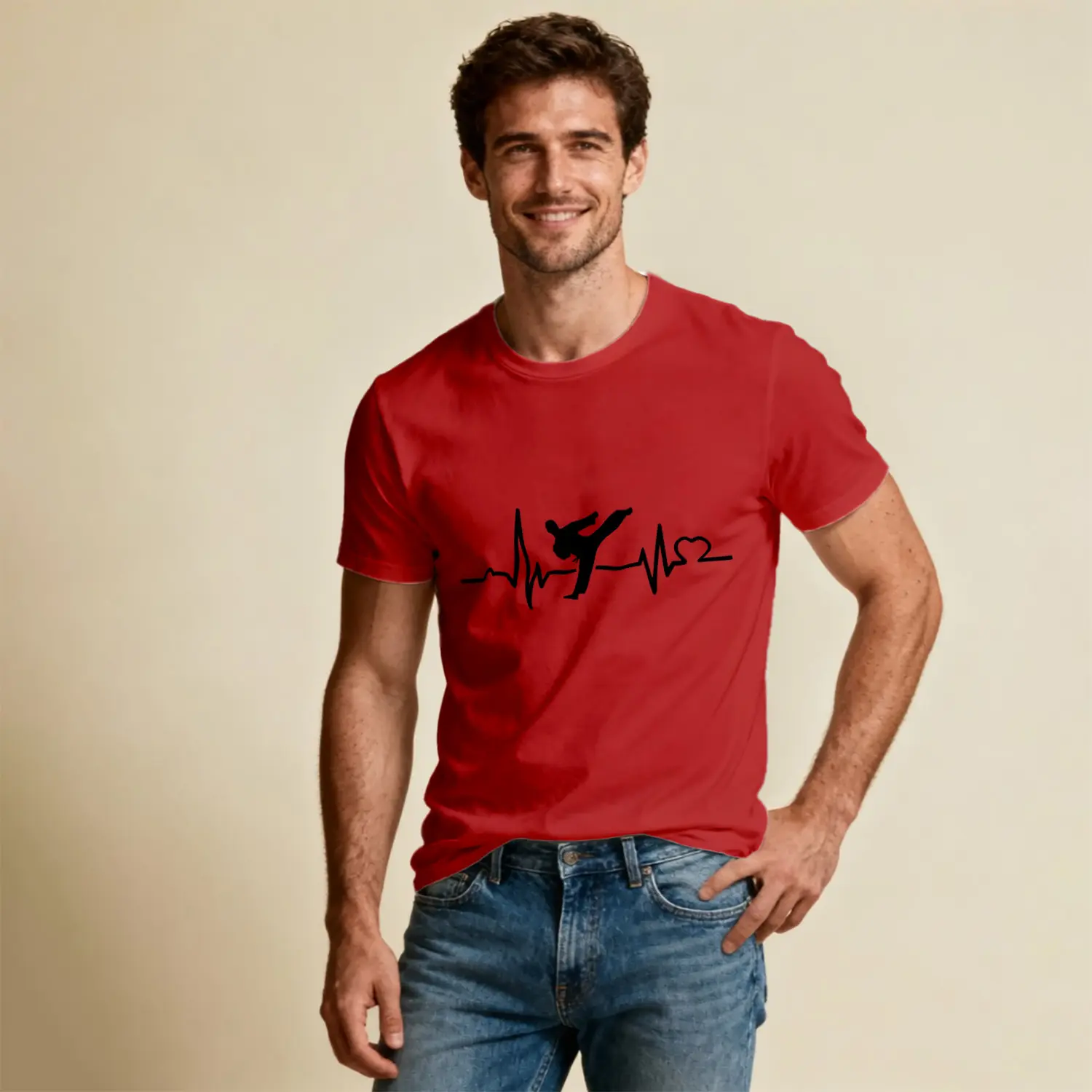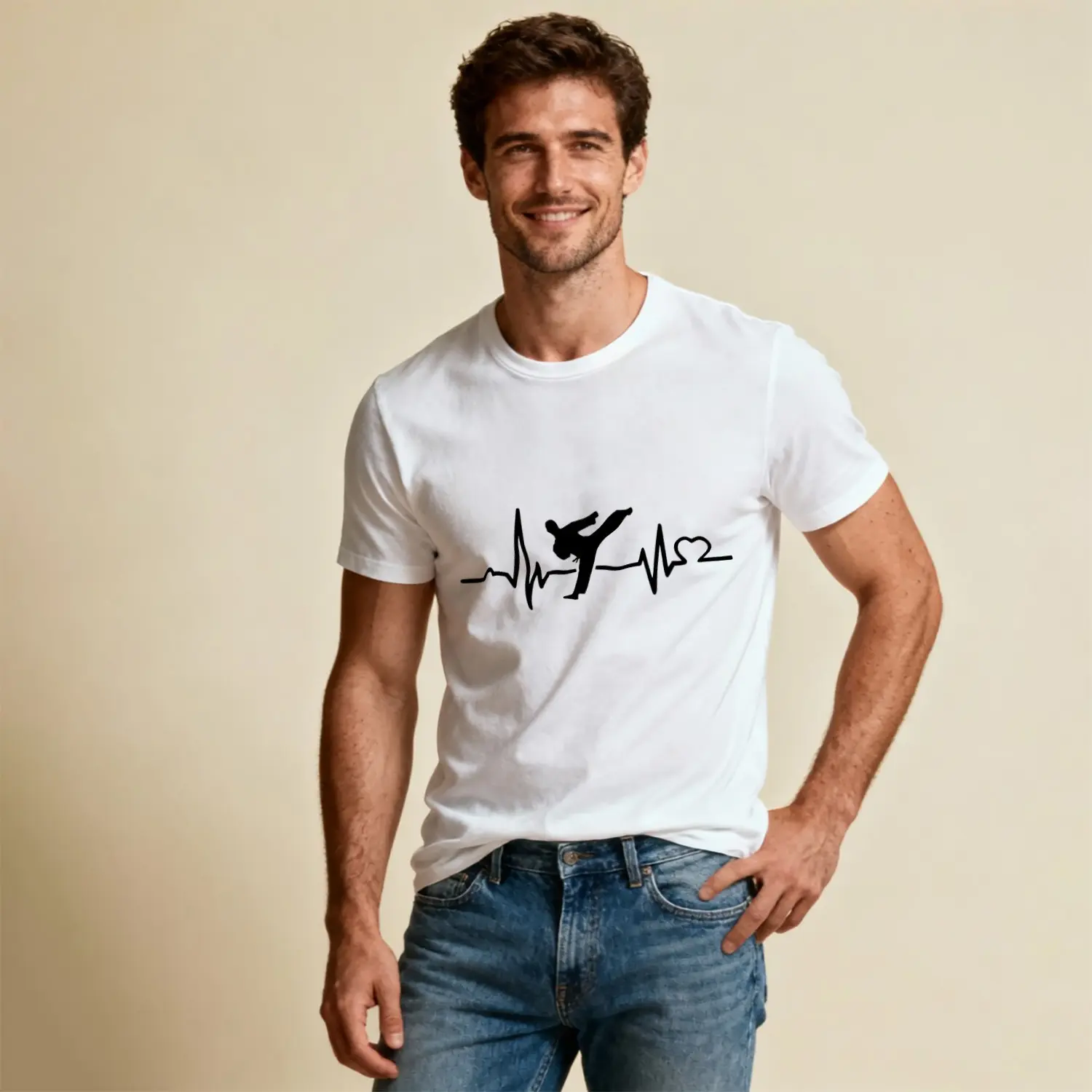 Tekvando Kalp Atışı Baskılı Erkek Tişört