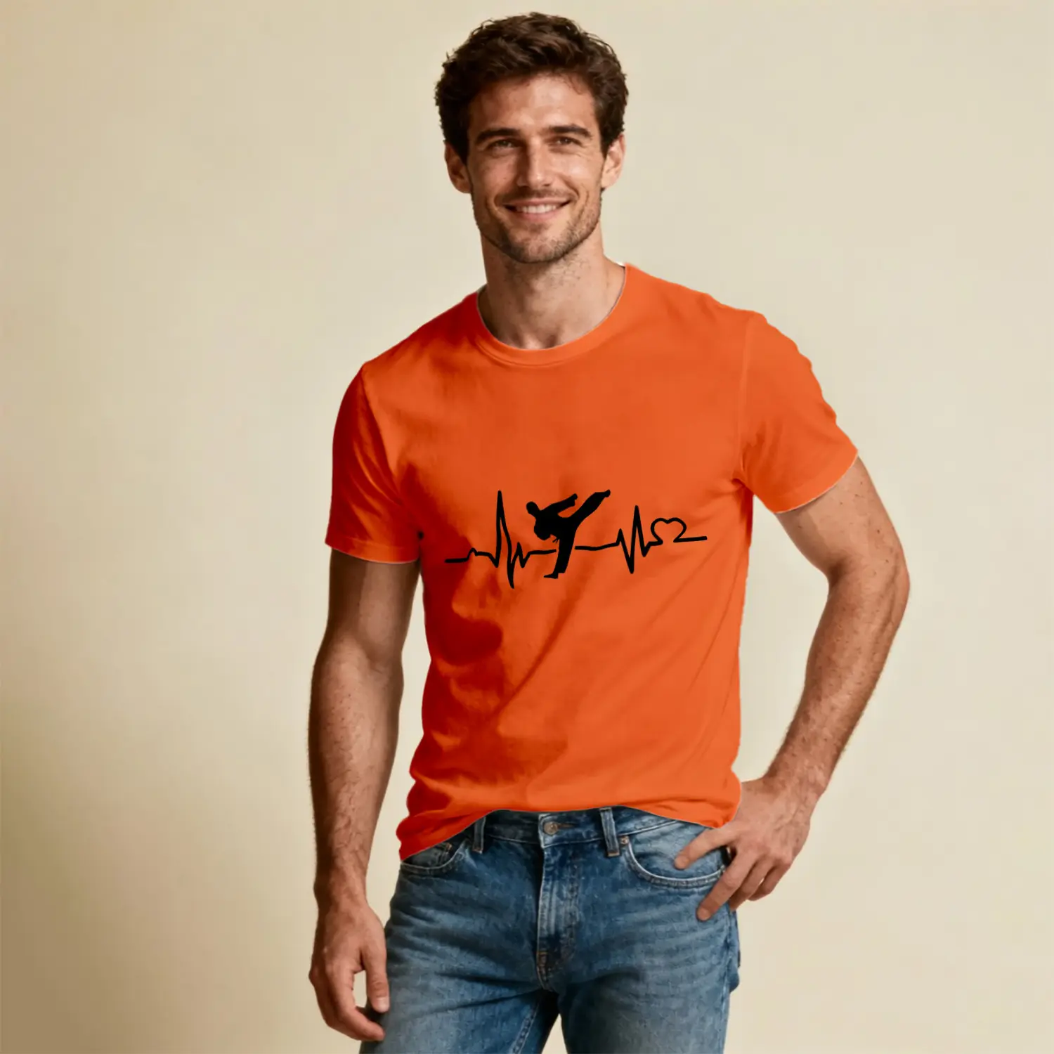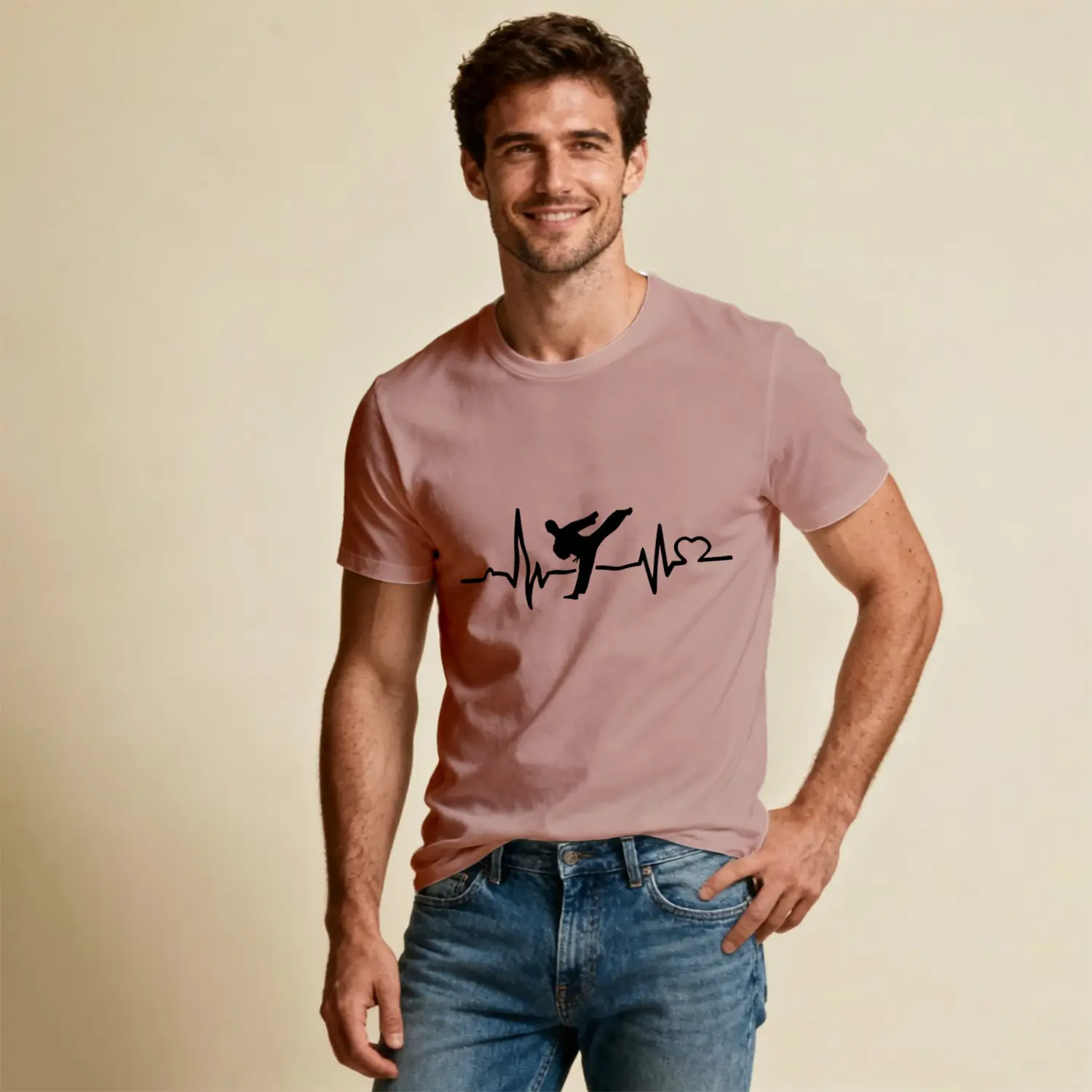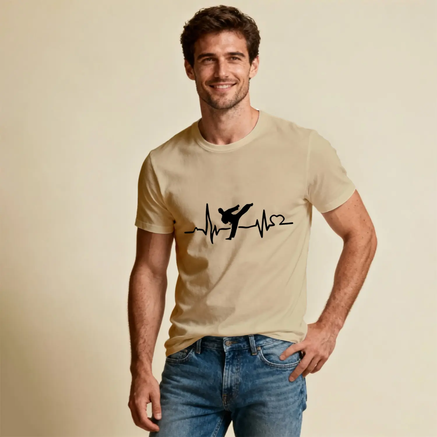 Tekvando Kalp Atışı Baskılı Erkek Tişört
