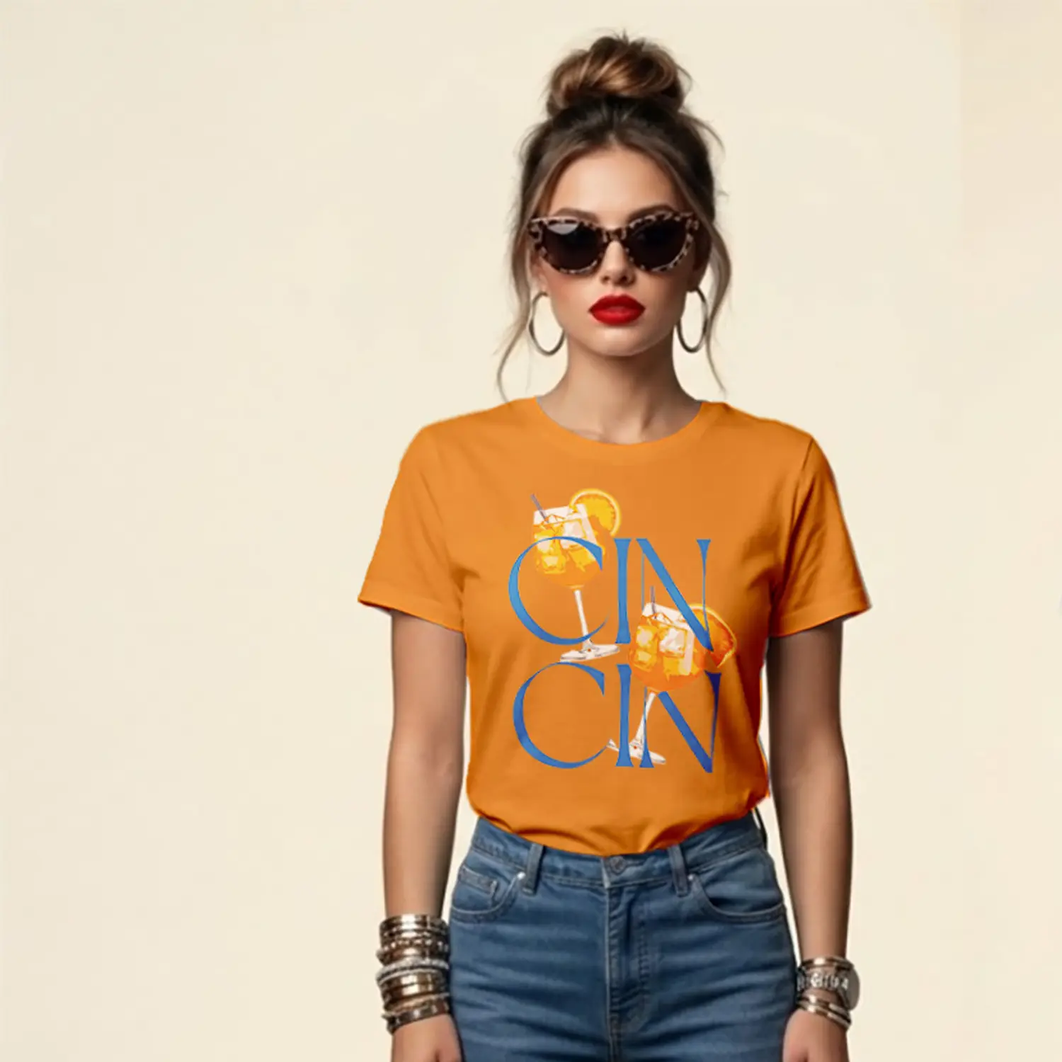 Turuncu İçecek Baskılı Kadın Tişört