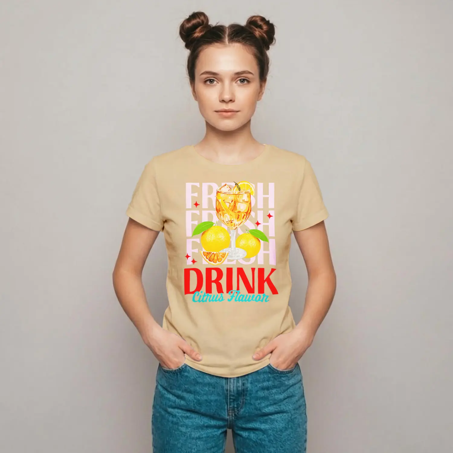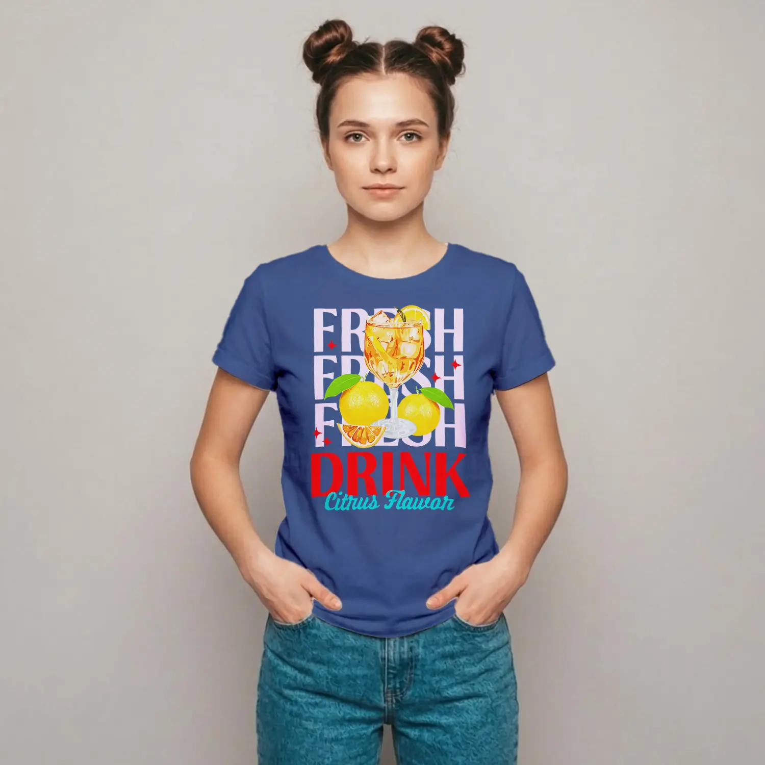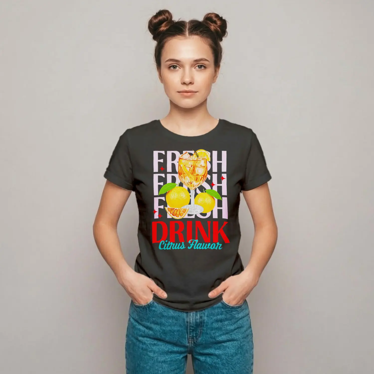 Yaz Meyvesi ve Limonata Baskılı Kadın Tişört