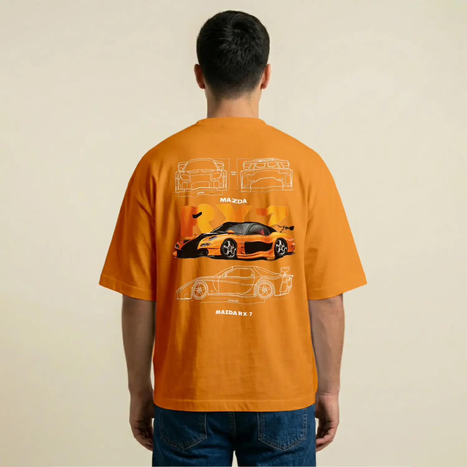 Turuncu Hızlı Araba Baskılı Erkek Tişört