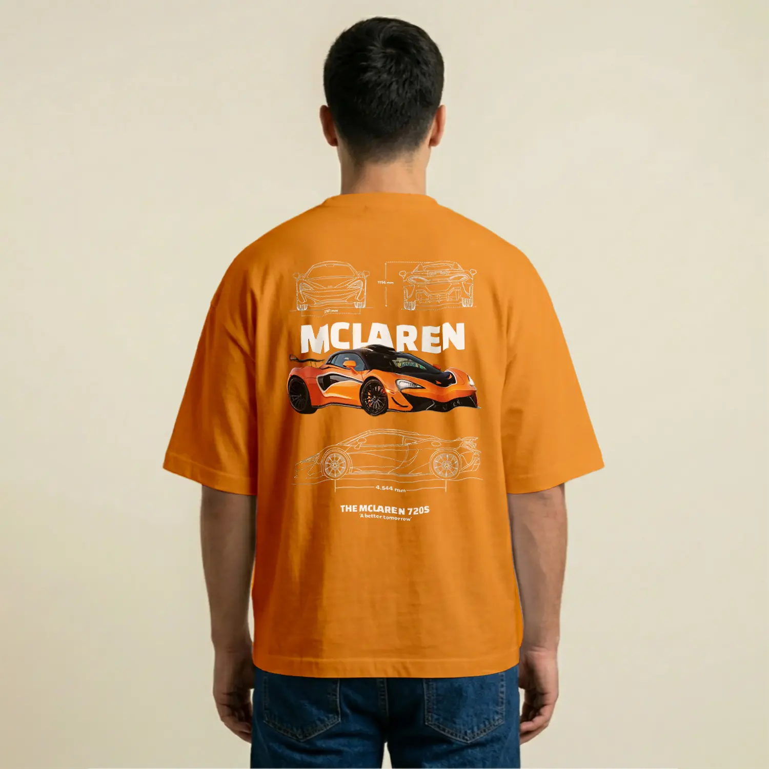 Turuncu Spor Araba Grafik Baskılı Erkek Tişörtü