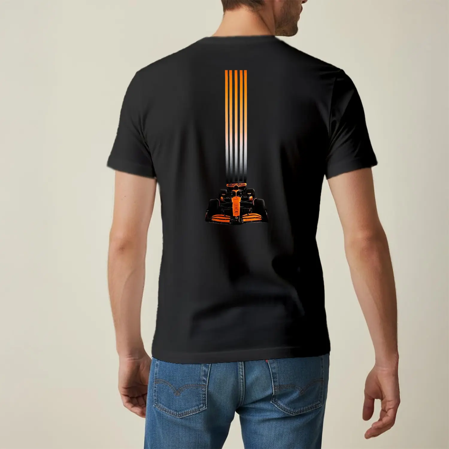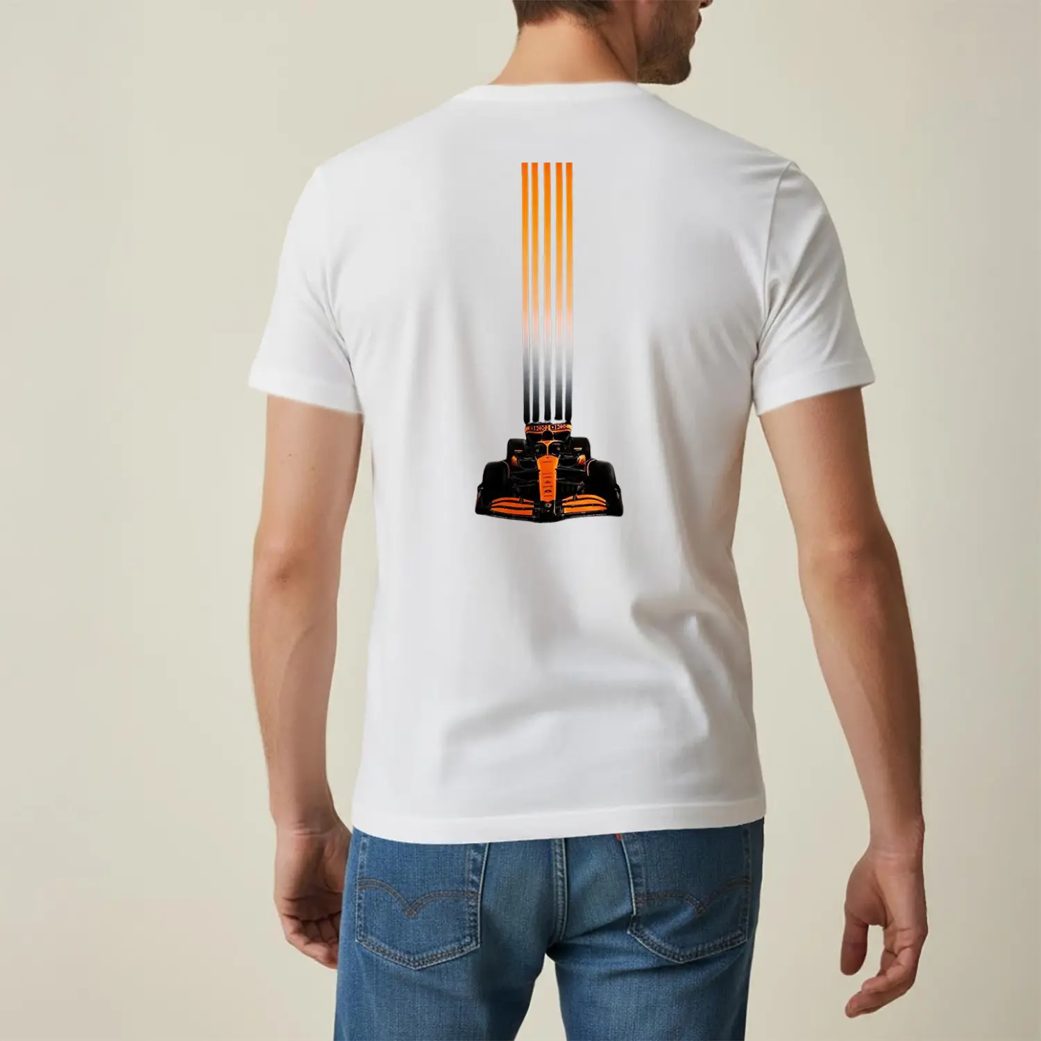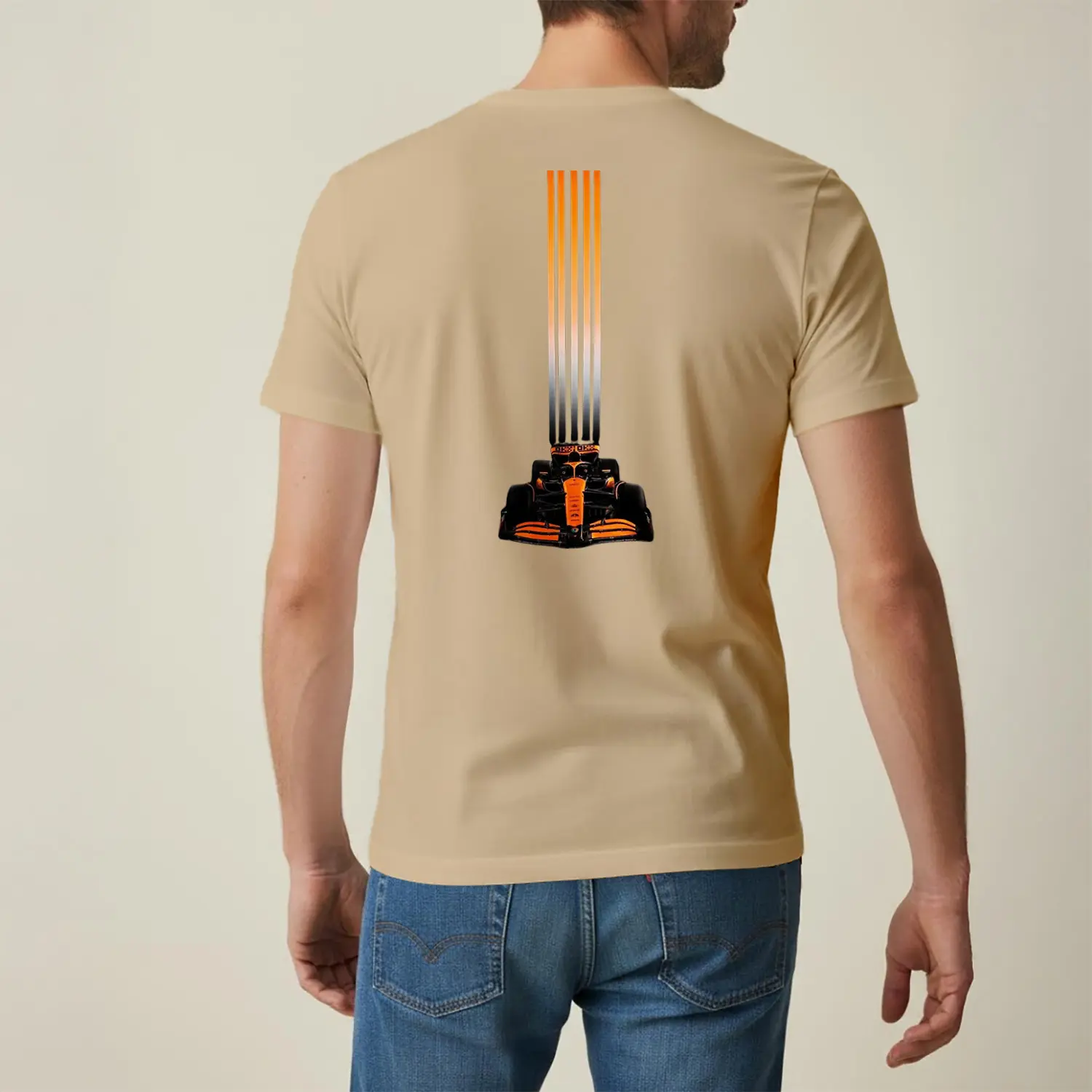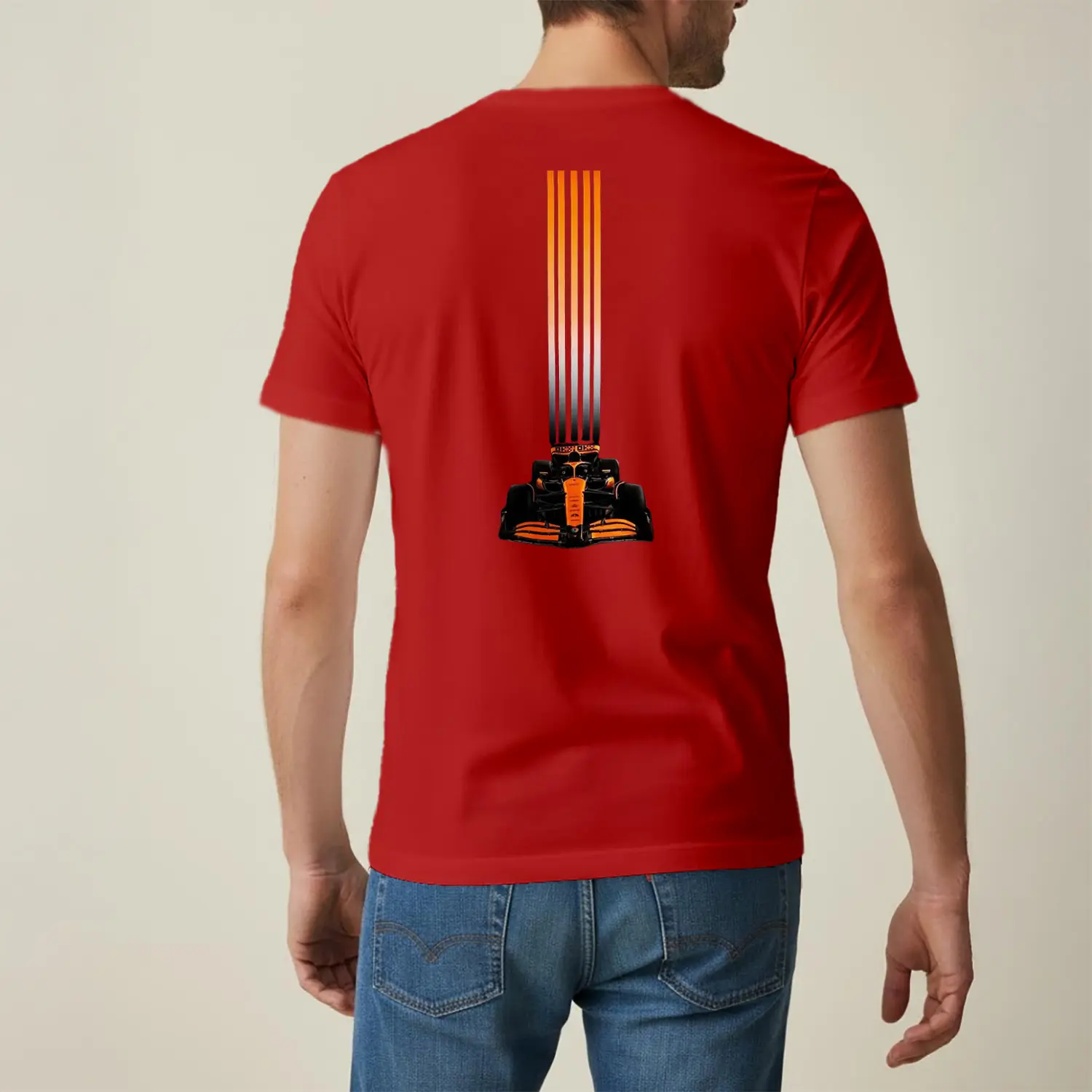 Turuncu Yarış Araba Desenli Baskılı Erkek Tişört