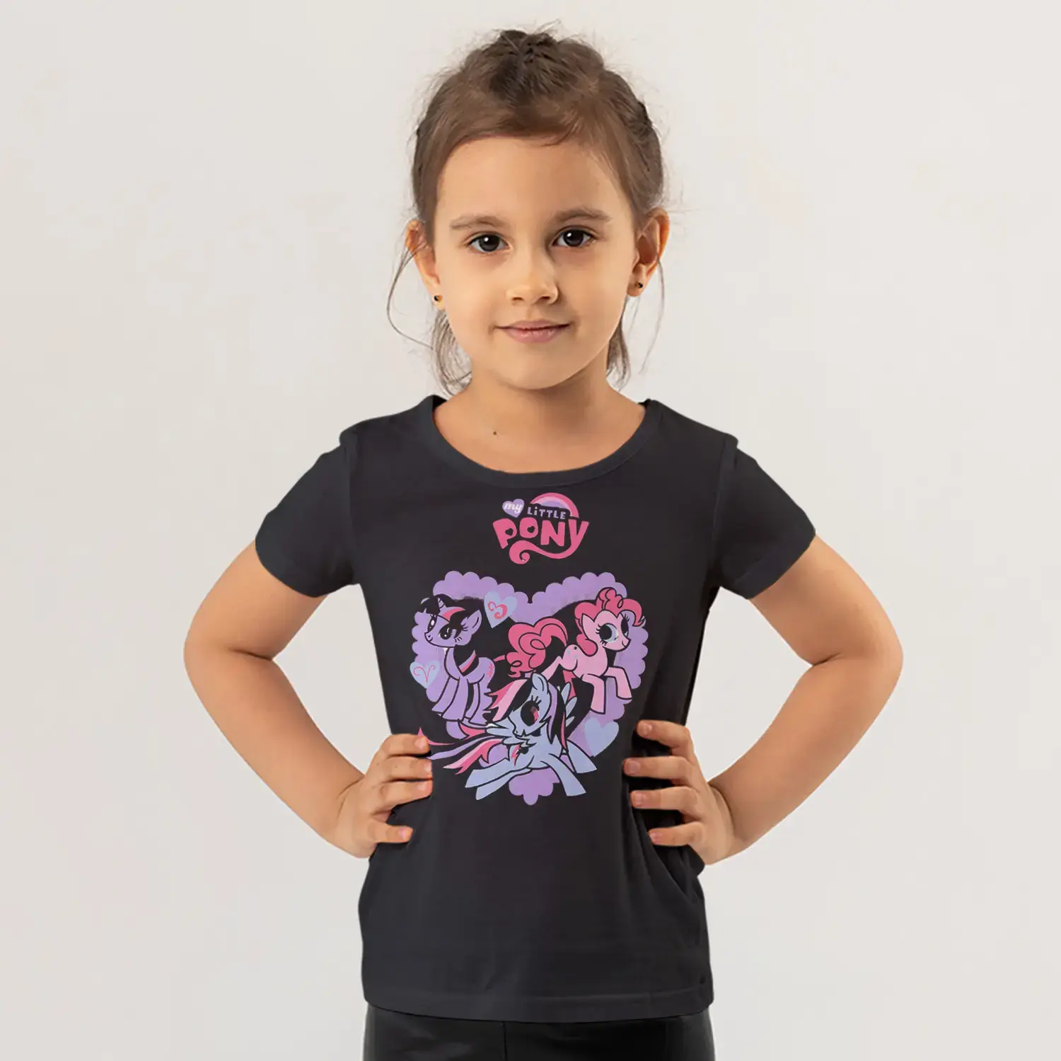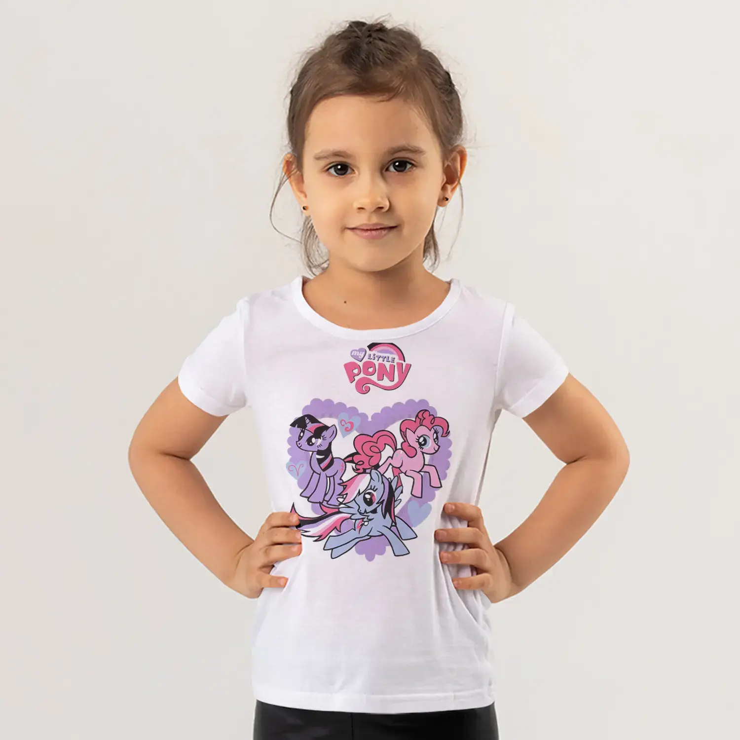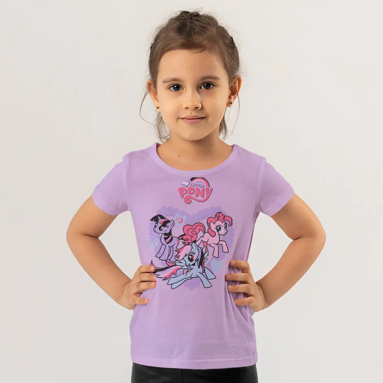 Üç Renkli Sevimli Minik At Figürlü Mor Kalp Baskılı Kız Çocuk için 9 değerlendirme