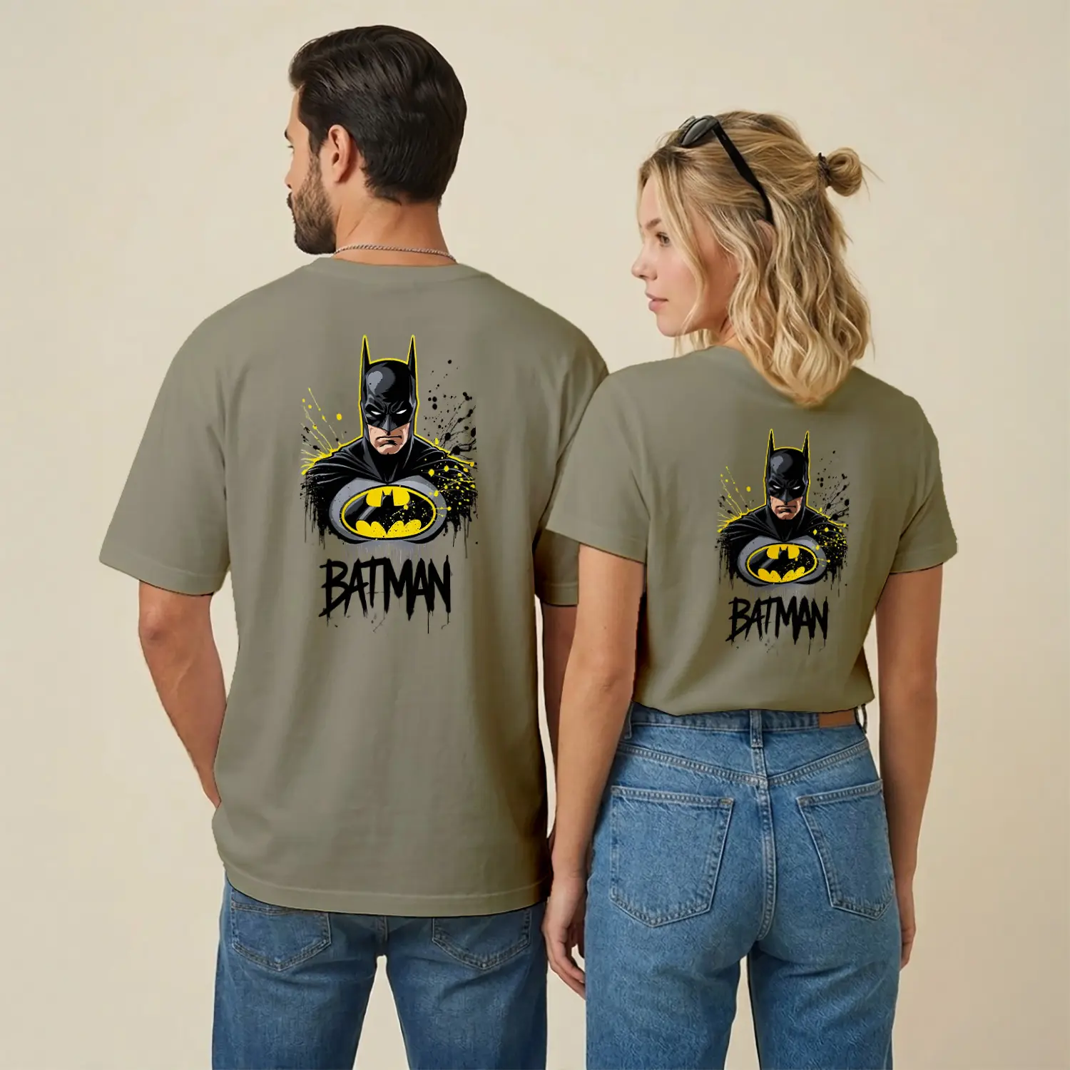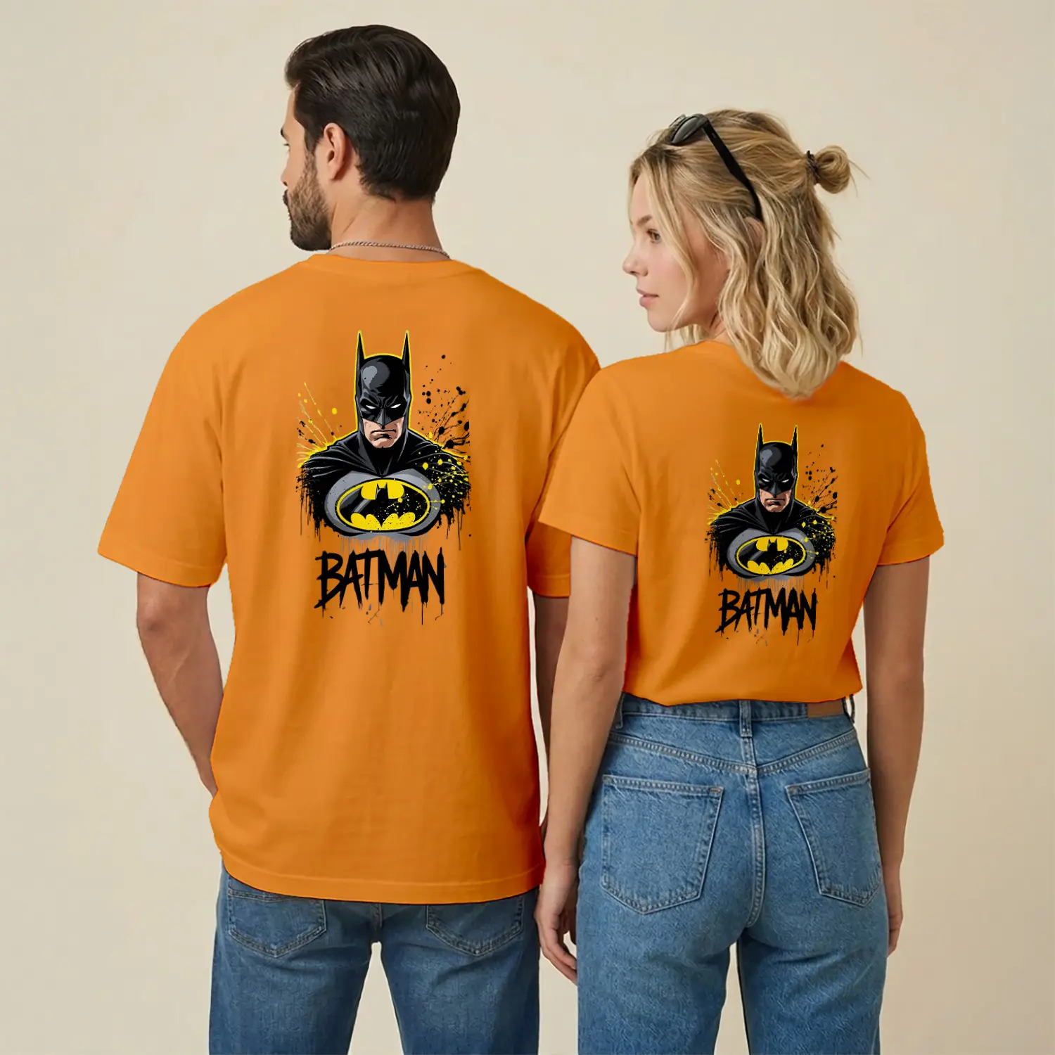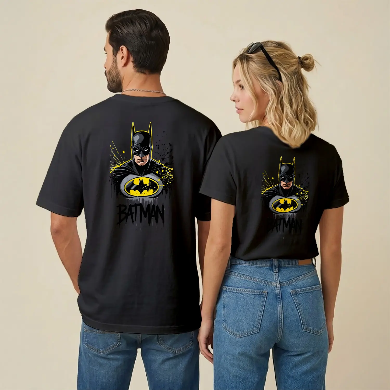 Yarasa Super Kahraman Sarı Logo Graffiti Baskılı Unisex Tişörtü