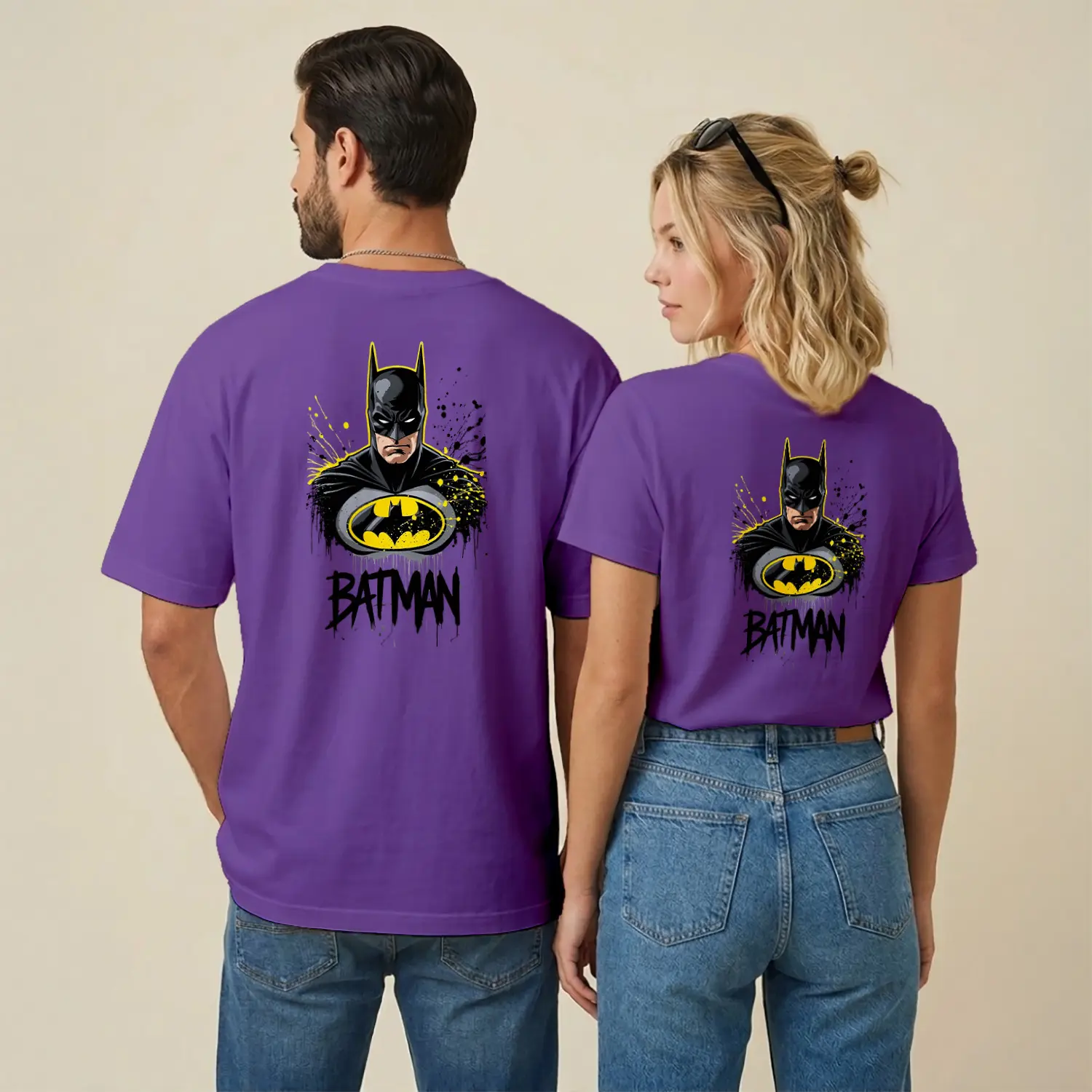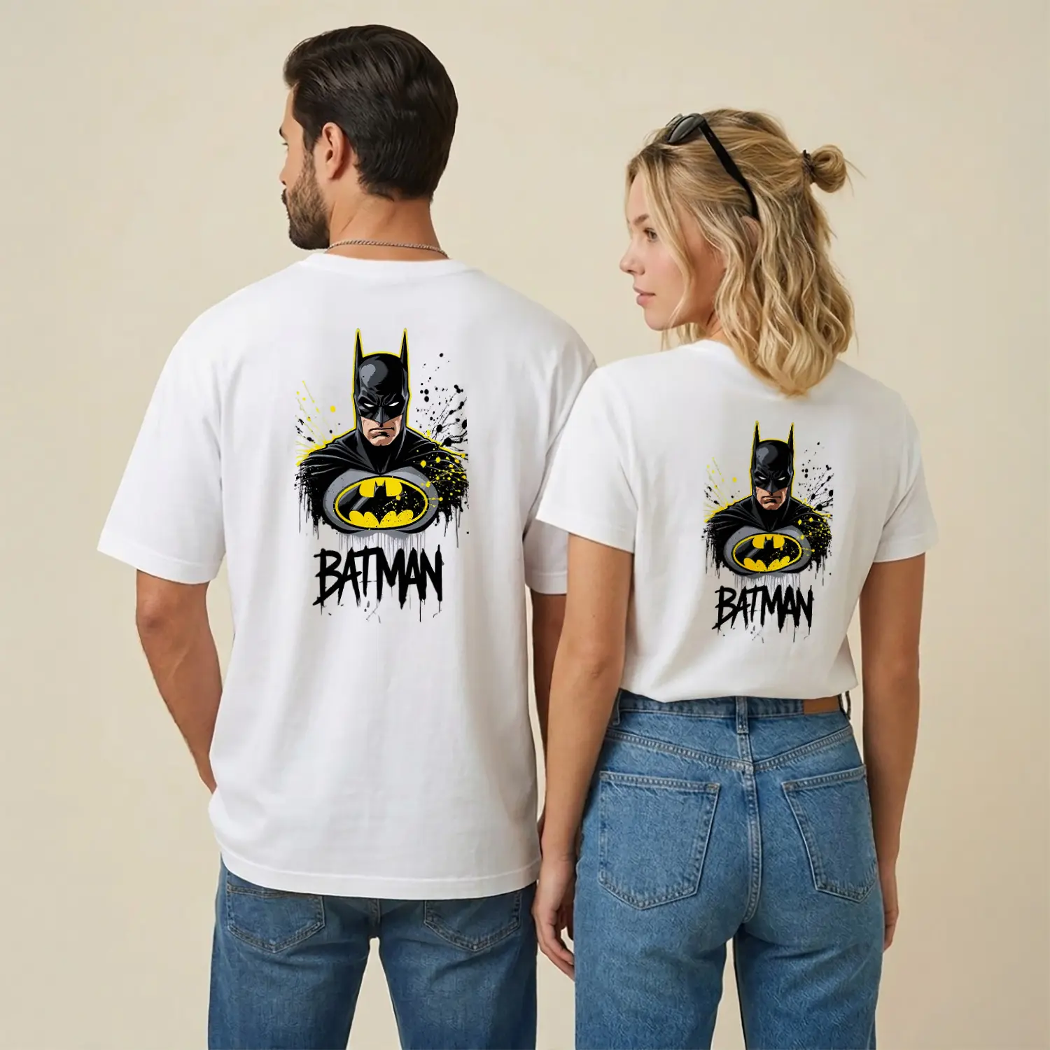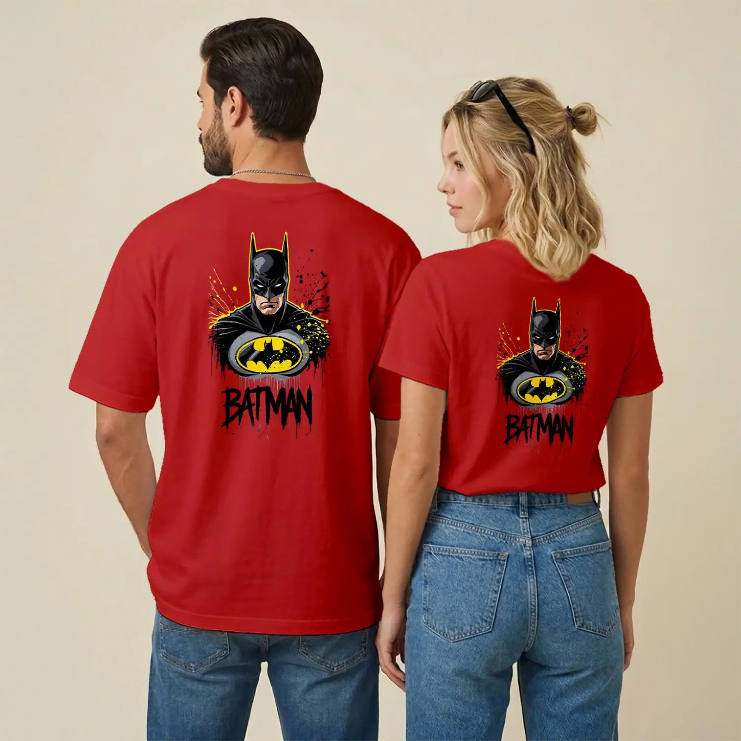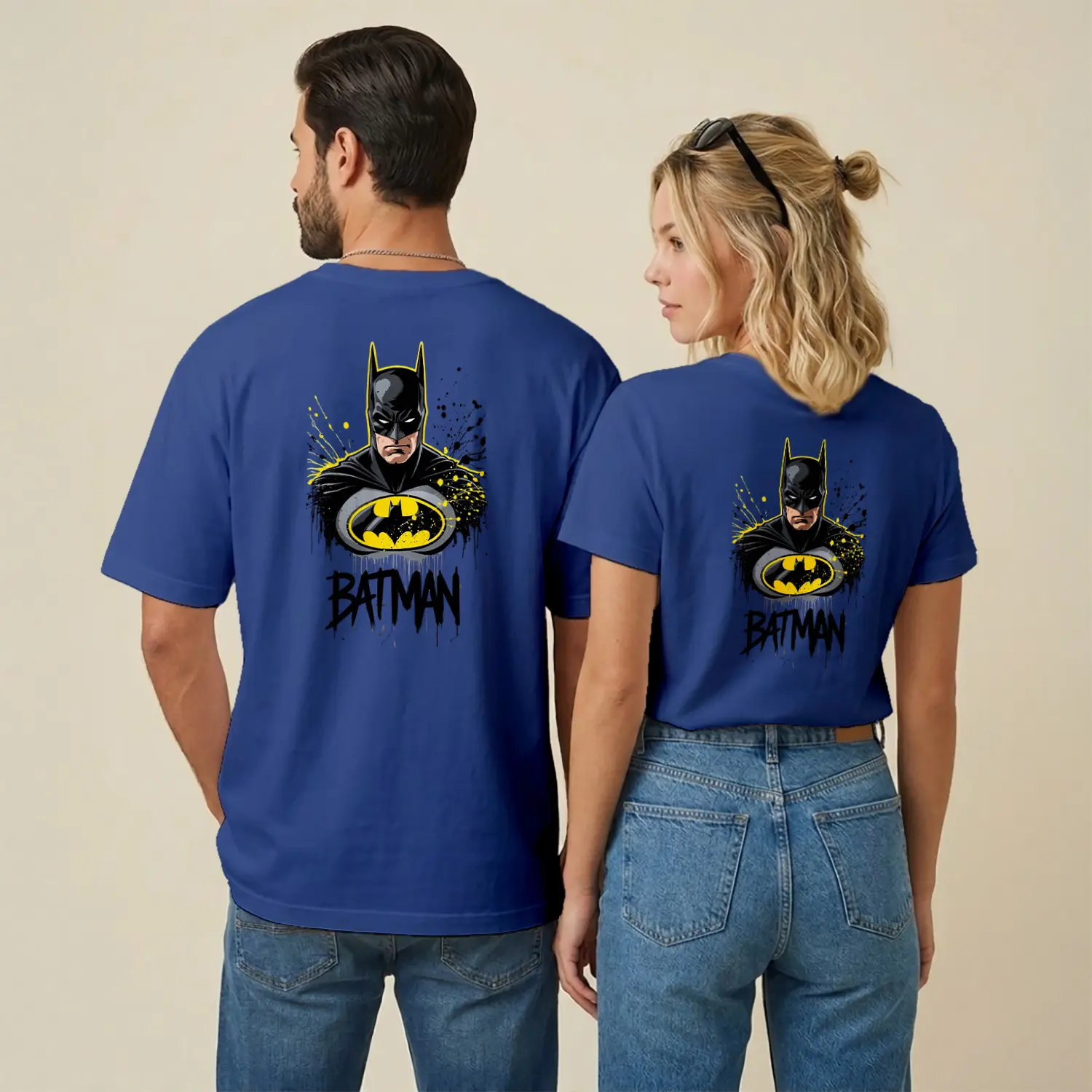 Yarasa Super Kahraman Sarı Logo Graffiti Baskılı Unisex Tişörtü