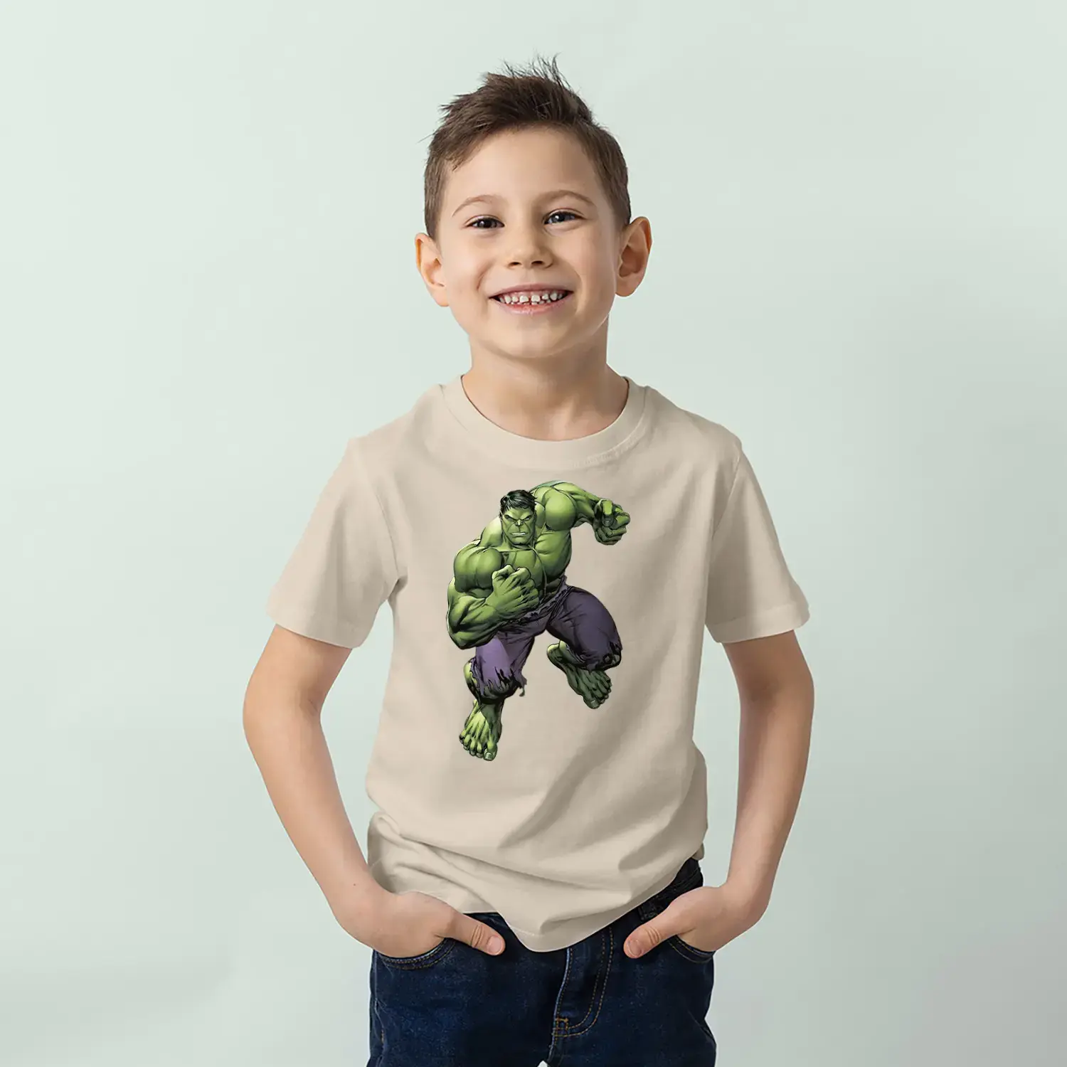 Yeşil Dev Güç Karakter Baskılı Erkek Çocuk Tişört