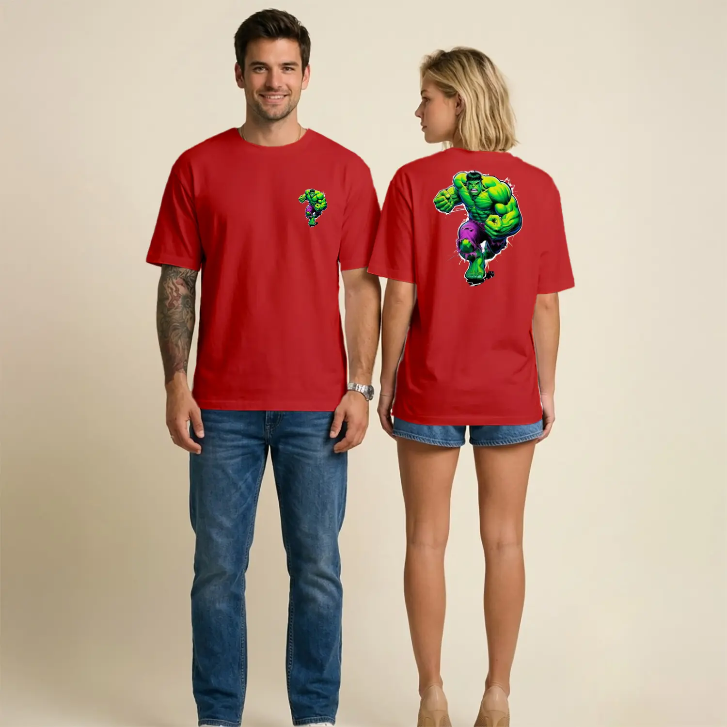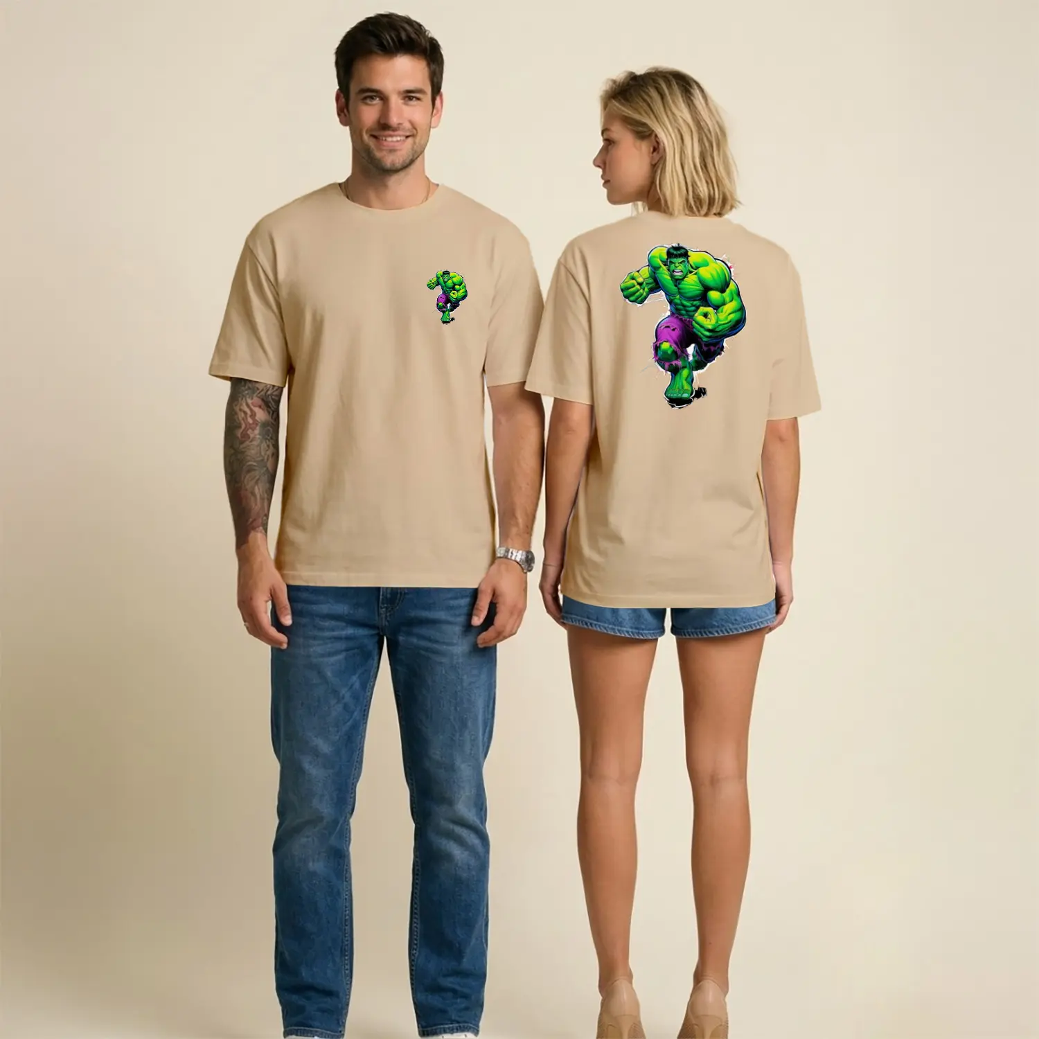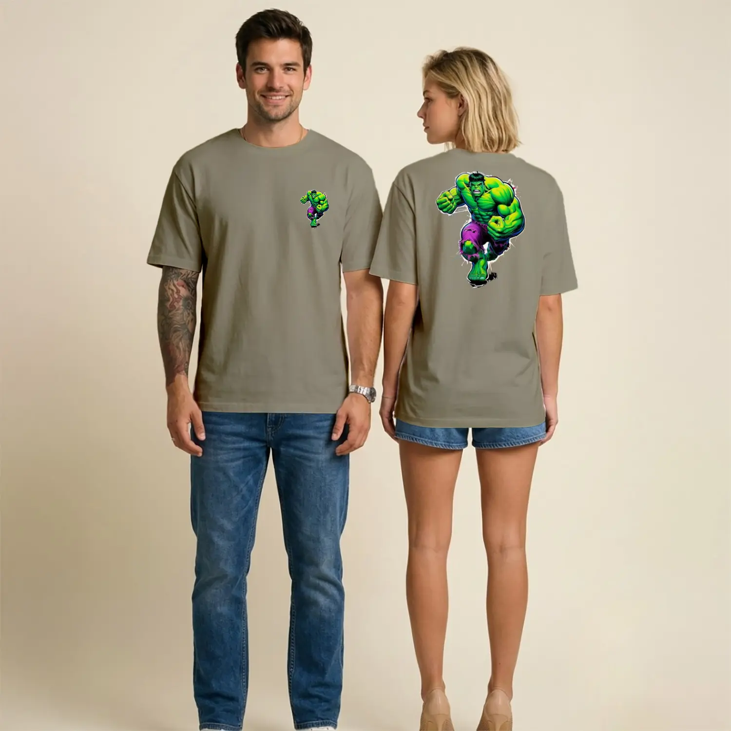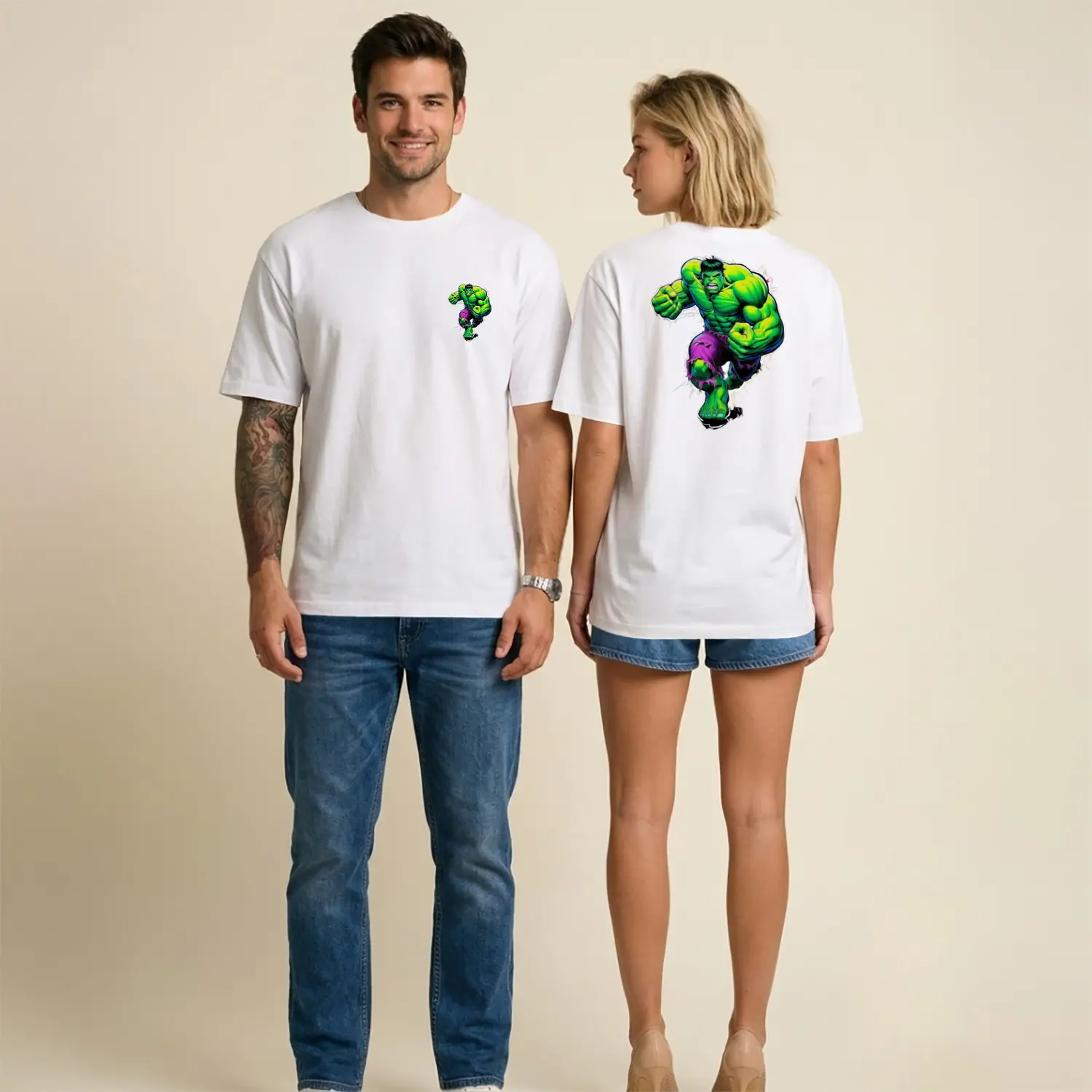 Yeşil Dev Süper Kahraman Figürlü Ön Arka Baskılı Unisex Tişört