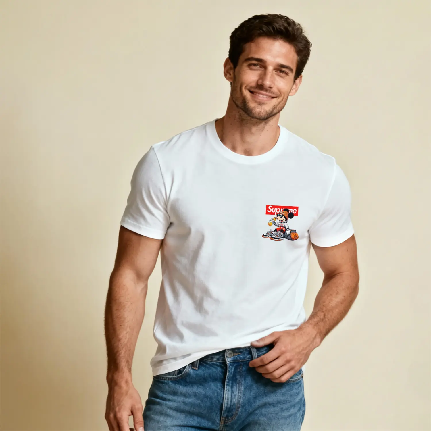 Yuvarlak Kulaklı Çizgi Film Karakteri Streetwear Baskılı Erkek Tişört için 8 değerlendirme