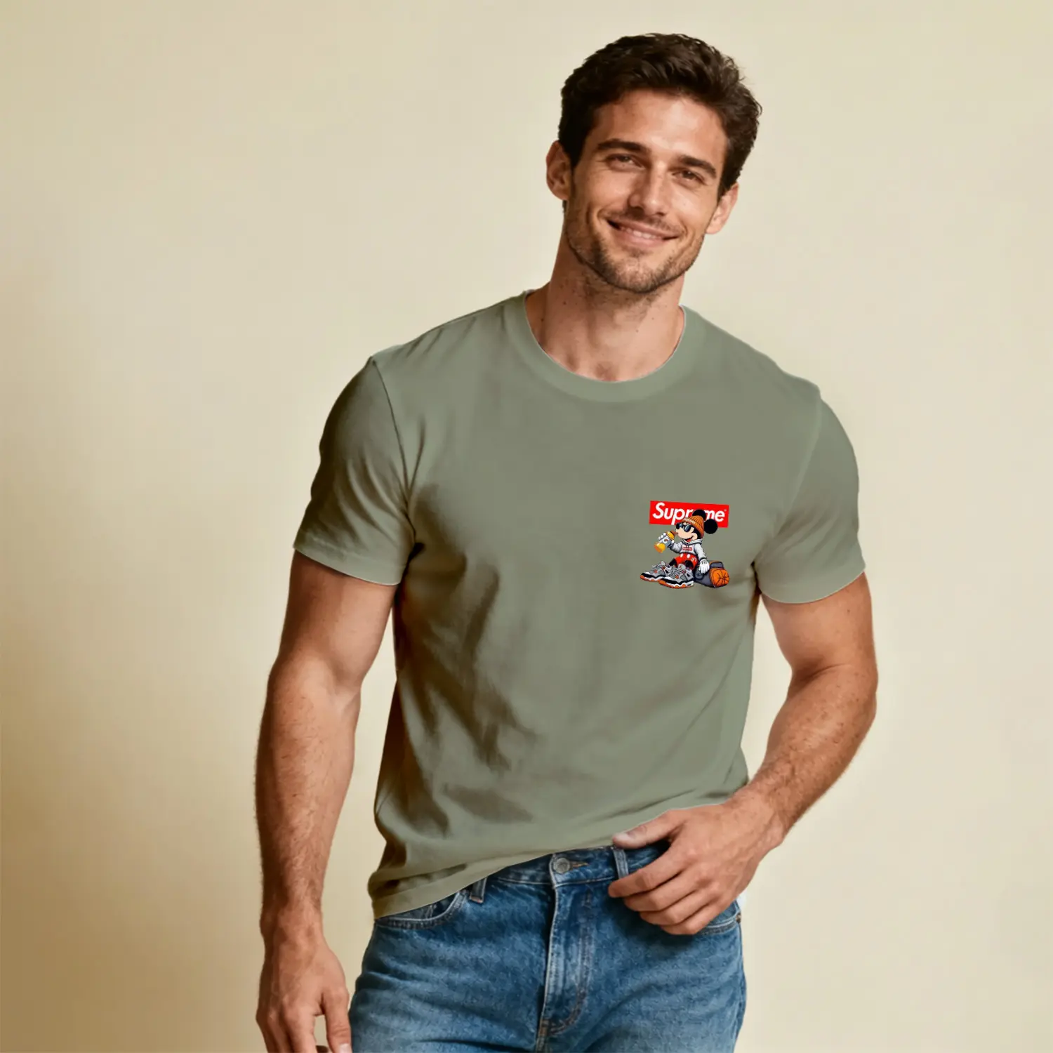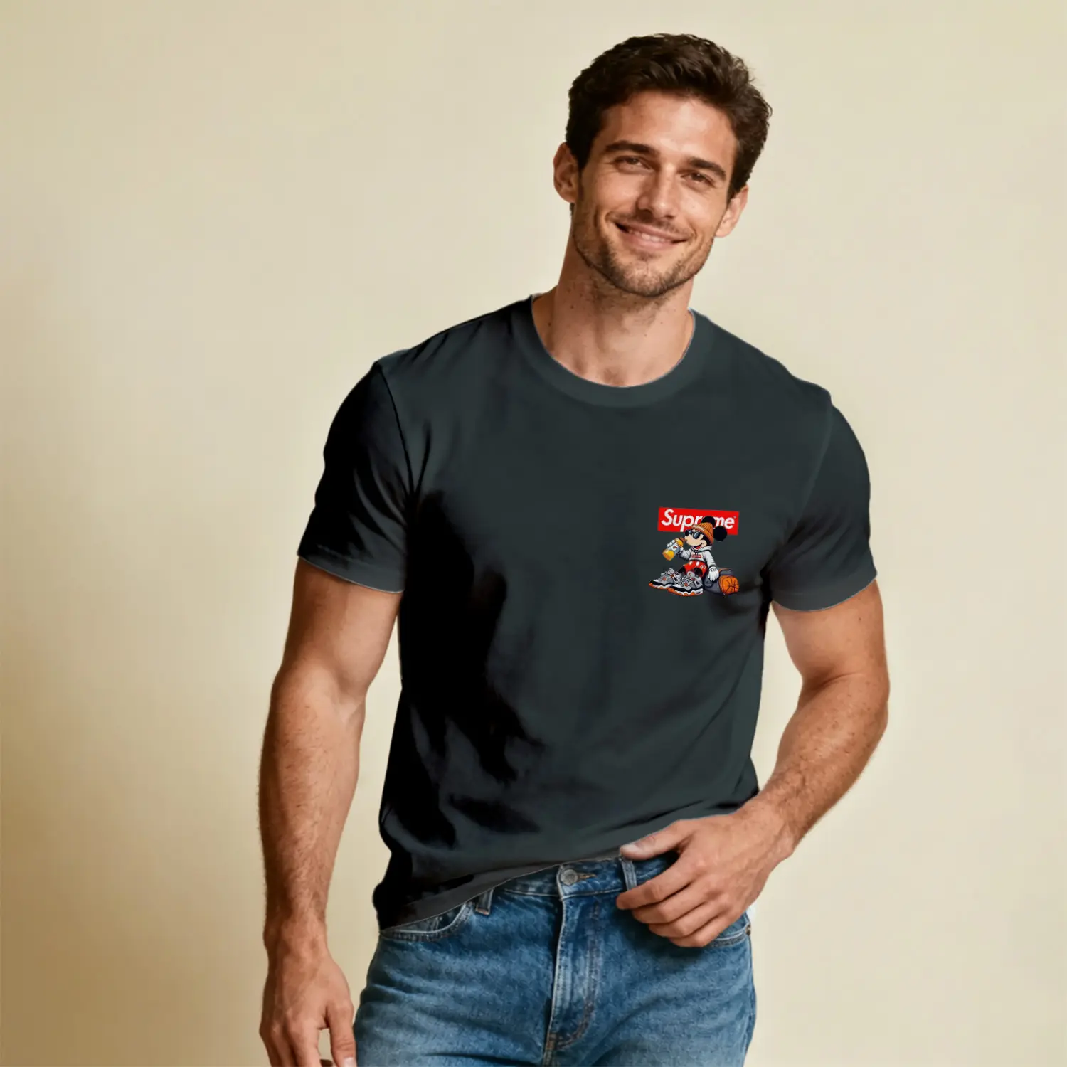 Yuvarlak Kulaklı Çizgi Film Karakteri Streetwear Baskılı Erkek Tişört