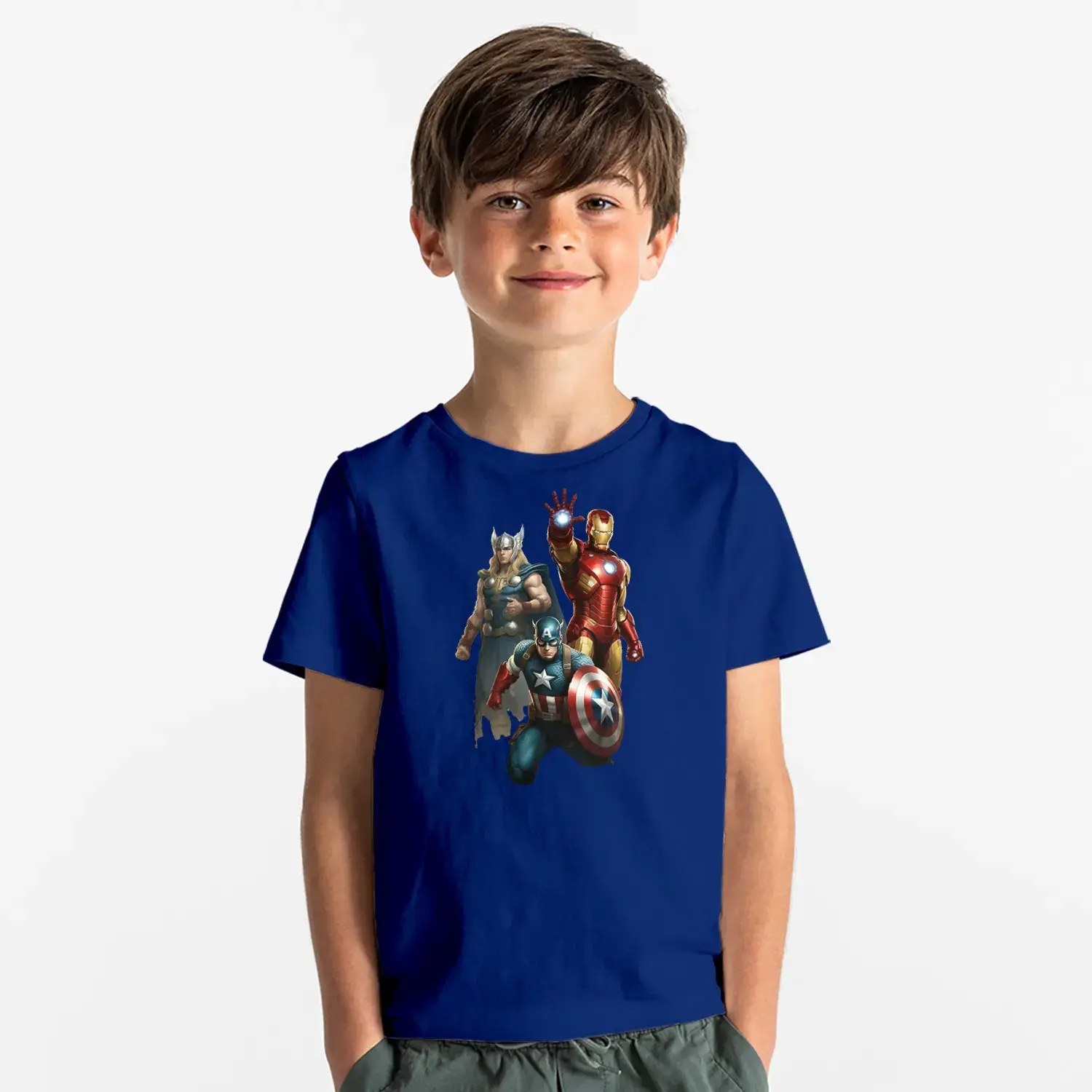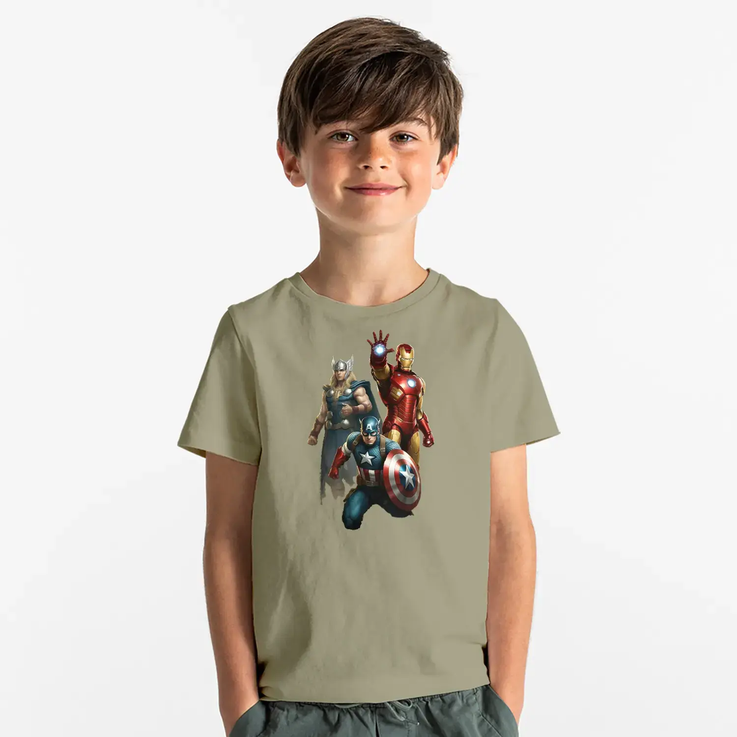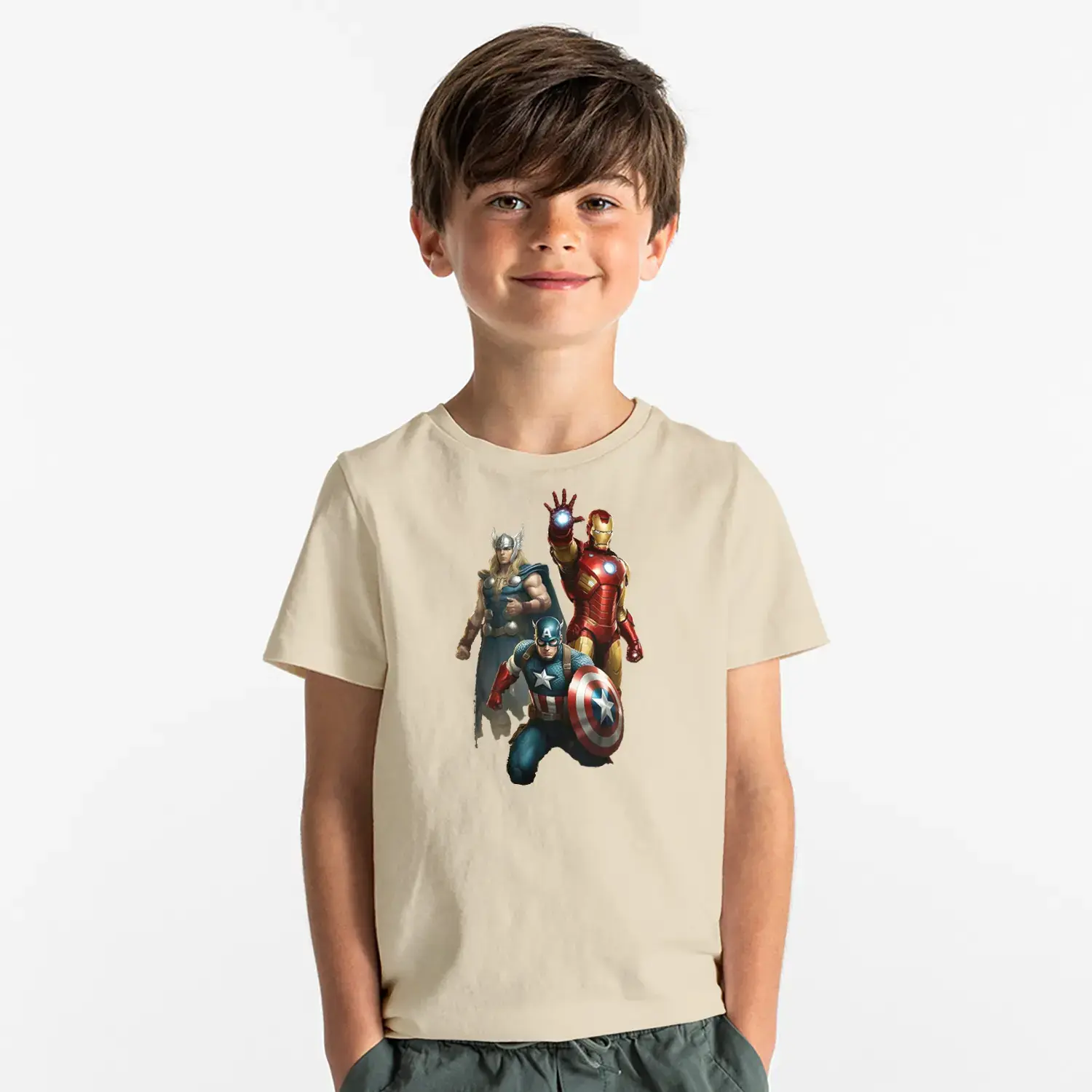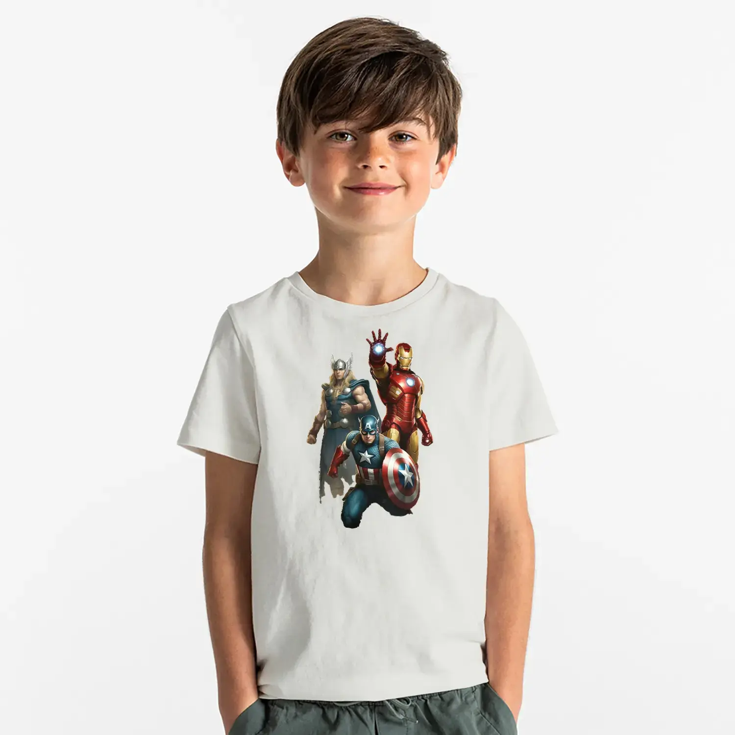 Zırhlı ve Kalkanlı Süper Kahraman Üçlüsü Baskılı Erkek Çocuk Tişört