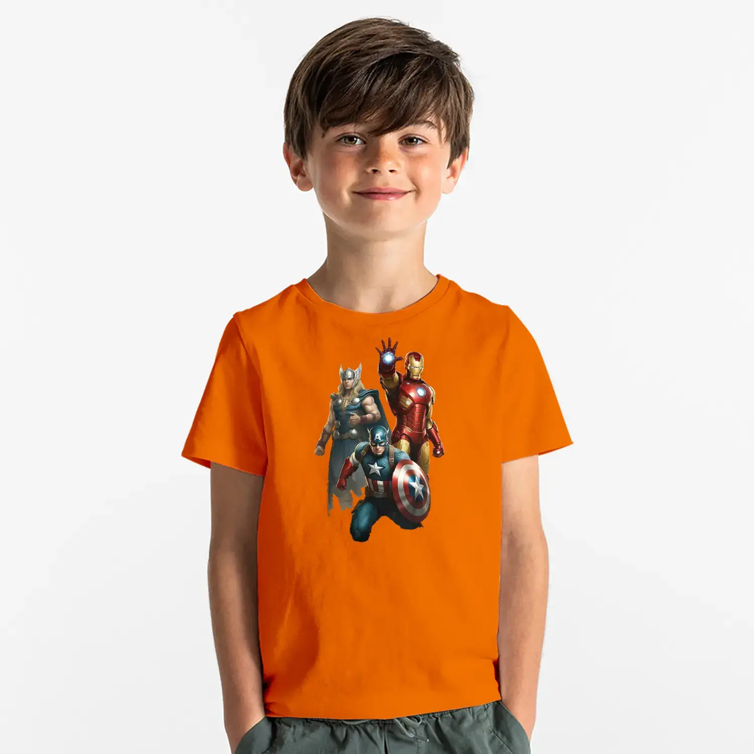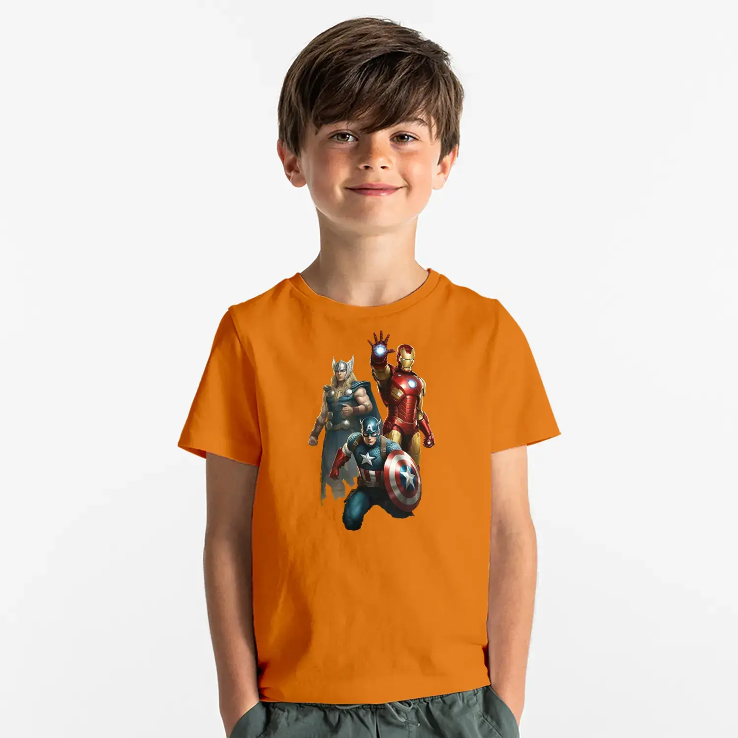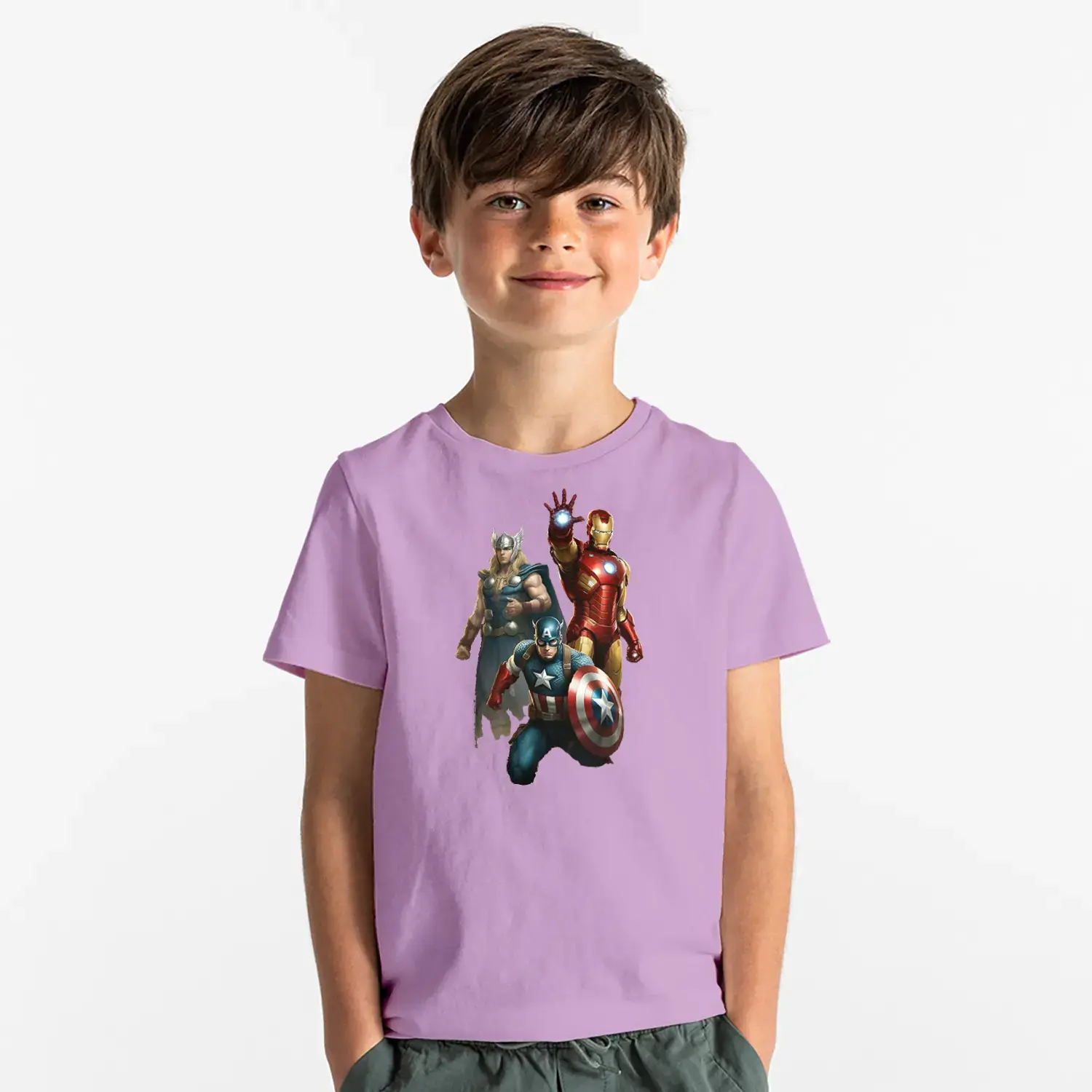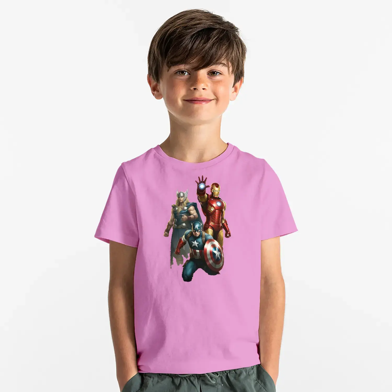 Zırhlı ve Kalkanlı Süper Kahraman Üçlüsü Baskılı Erkek Çocuk Tişört