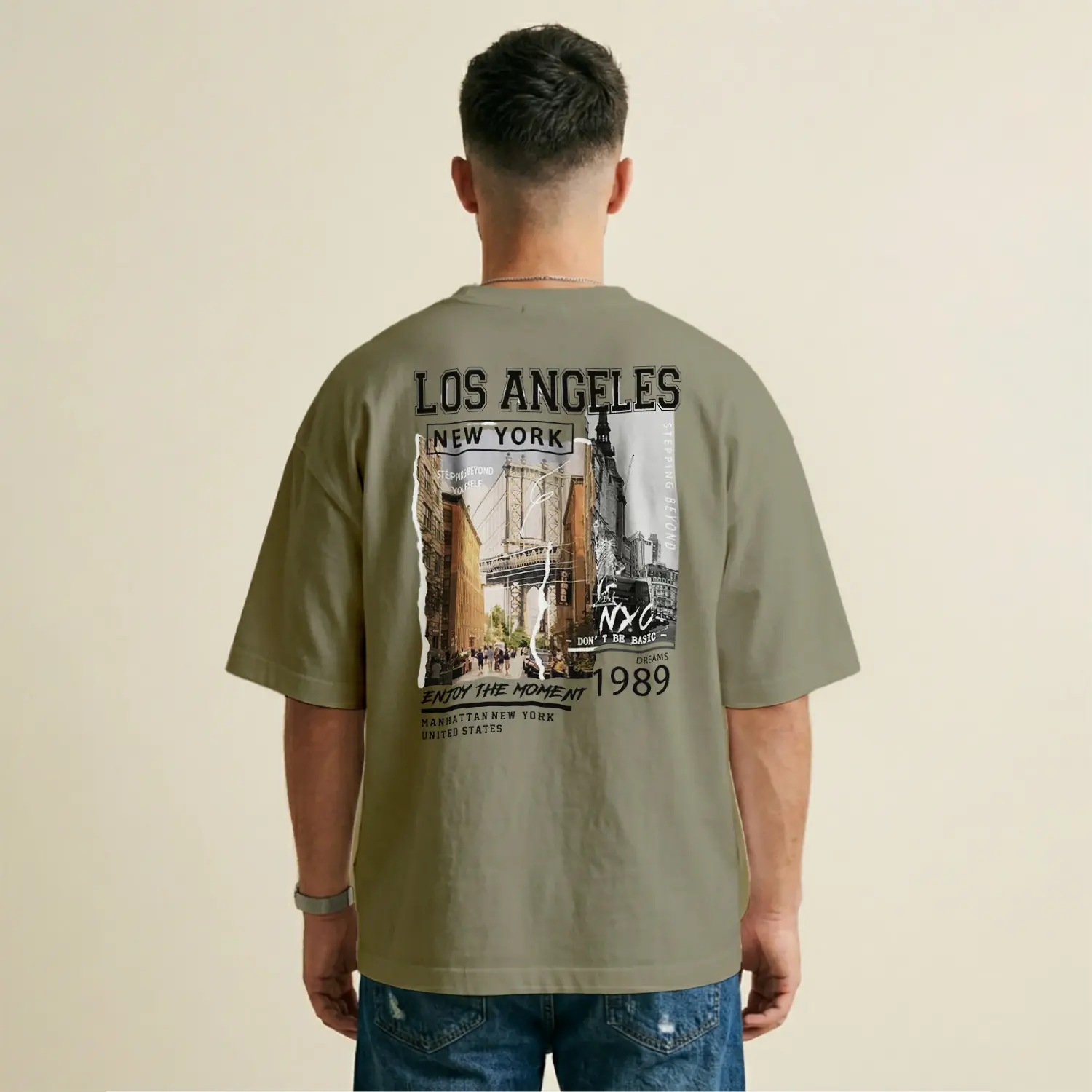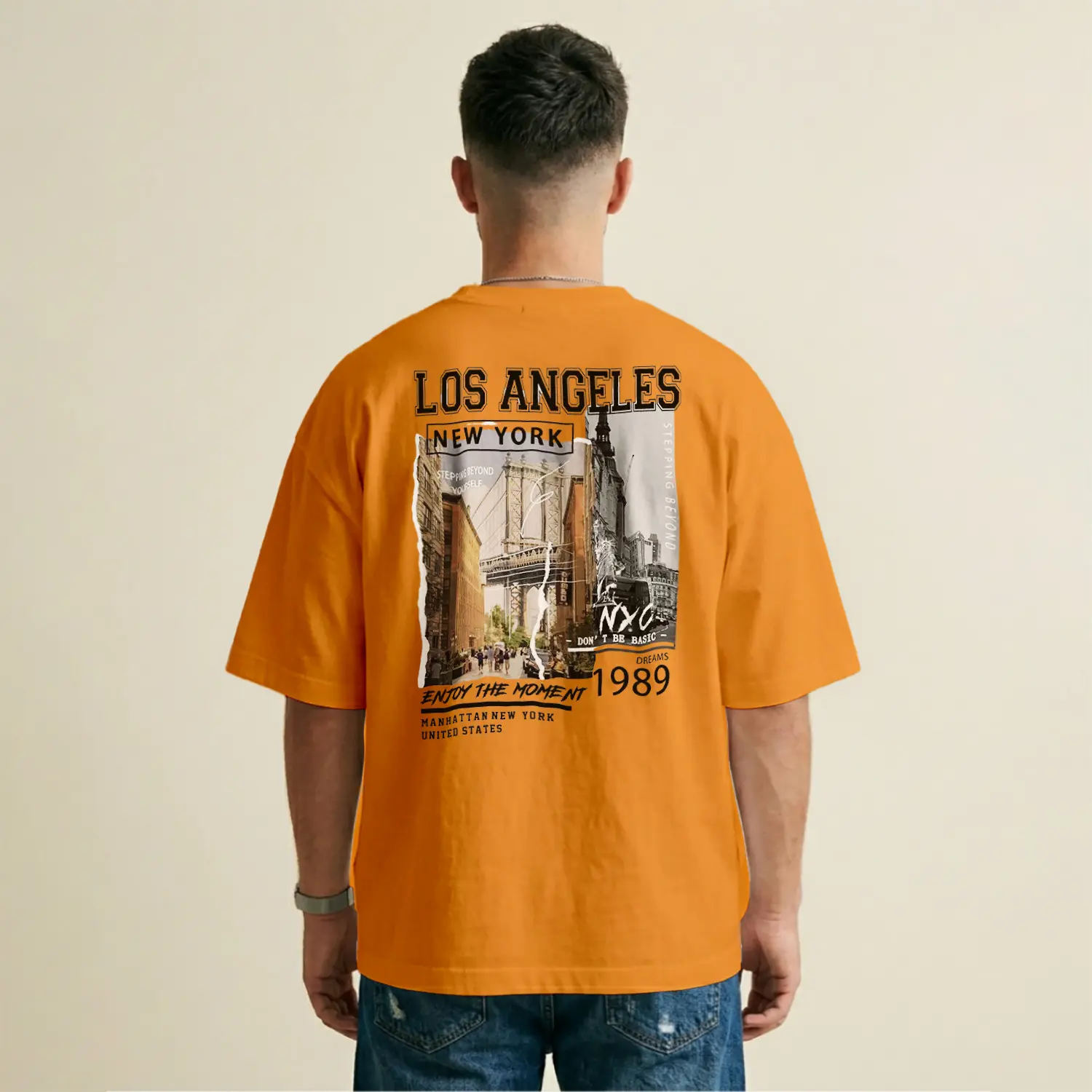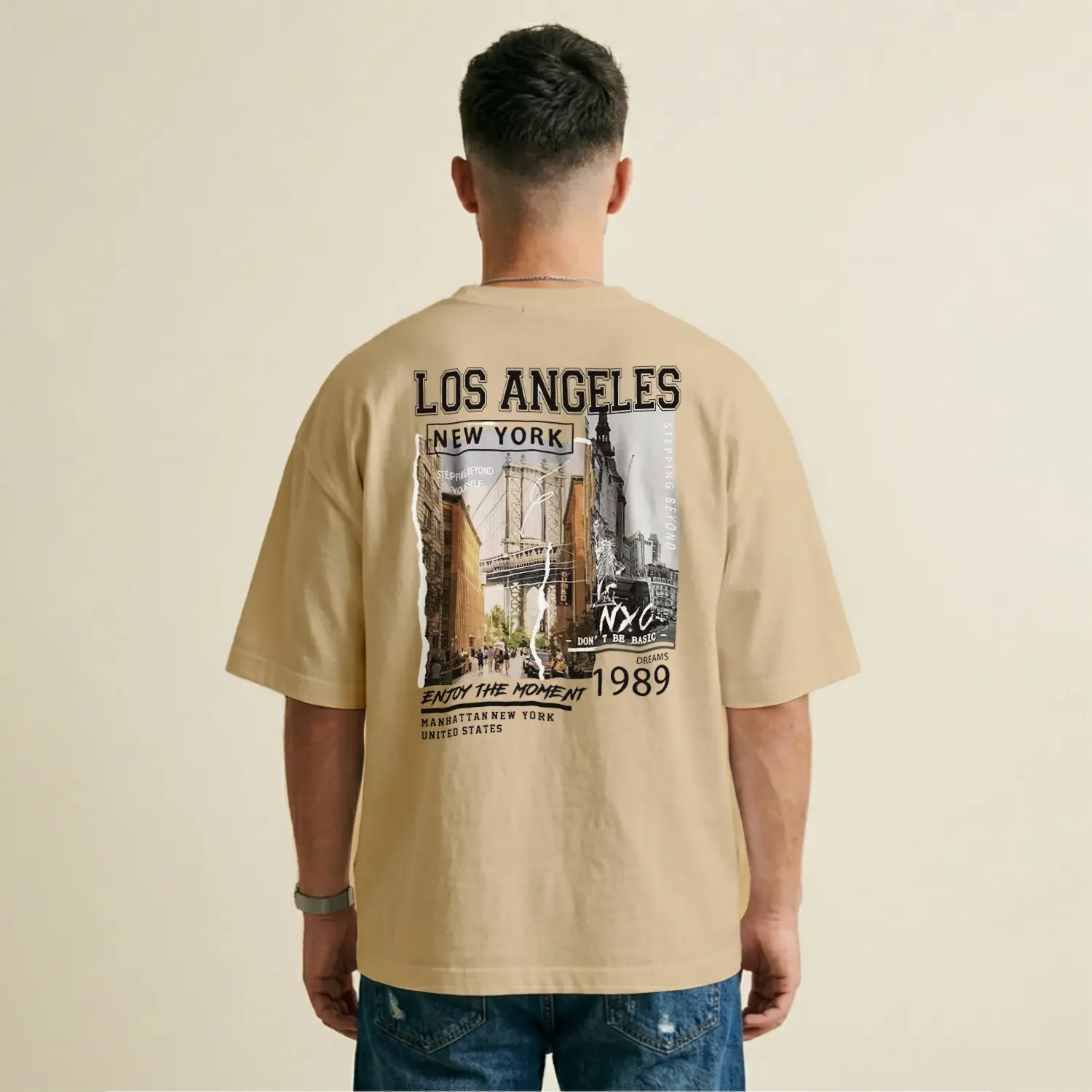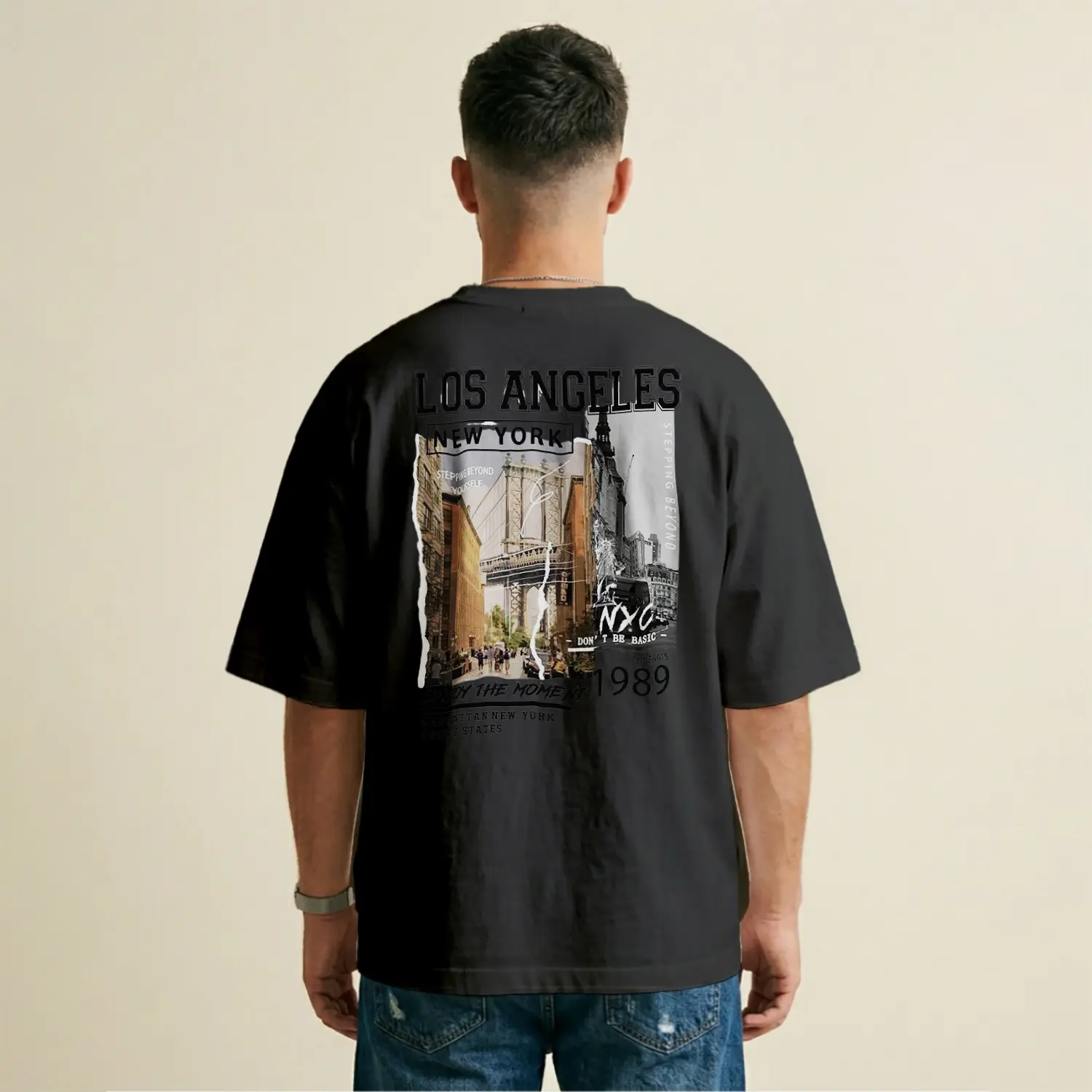 Vintage Esintili Şehir Temalı Baskılı Erkek Tişörtü